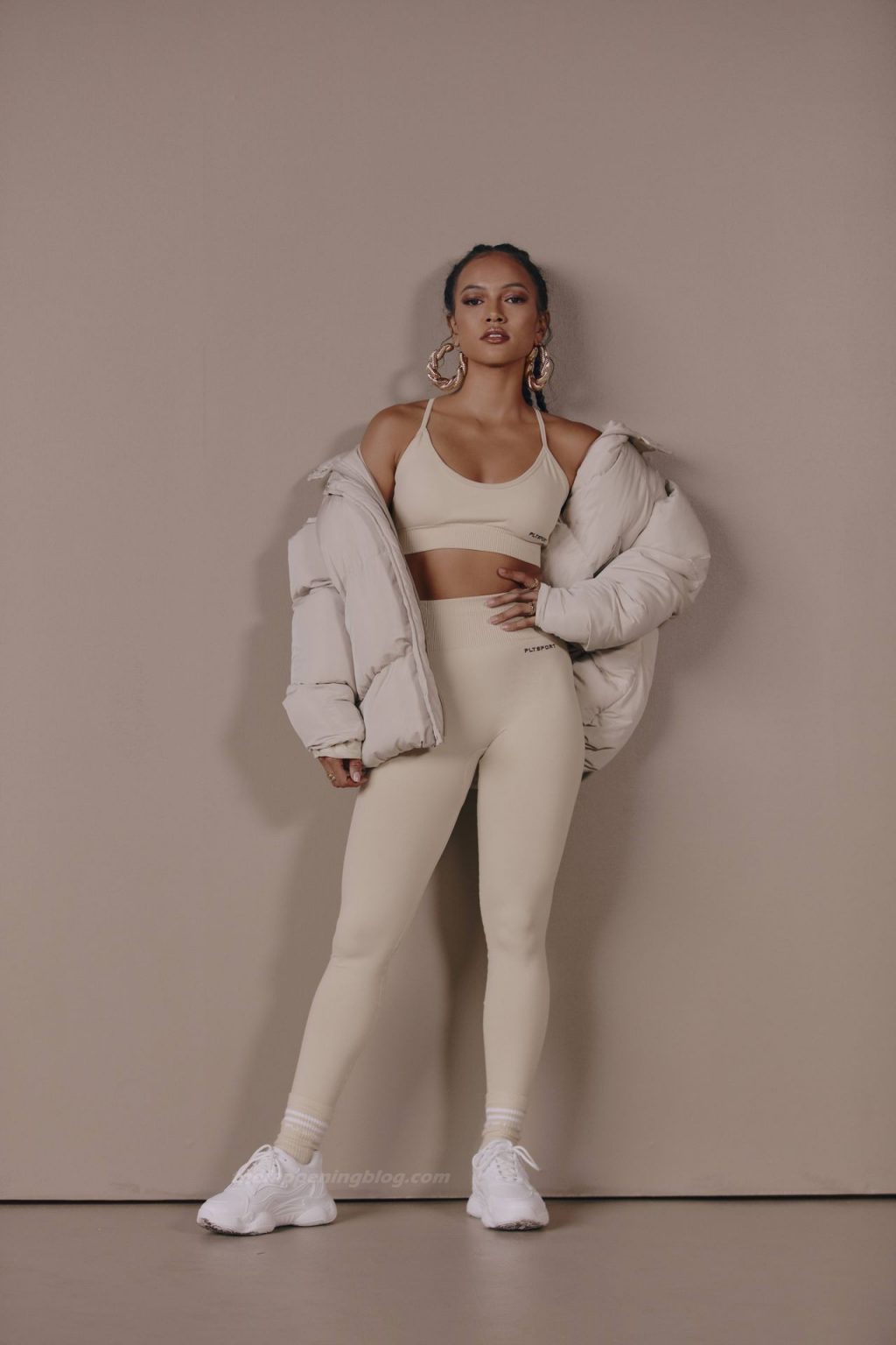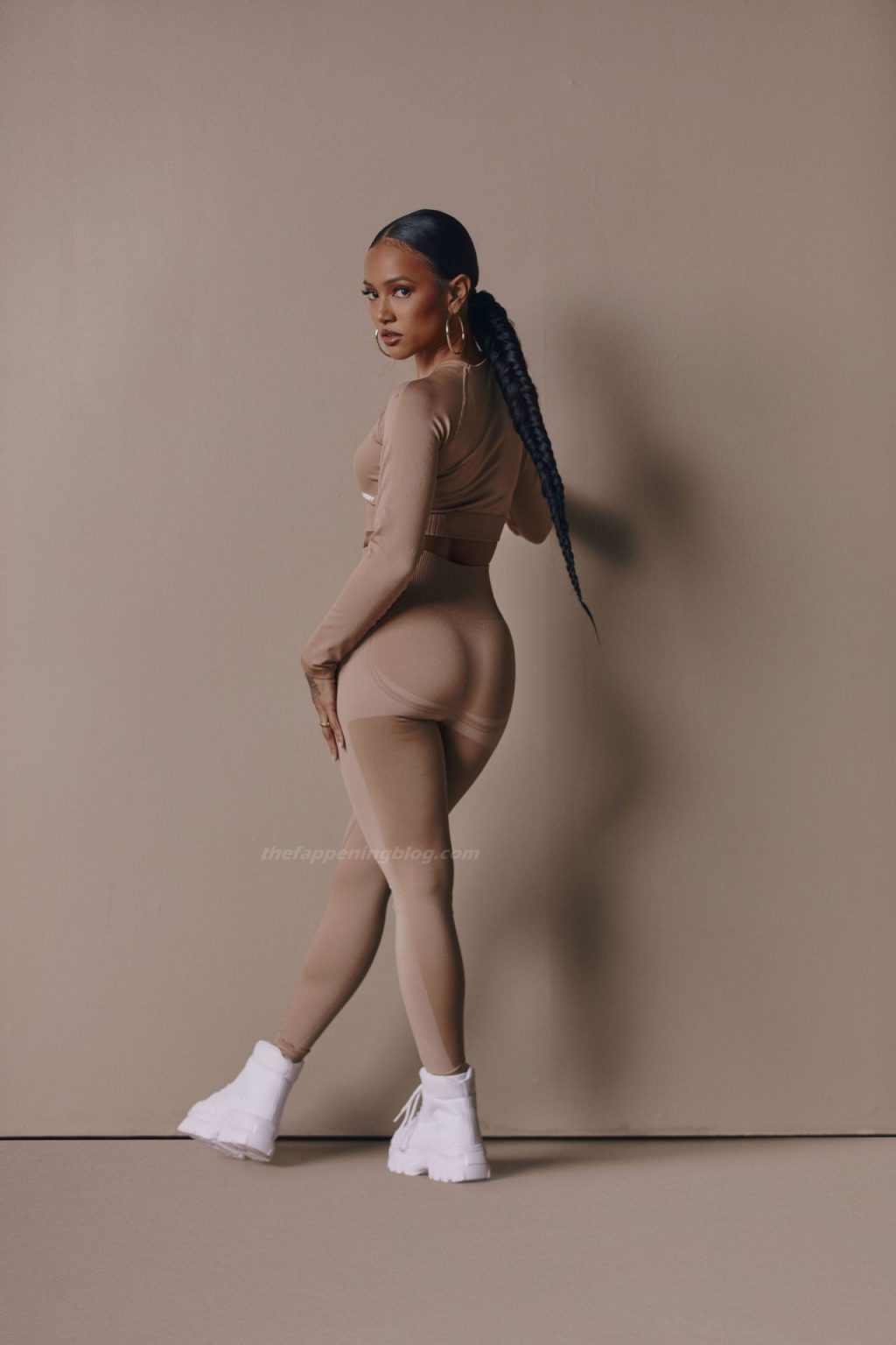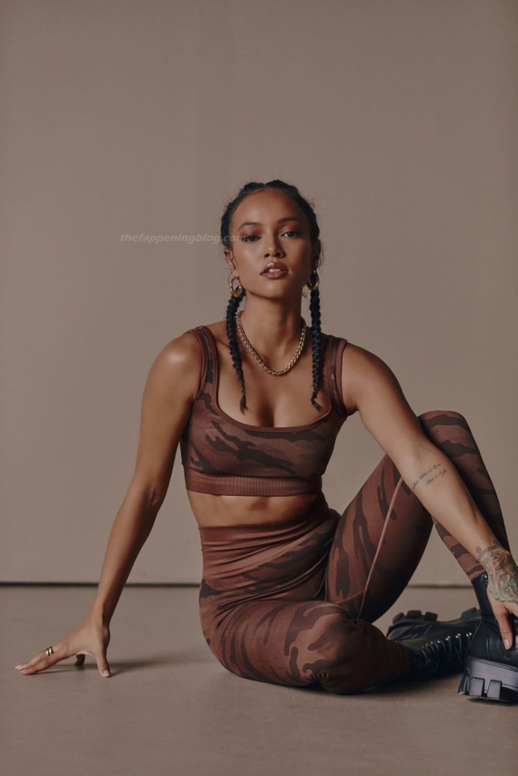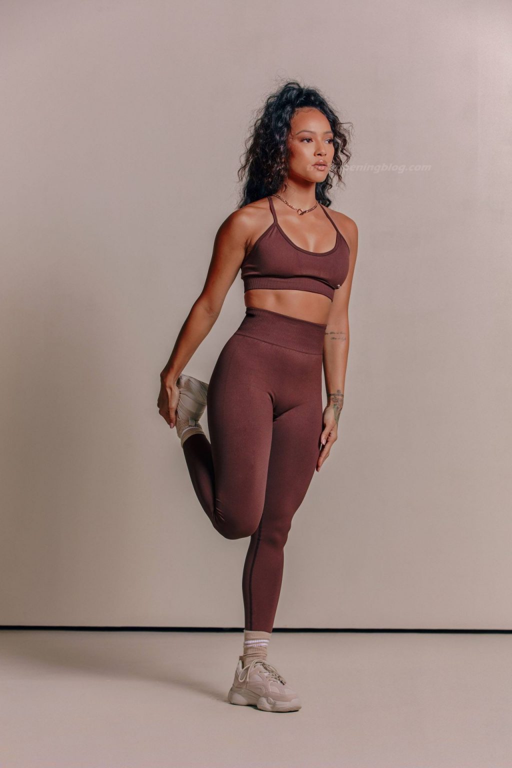 Karrueche Tran exibe suas curvas tonificadas enquanto modela uma nova coleção para PrettyLittleThing (2021). A modelo e atriz de 32 anos se uniu à marca para revelar a edição athleisure.