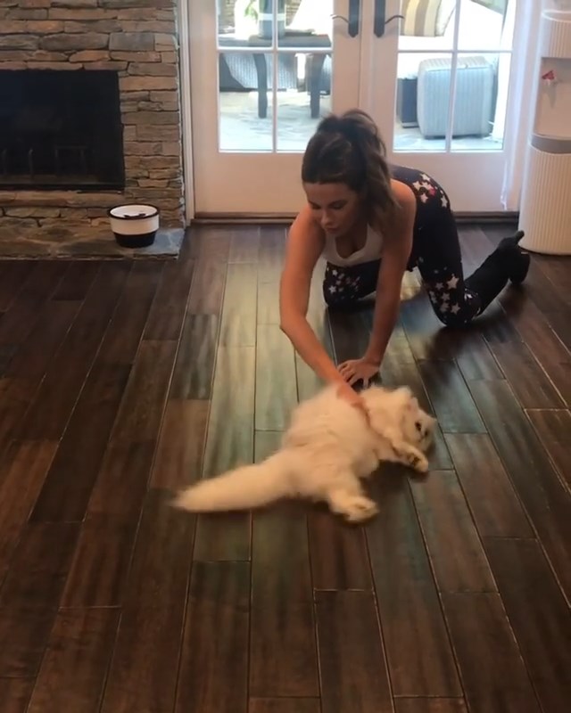Atriz Kate Beckinsale decidiu se divertir limpando sua buceta branca não depilada no vídeo do Instagram abaixo, 11/11/2019.