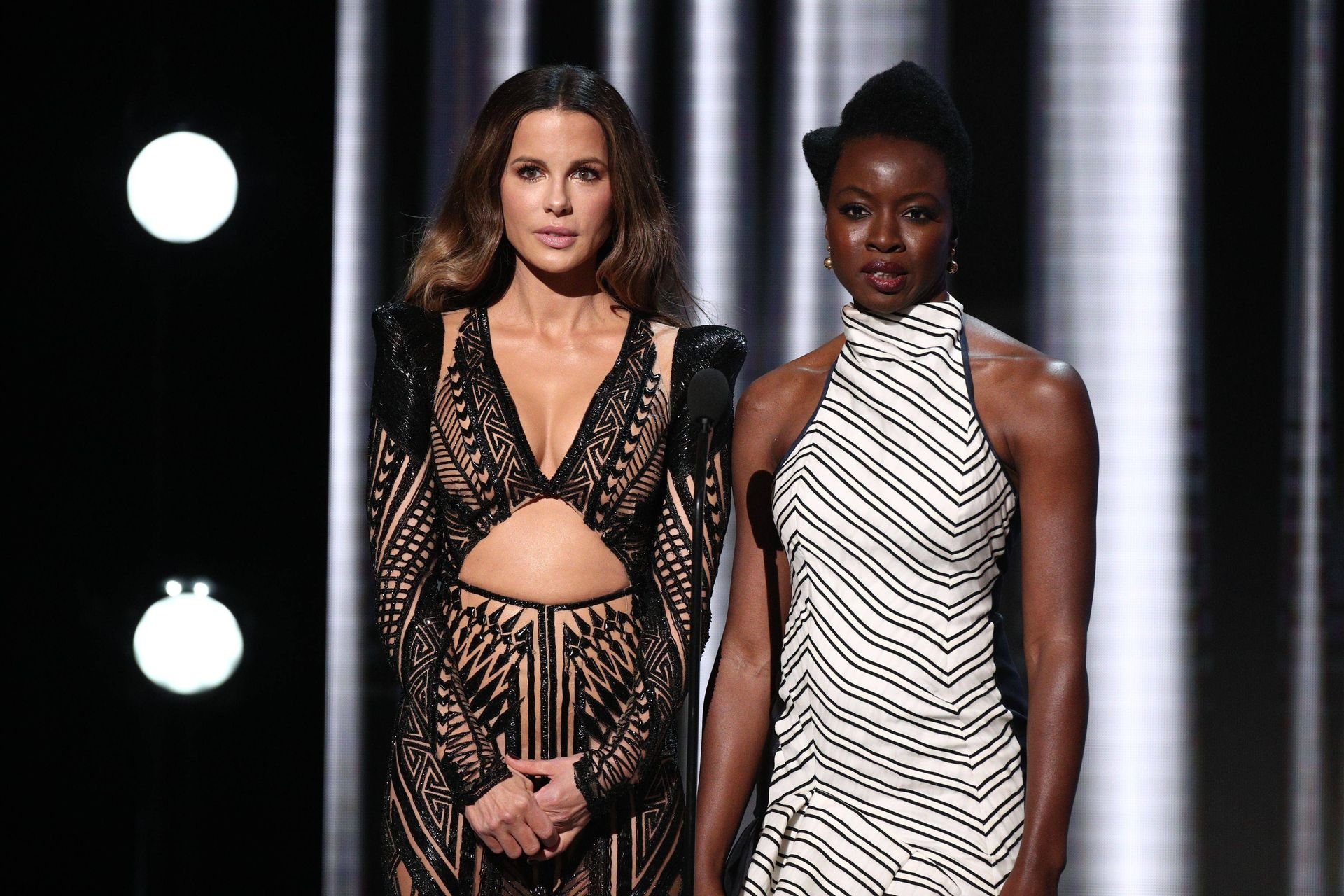 Atriz Kate Beckinsale exibiu suas pernas, pés e decote sexy no 50º NAACP Image Awards em Hollywood, 30/03/2019.