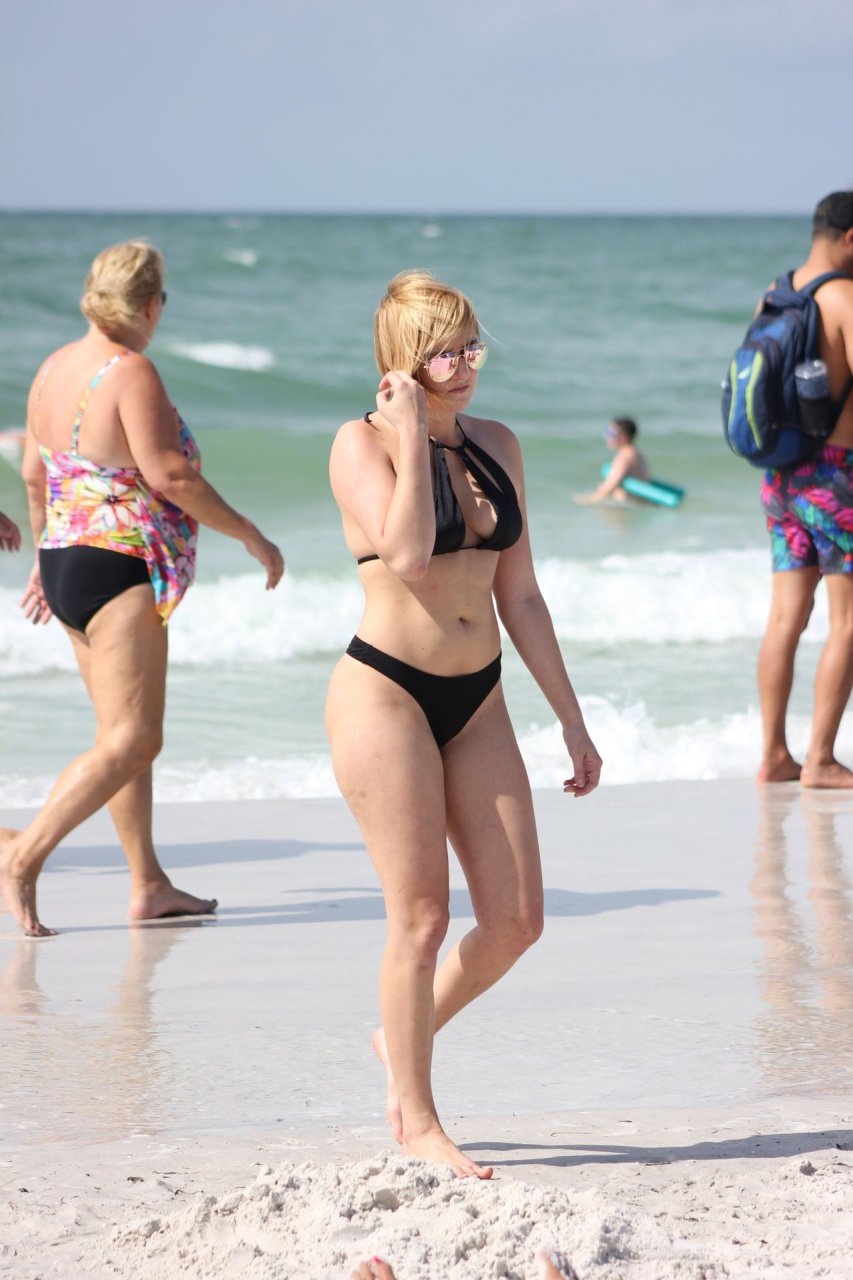 A premiada estrela de filmes adultos Kate England foi vista tomando sol na praia em Miami, 17/10/2019. Ela chamou a atenção com seu biquíni preto de duas peças e corpo tonificado.