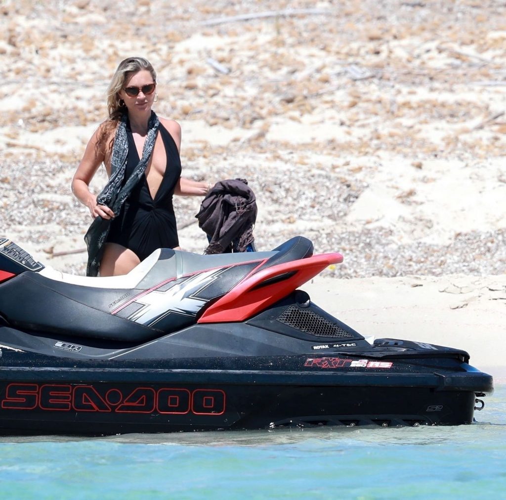A querida do mundo da moda aproveitou um dia divertido na praia, parecia muito animada com quase 30 graus de calor, e aproveitou as águas com um emocionante passeio de jet ski, além de relaxar na praia durante sua quente pausa espanhola.