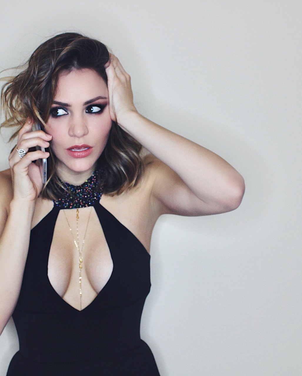 A atriz Katharine McPhee (33) exibe um belo decote no Instagram (novembro de 2017).