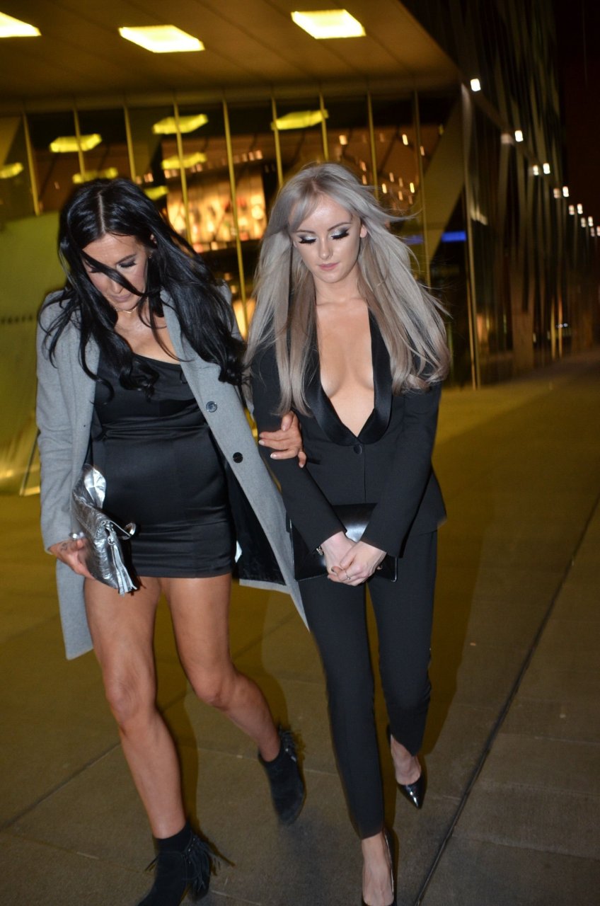 Katie Mcglynn exibe um super decote sem sutiã com jaqueta enquanto sai do Australasia Restaurant em Manchester, 02/05/2017. Katie Mcglynn é uma atriz britânica (Coronation Street). Idade: 21 (11 de março de 1995).