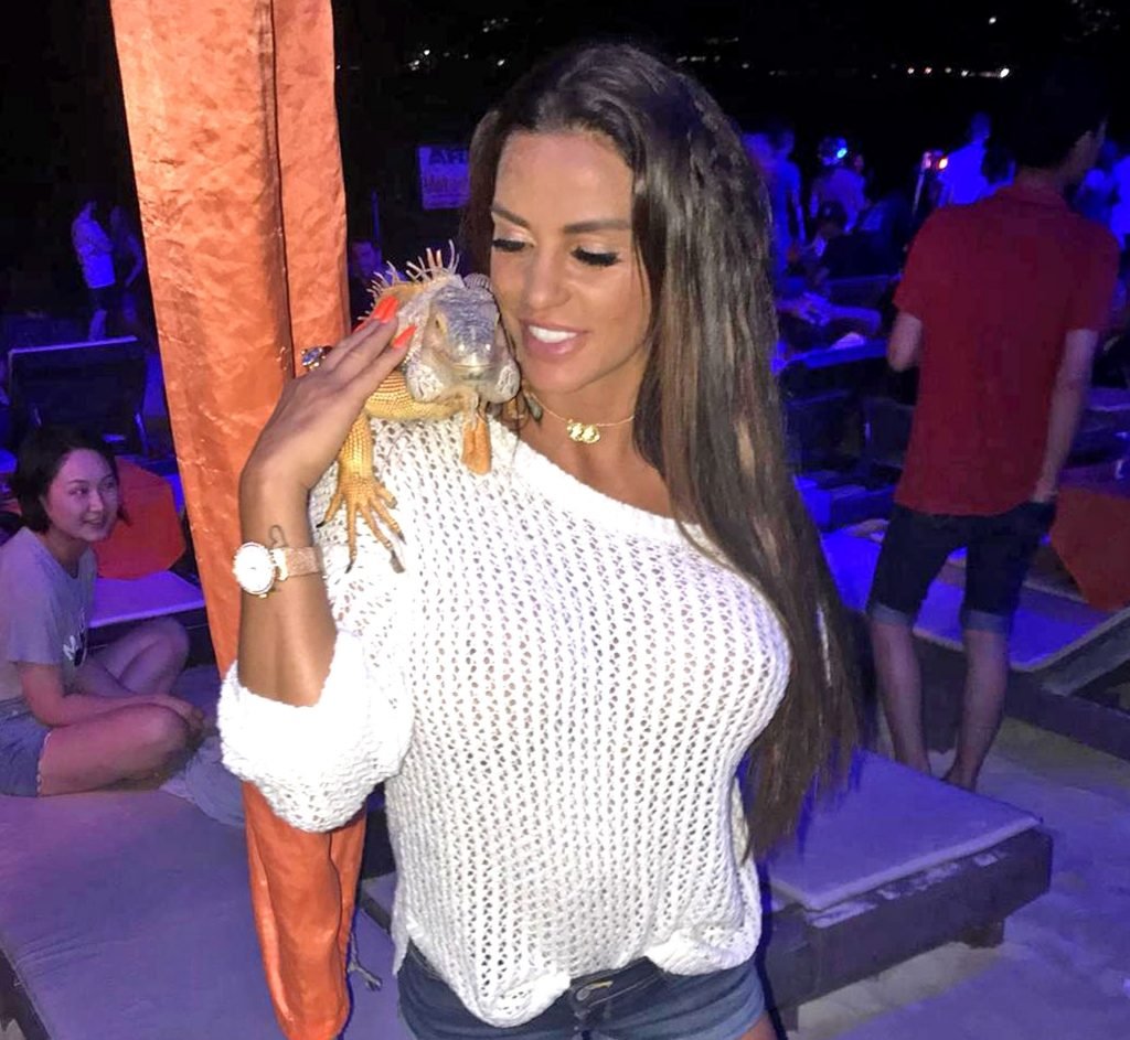 A modelo britânica Katie Price (Jordan) parecia calma segurando alguns répteis nos ombros e, apesar de seus problemas financeiros muito divulgados, Katie parecia estar aproveitando a vida noturna espanhola durante as férias, 09/03/2018.
