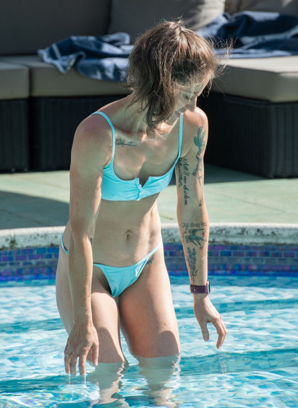 A estrela de reality show e cantora Katie Waissel é vista aproveitando um tempo ao redor da piscina na Itália, onde está atualmente de férias, 09/10/2020. Katie usa um biquíni azul minúsculo enquanto exibe seu corpo incrivelmente tonificado.