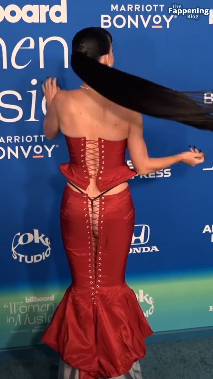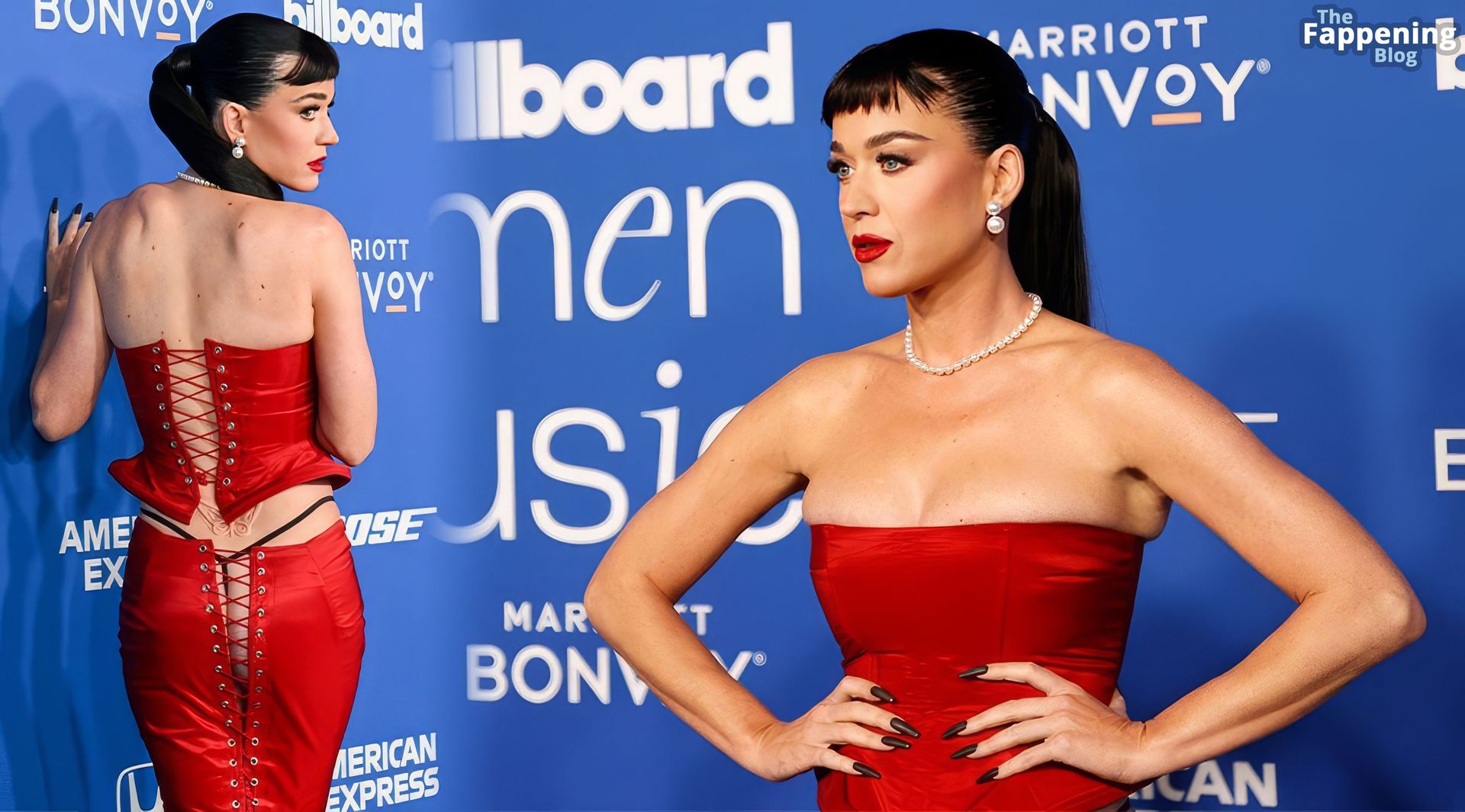 Confira os melhores momentos em que Katy Perry chama atenção com sua ousada calcinha fio-dental e exibe o bumbum à mostra no Billboard Women in Music Awards.