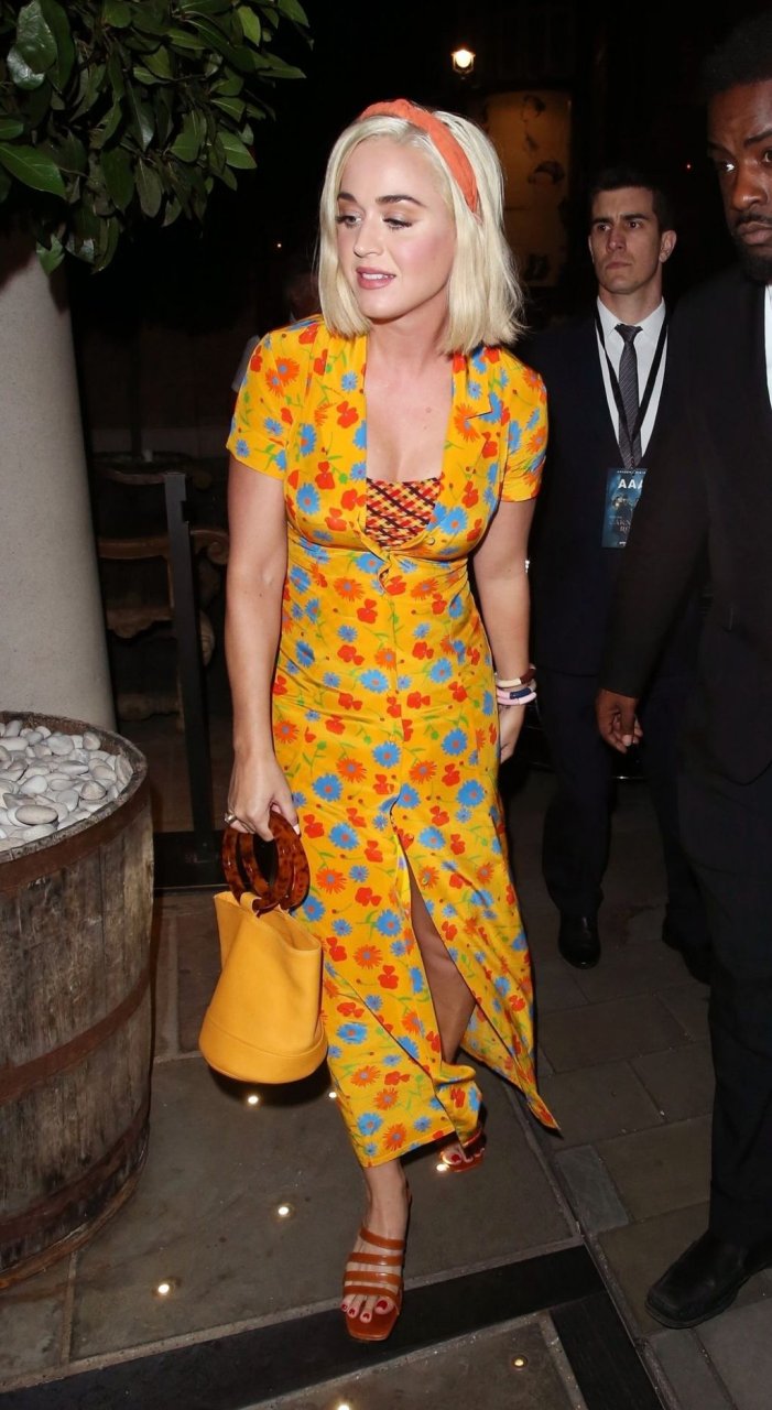 Katy Perry foi vista chegando no The Ham Yard Hotel em Londres, 28/08/2019. Carnival Row, que tem Orlando Bloom no elenco, também foi lançado no hotel nesta noite.