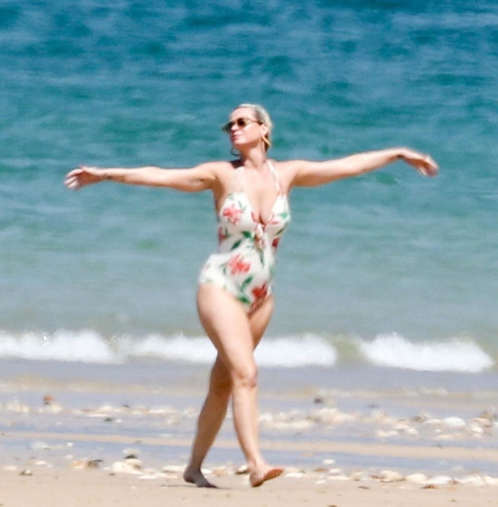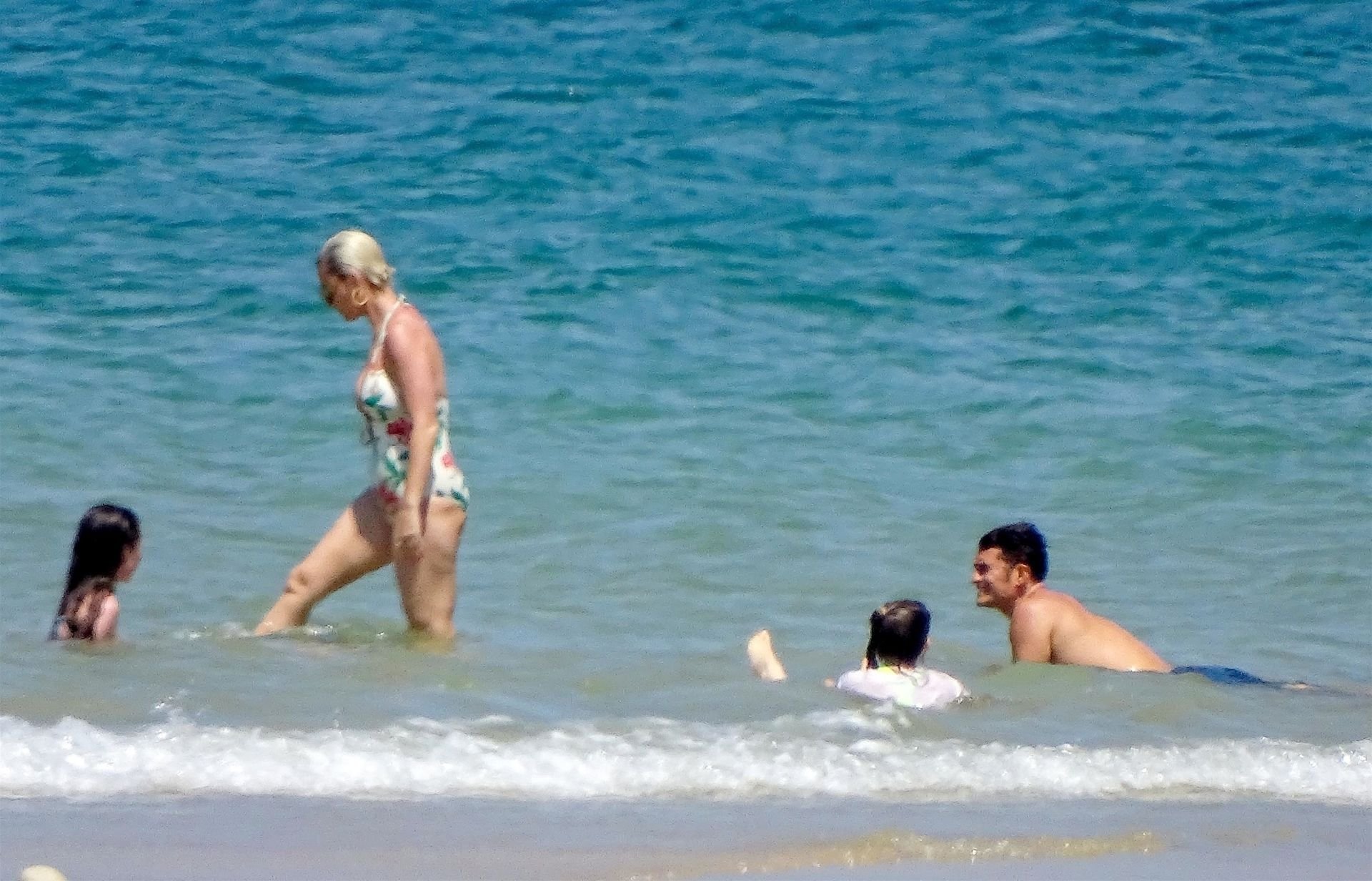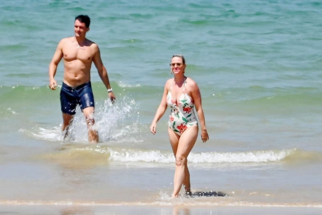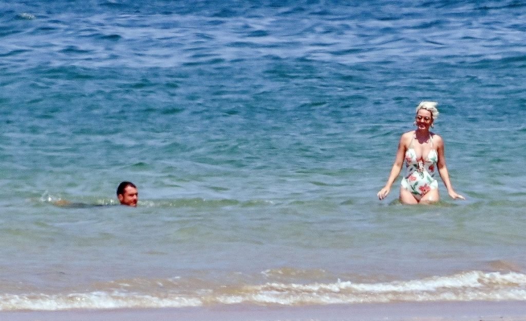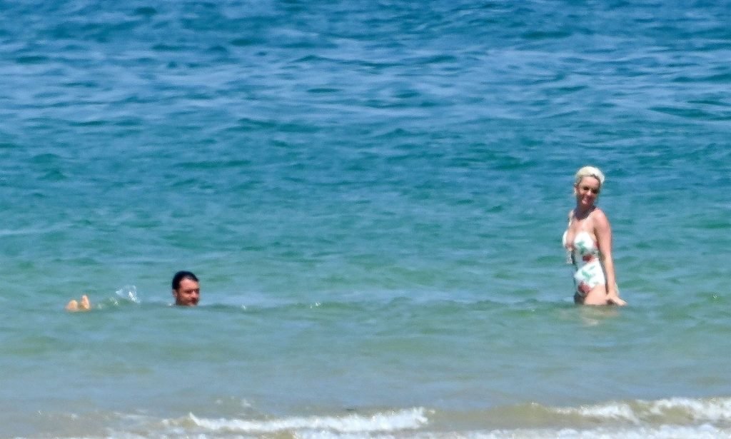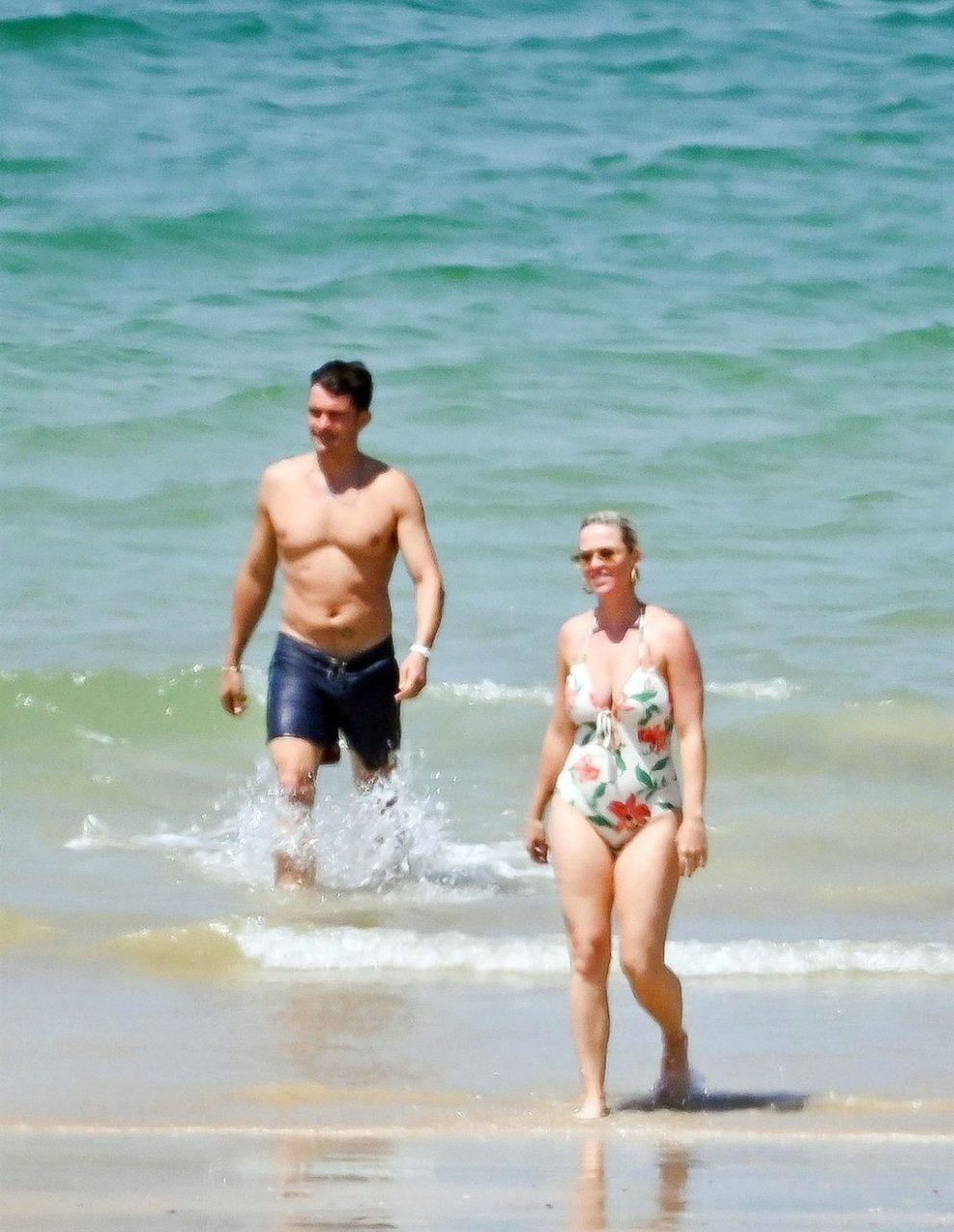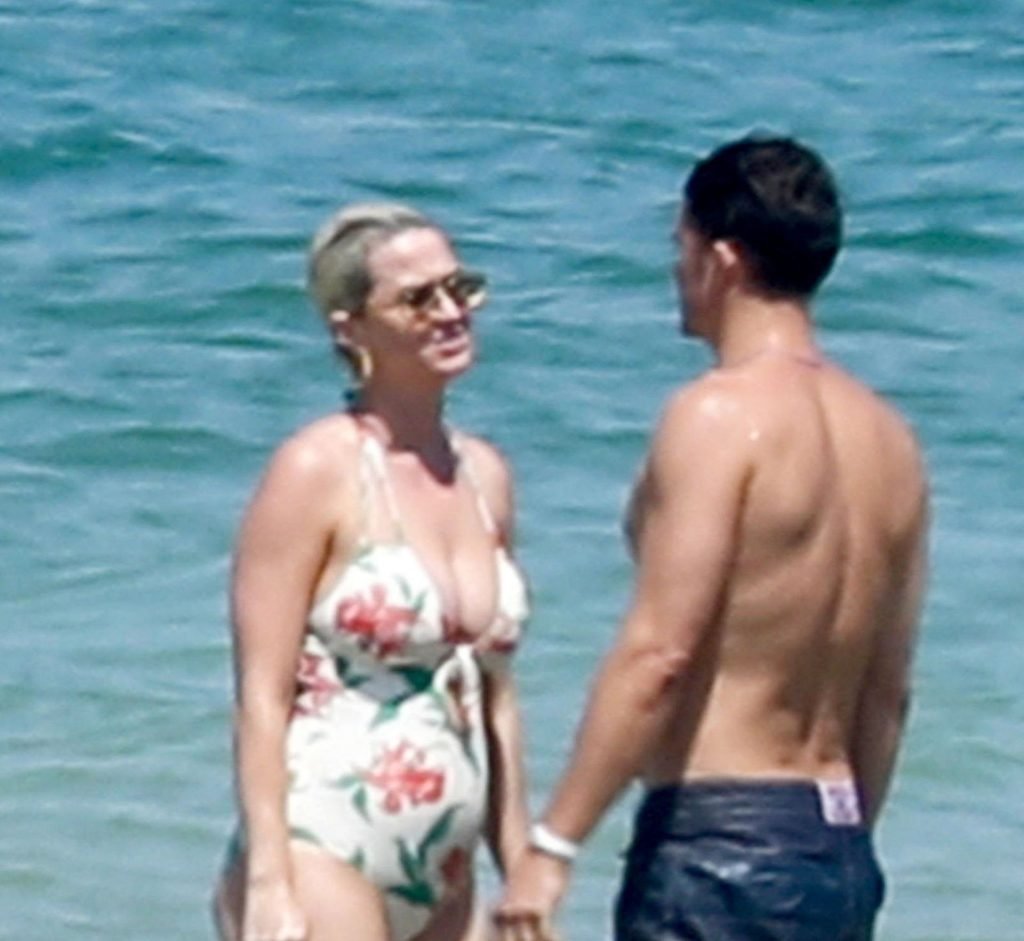 O casal, que ficou noivo no Dia dos Namorados deste ano, levou seu romance florescente para os mares franceses, onde desfrutaram de um mergulho no oceano azul e quente, com Orlando sem camisa exibindo seu físico e Katy usando seu atraente maiô floral.