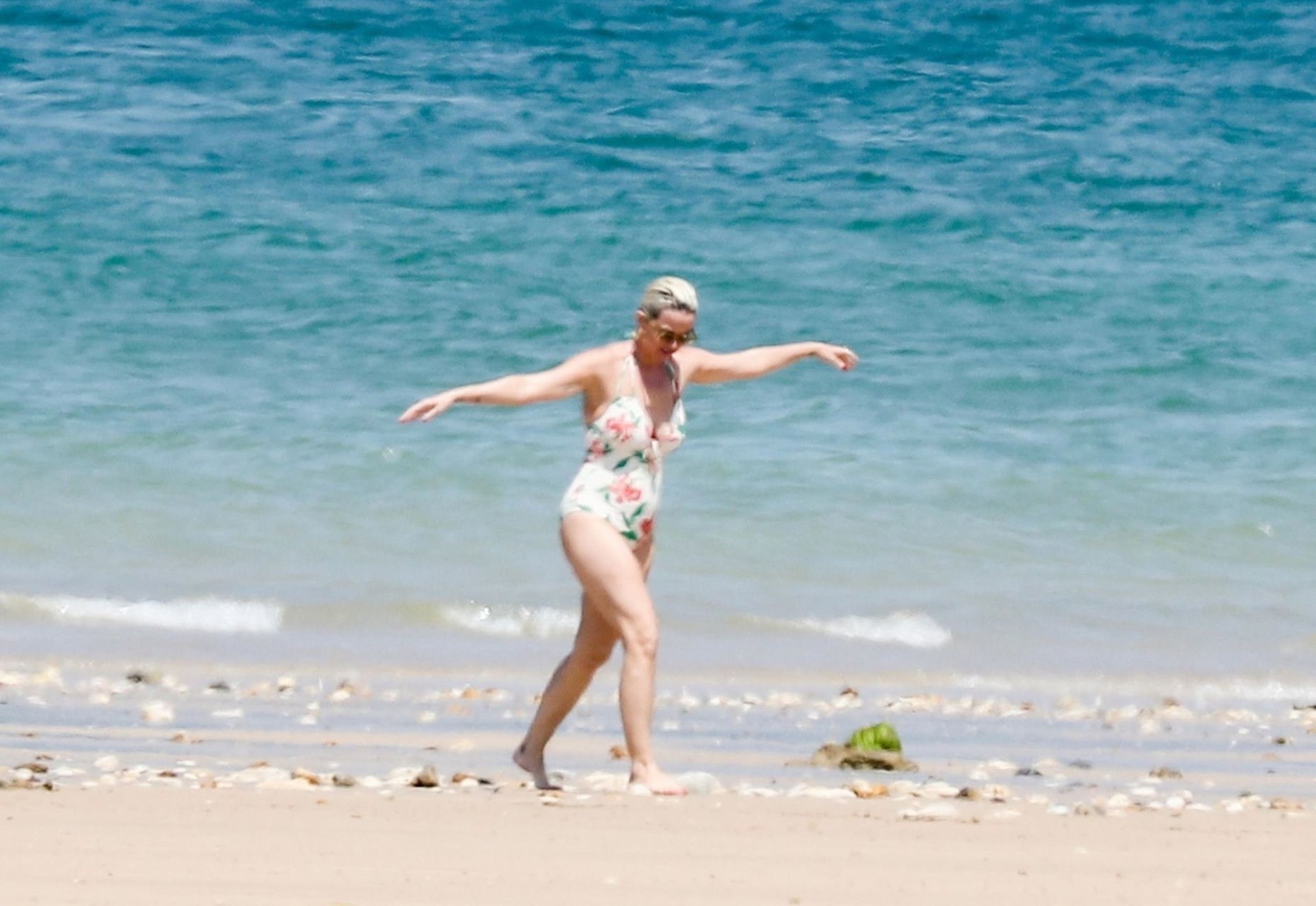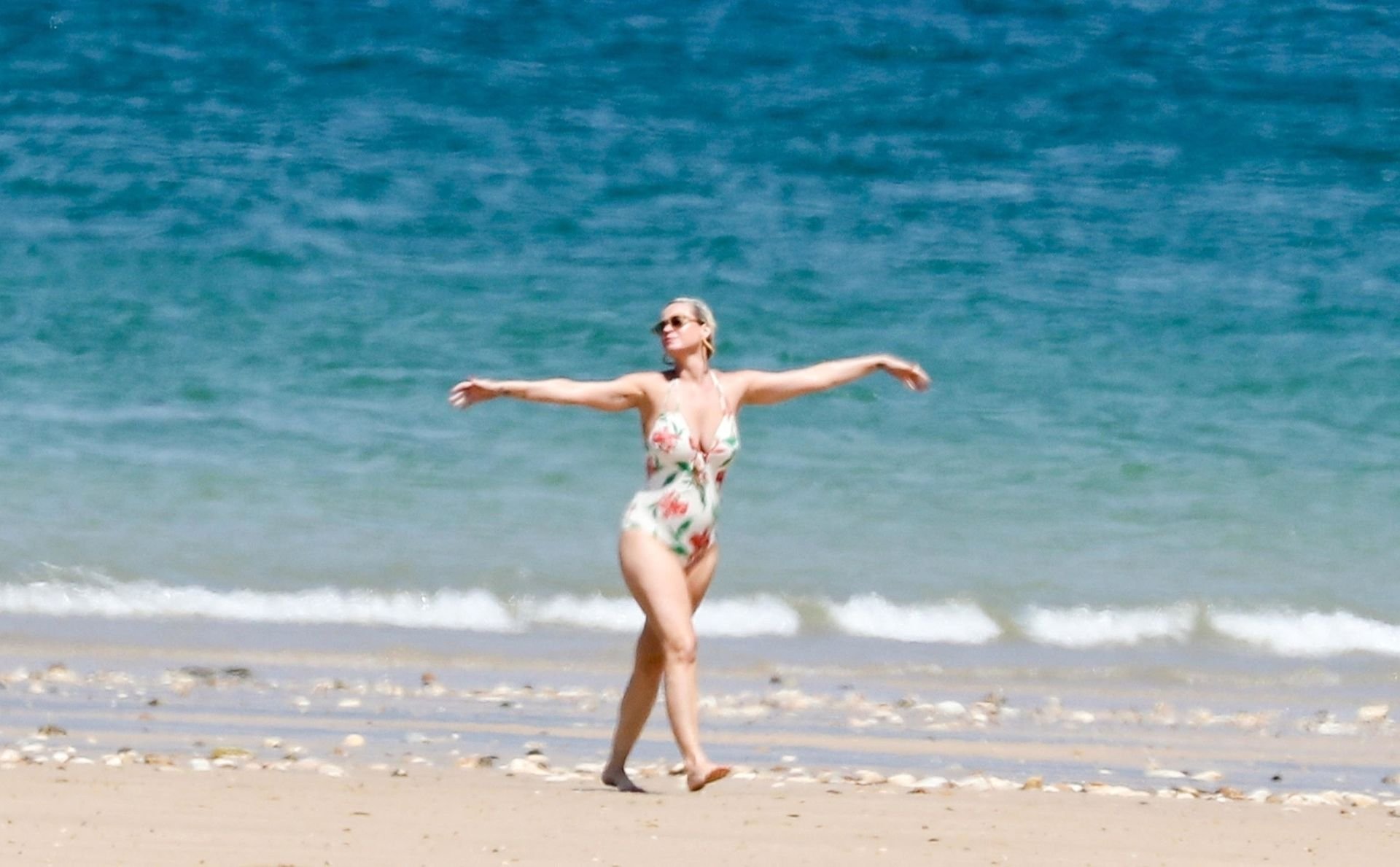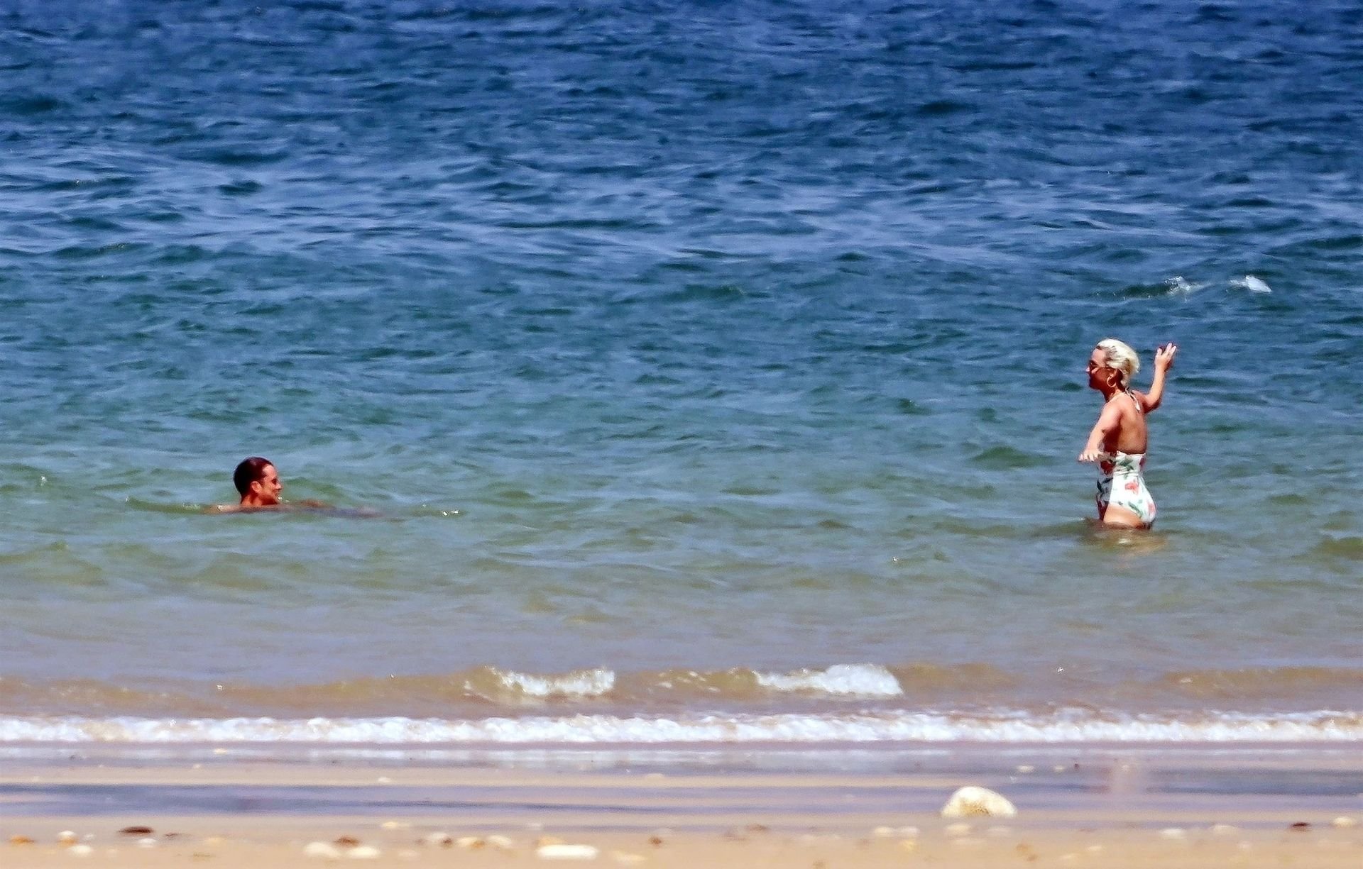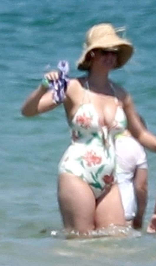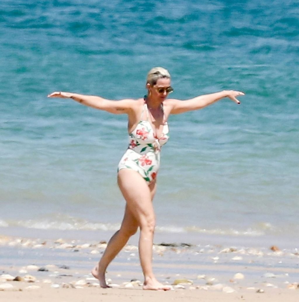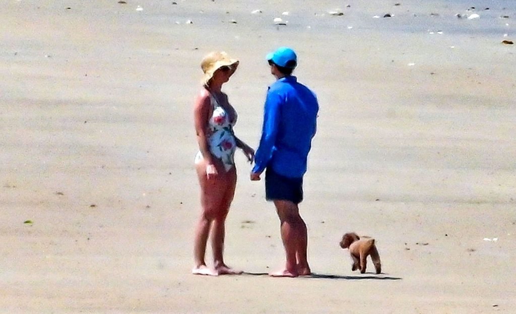 O casal, que ficou noivo no Dia dos Namorados deste ano, levou seu romance florescente para os mares franceses, onde desfrutaram de um mergulho no oceano azul e quente, com Orlando sem camisa exibindo seu físico e Katy usando seu atraente maiô floral.
