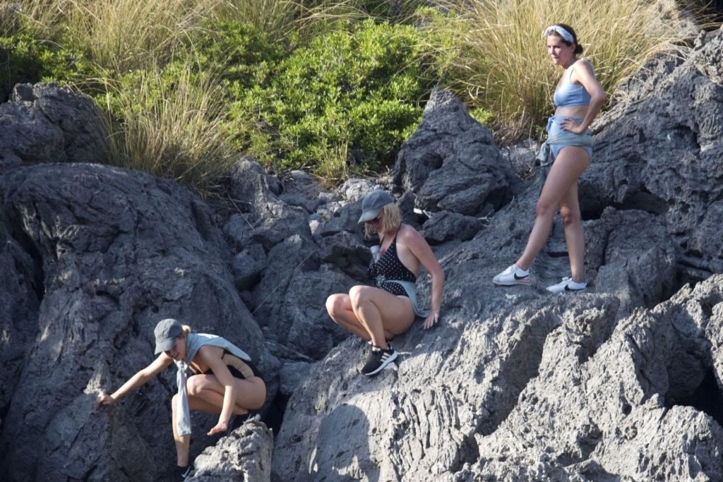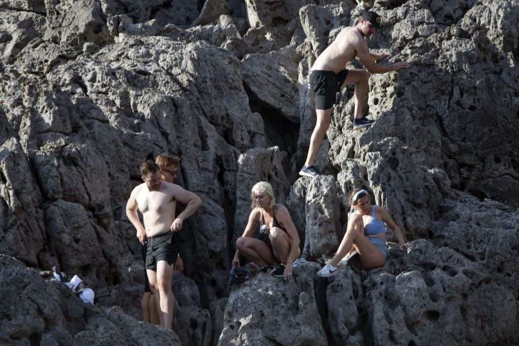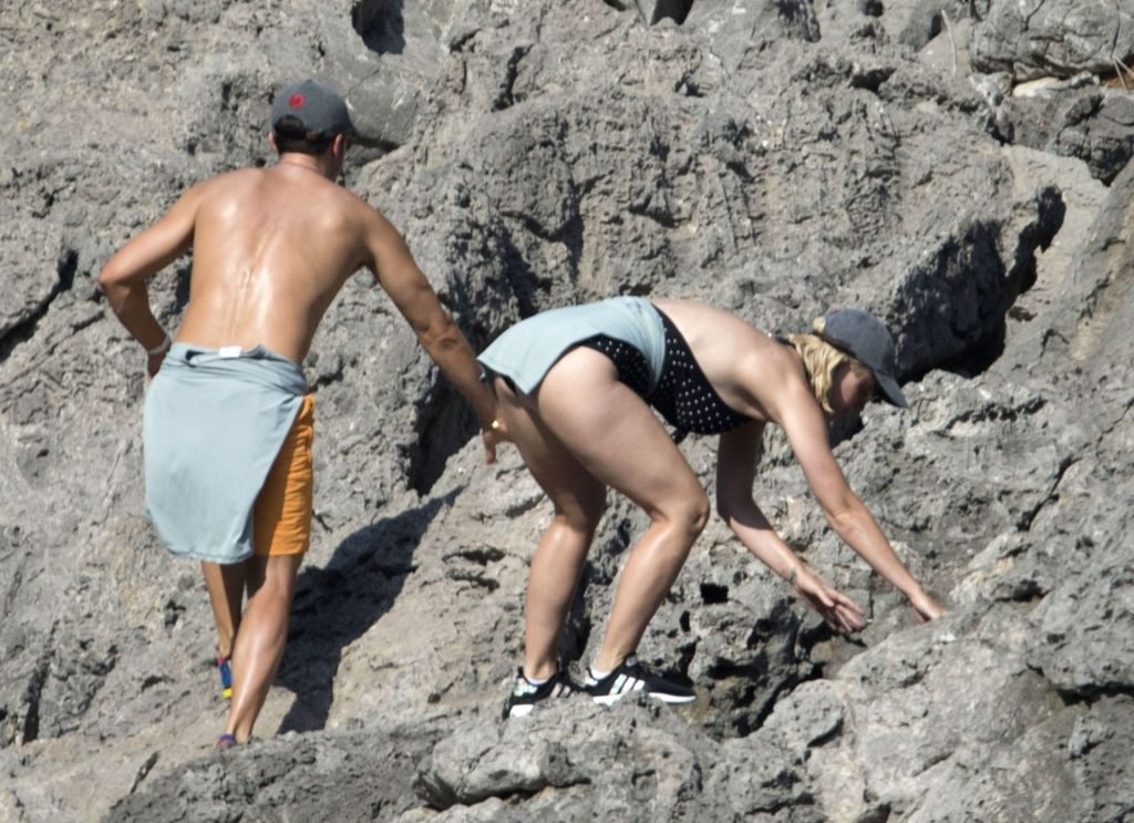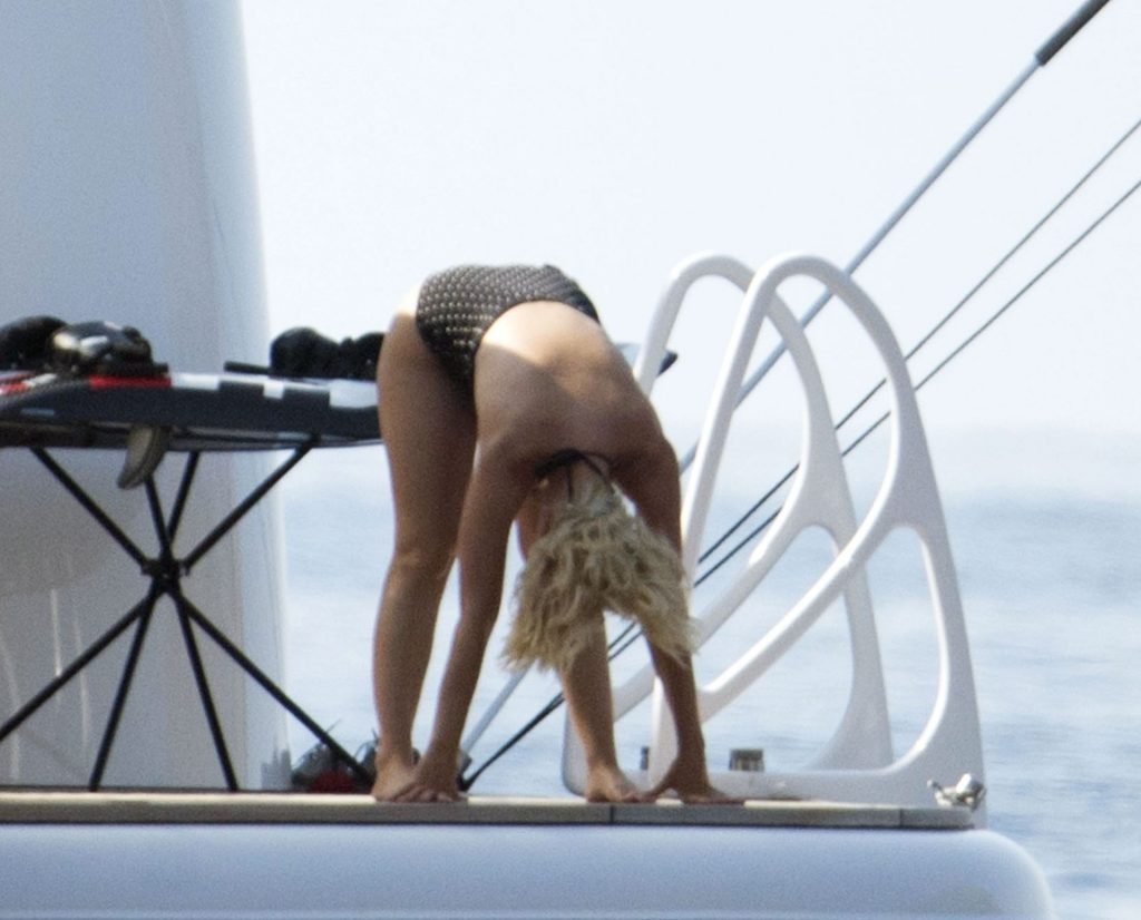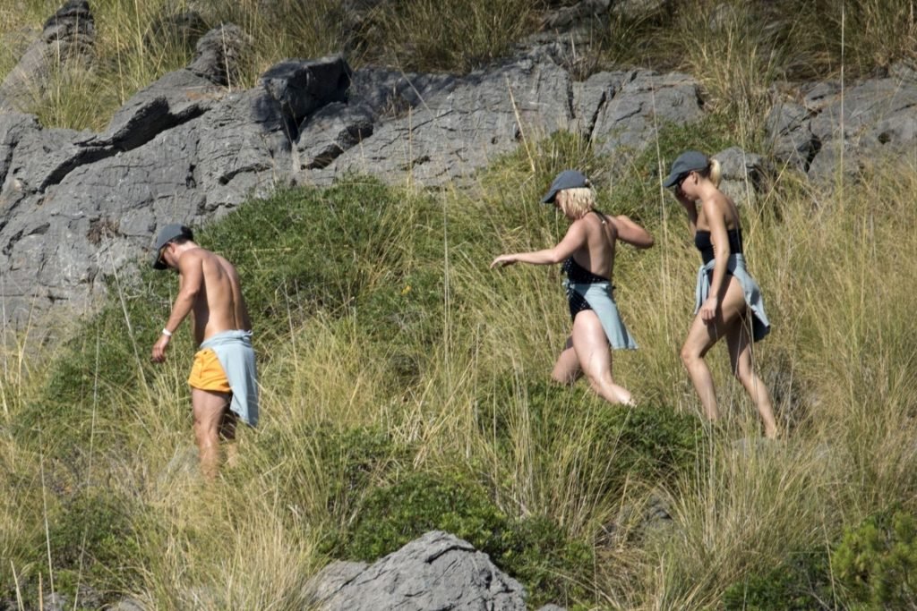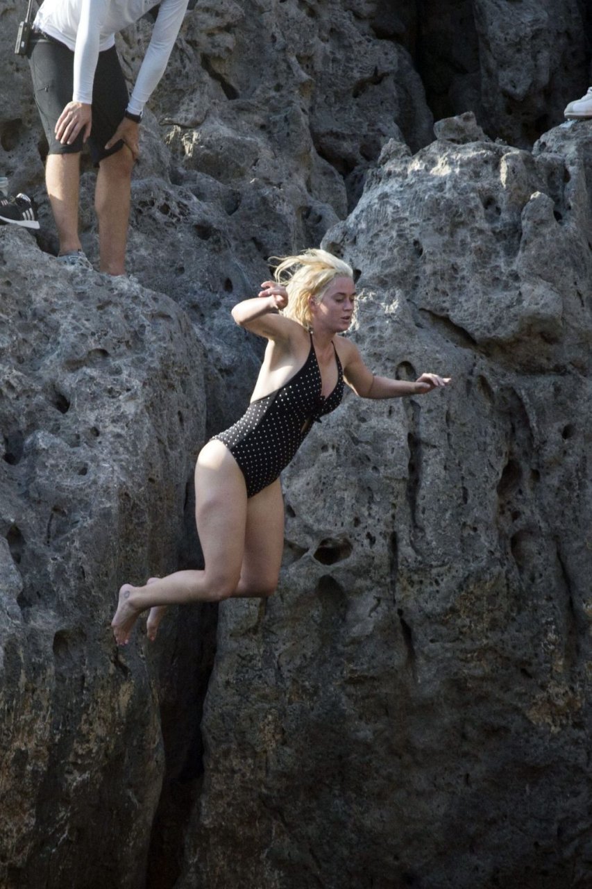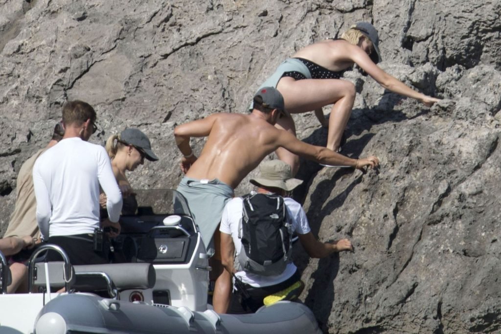 O casal feliz foi fotografado escalando um penhasco juntos antes de pular no mar, Katy mostrou coragem ao dar o salto do penhasco enquanto seus amigos a incentivavam. O grupo então voltou para seu megaiate de luxo onde relaxaram juntos acompanhados por alguns amigos, incluindo a ex de Roman Abramovich, Dasha Zhukova, o jornalista americano Derek Blasberg e o casal poderoso Michael Kives e Lydia Gray Kives.