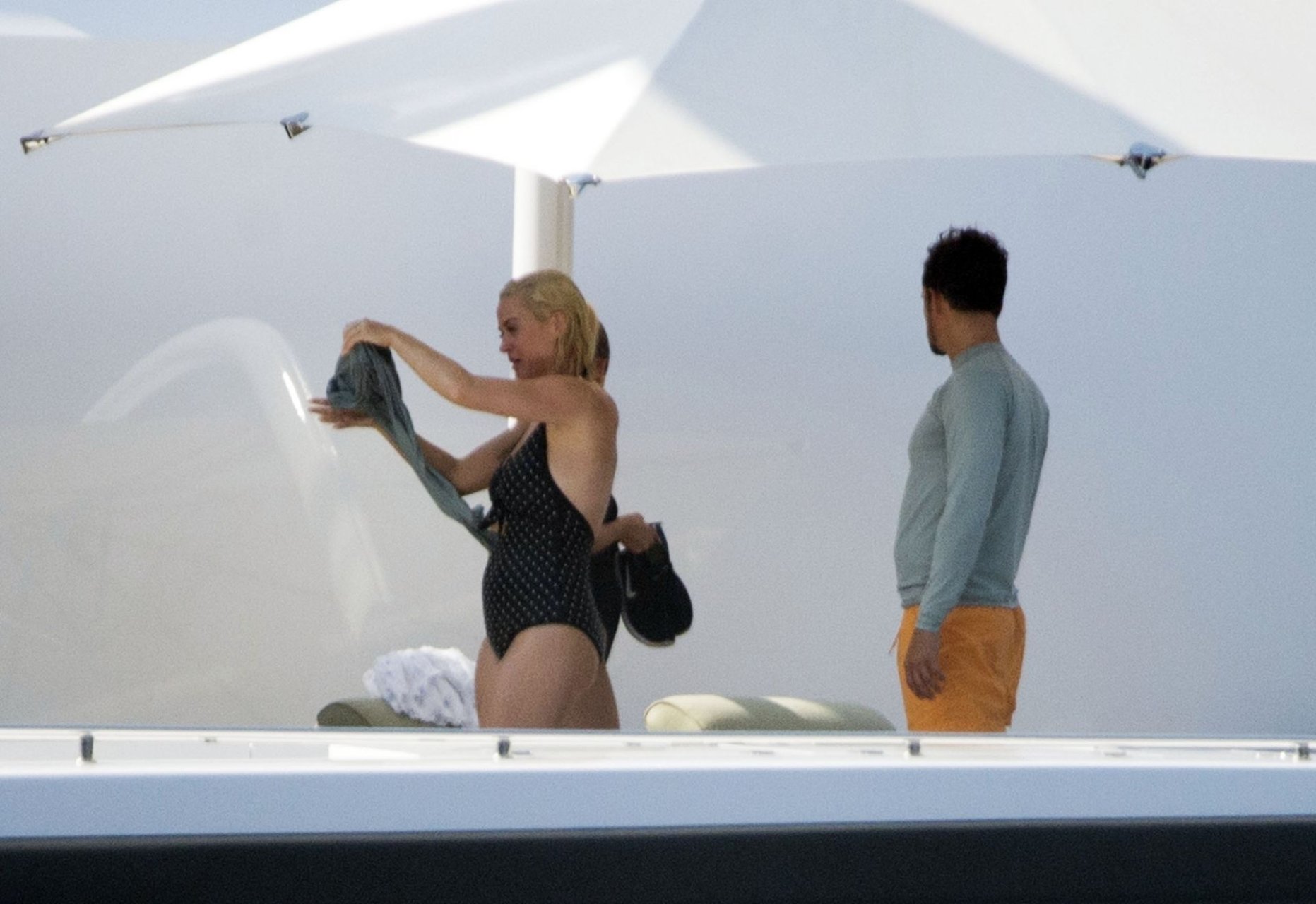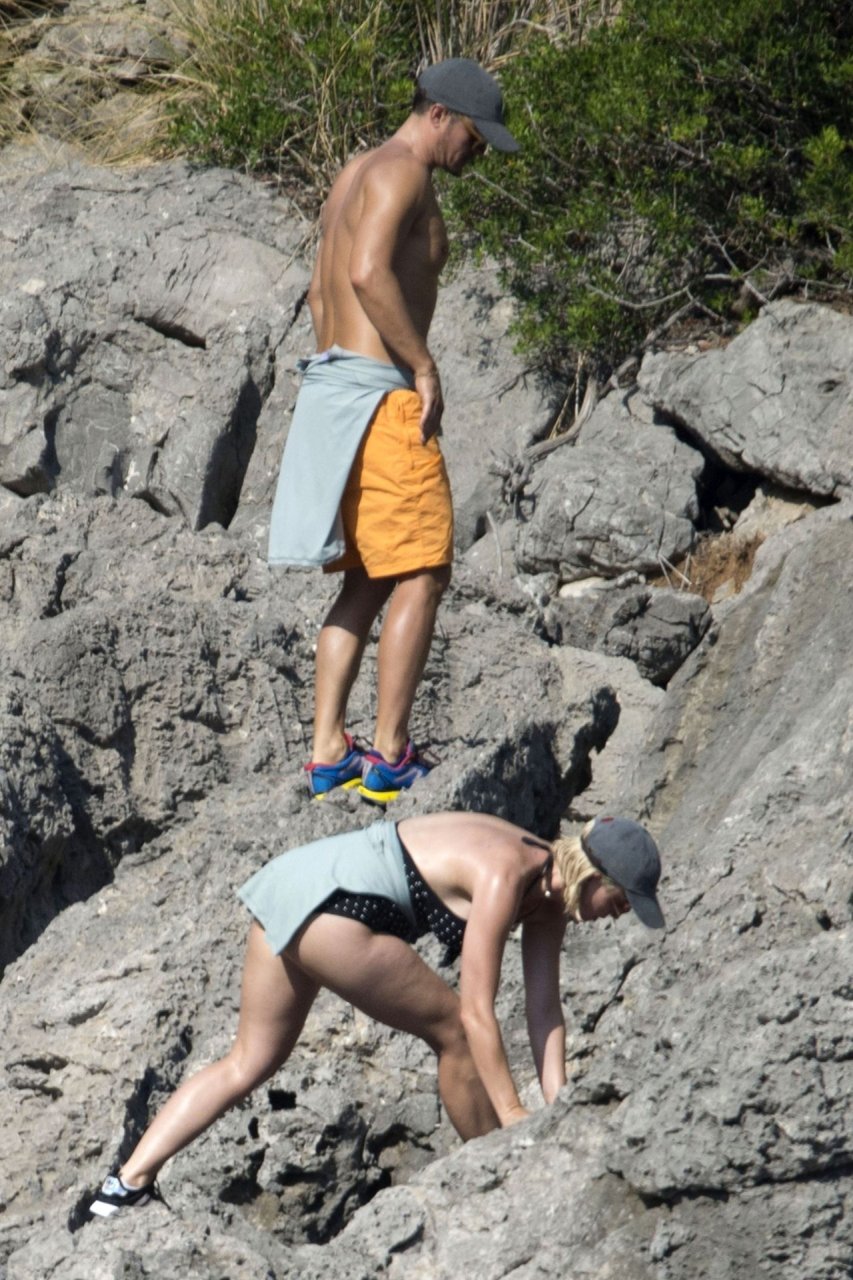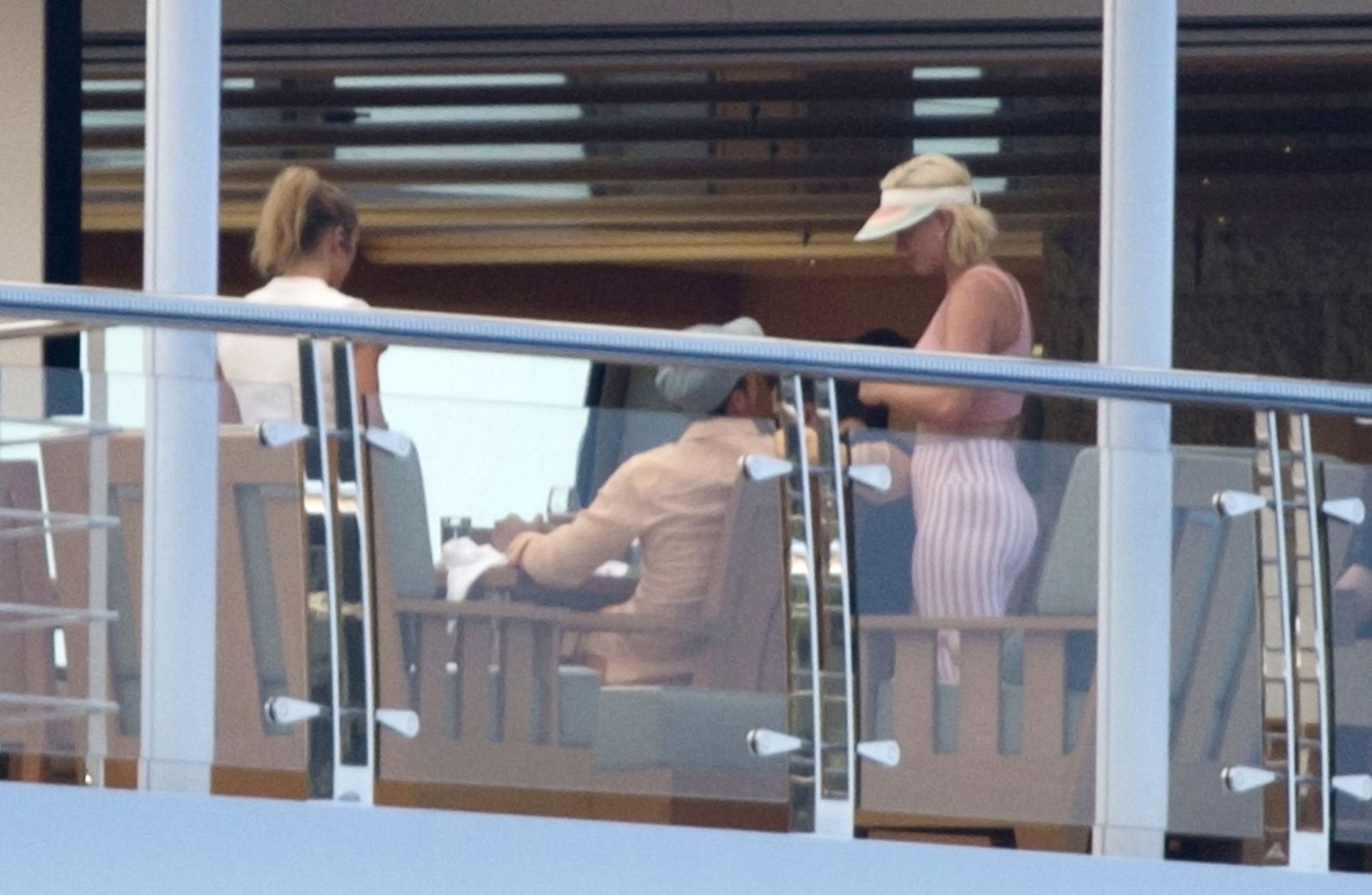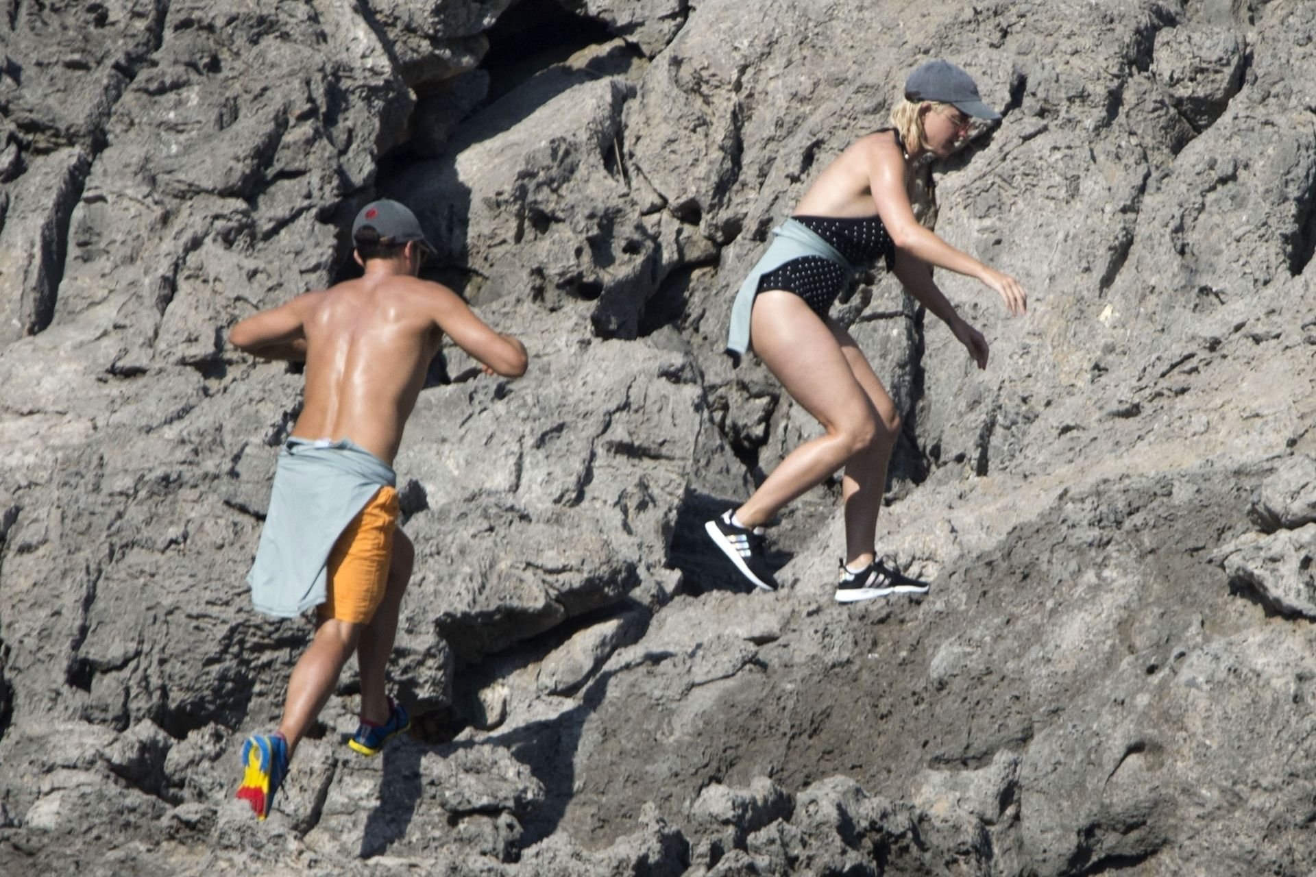 O casal feliz foi fotografado escalando um penhasco juntos antes de pular no mar, Katy mostrou coragem ao dar o salto do penhasco enquanto seus amigos a incentivavam. O grupo então voltou para seu megaiate de luxo onde relaxaram juntos acompanhados por alguns amigos, incluindo a ex de Roman Abramovich, Dasha Zhukova, o jornalista americano Derek Blasberg e o casal poderoso Michael Kives e Lydia Gray Kives.