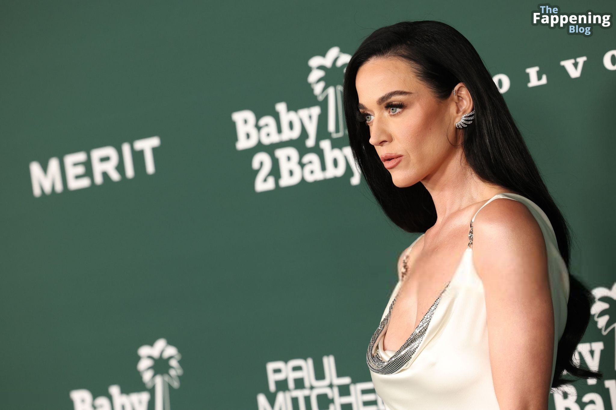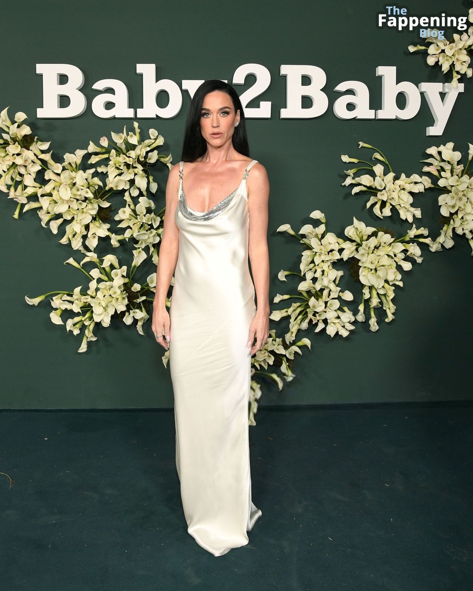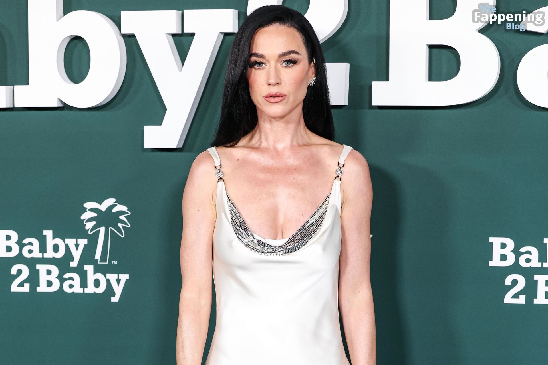 Katy Perry apareceu sem sutiã, exibindo os mamilos marcados em um vestido de cetim após se produzir toda para o Baby2Baby Gala.