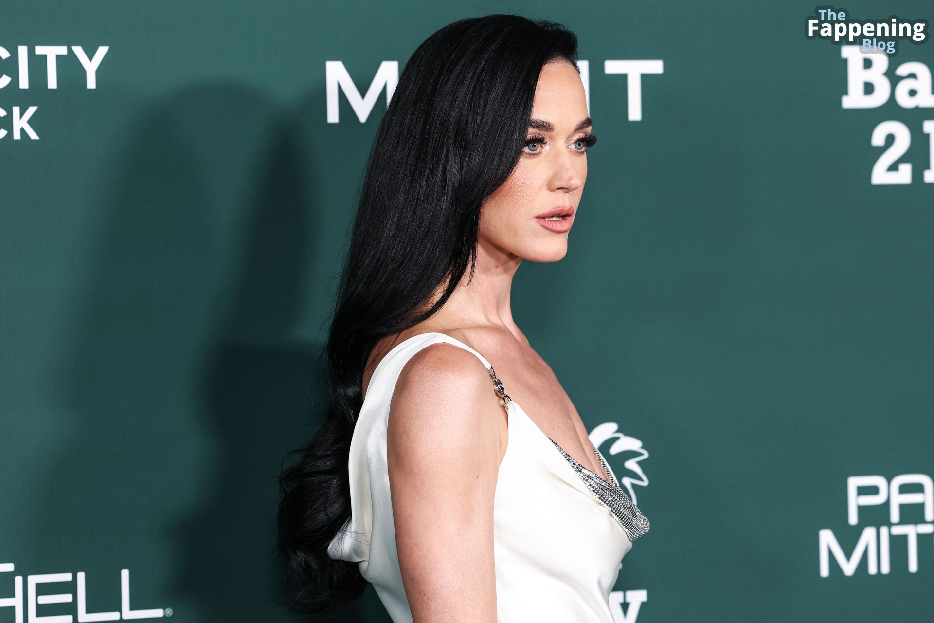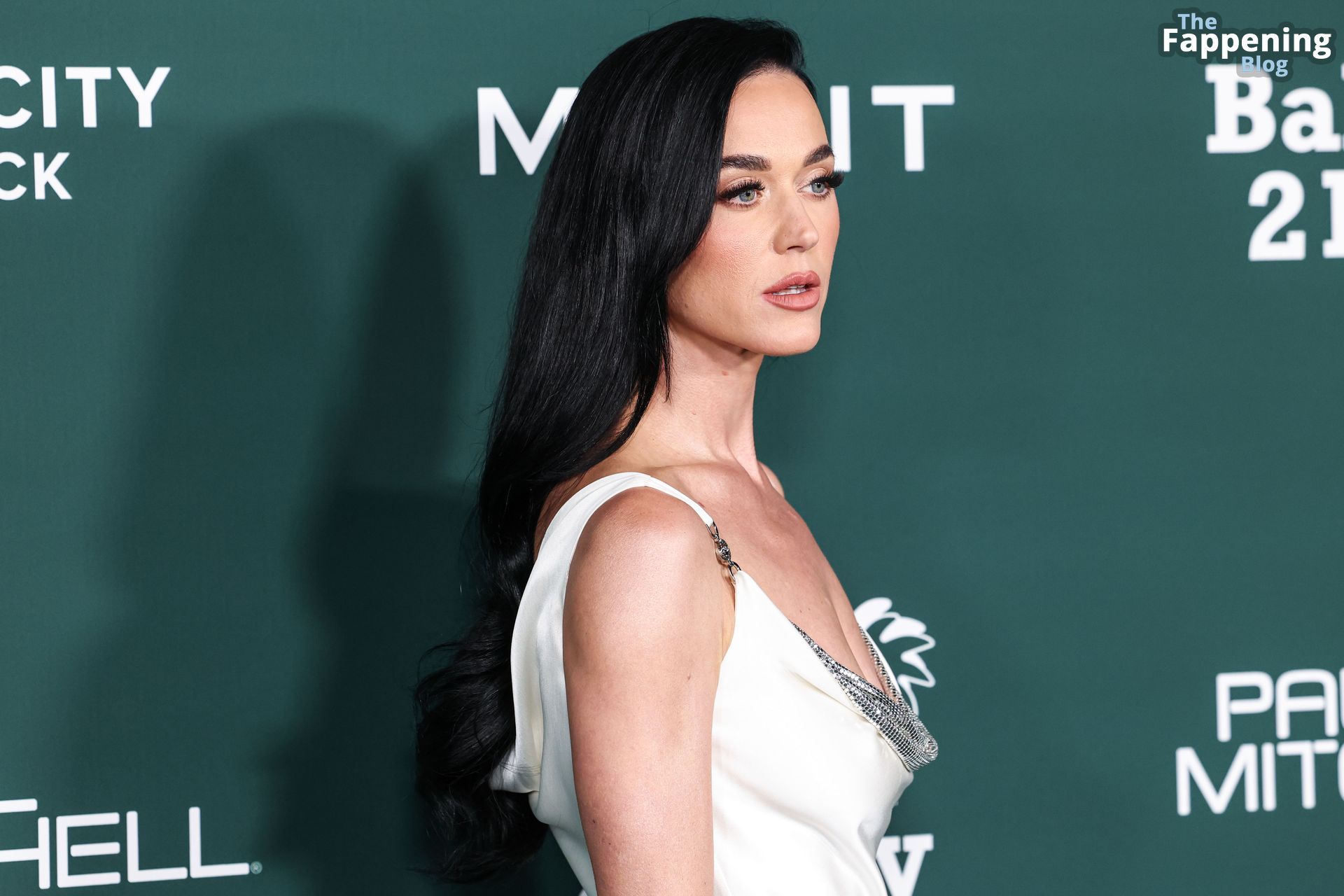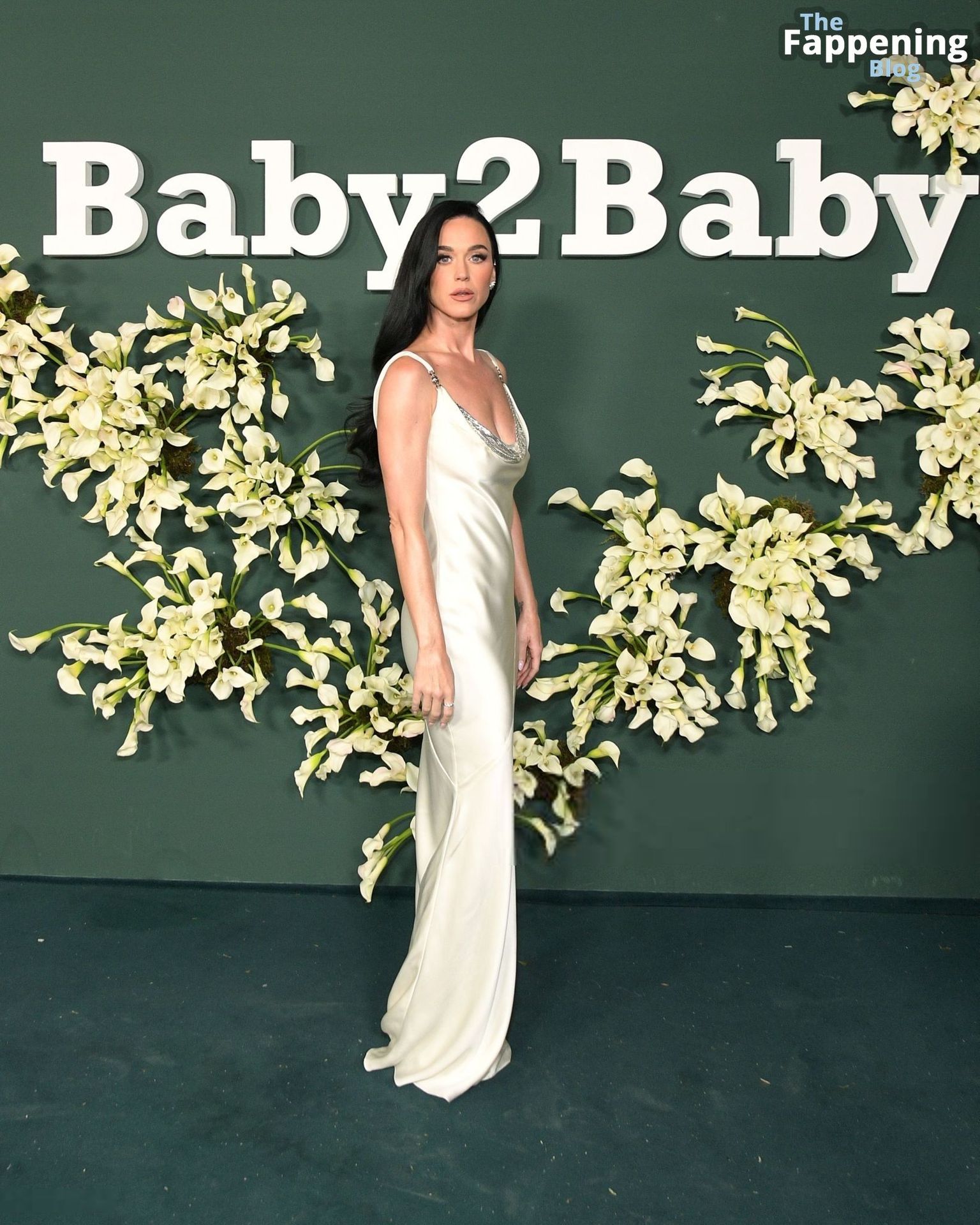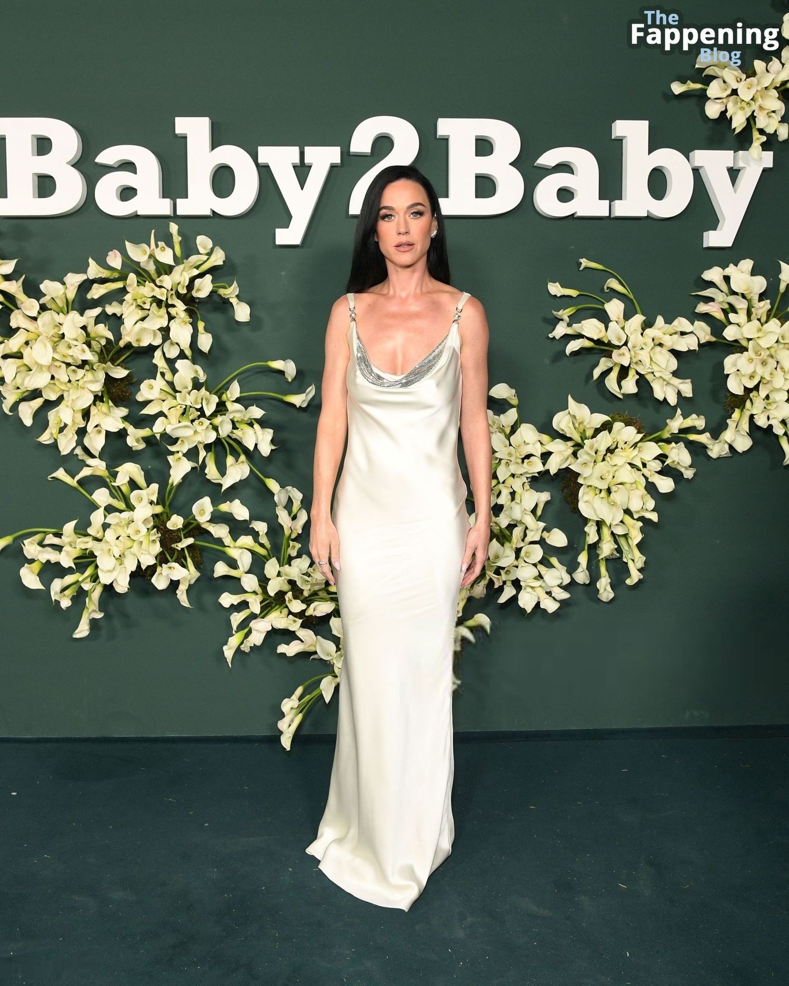 Katy Perry apareceu sem sutiã, exibindo os mamilos marcados em um vestido de cetim após se produzir toda para o Baby2Baby Gala.