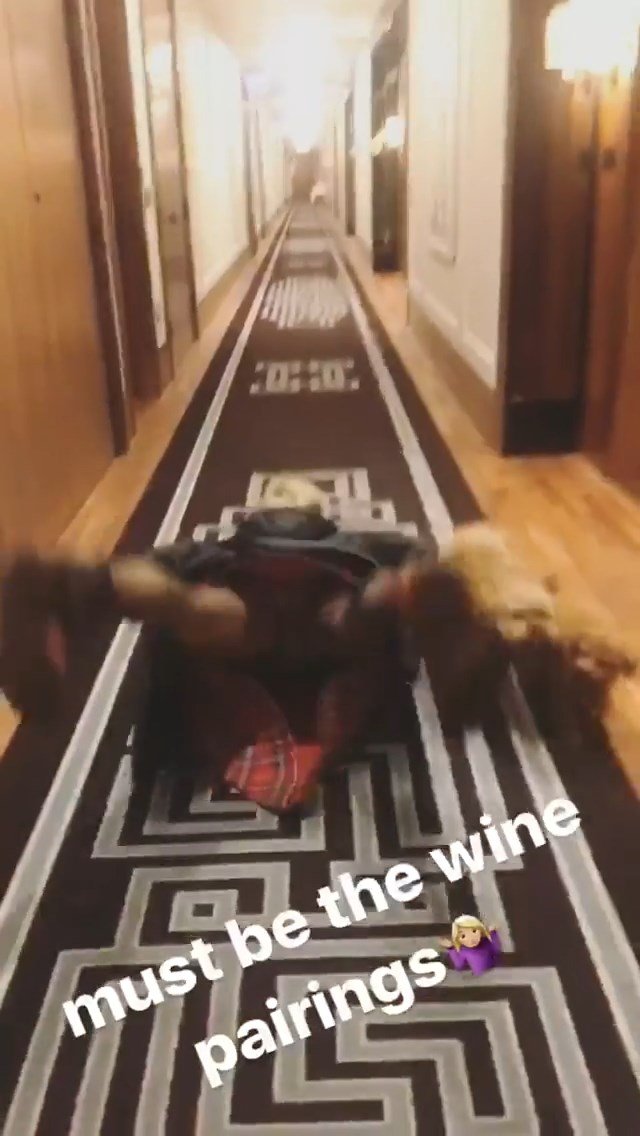 Eu me pergunto o que KP quer dizer quando fala em harmonizações de vinho. Ela quer dizer que fazer o 'worm' no corredor do hotel é inteiramente uma consequência de beber vinho?