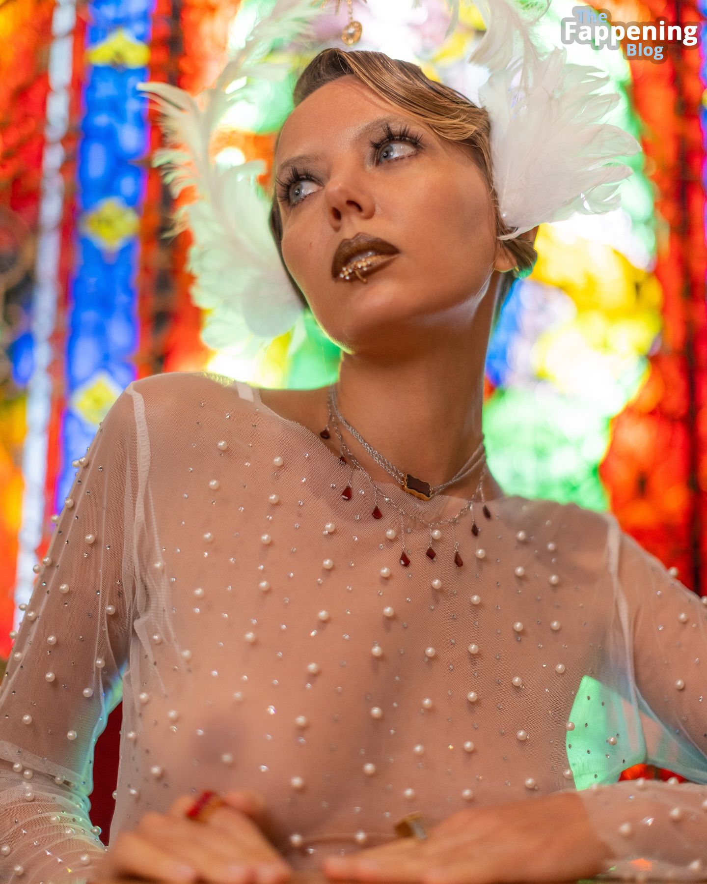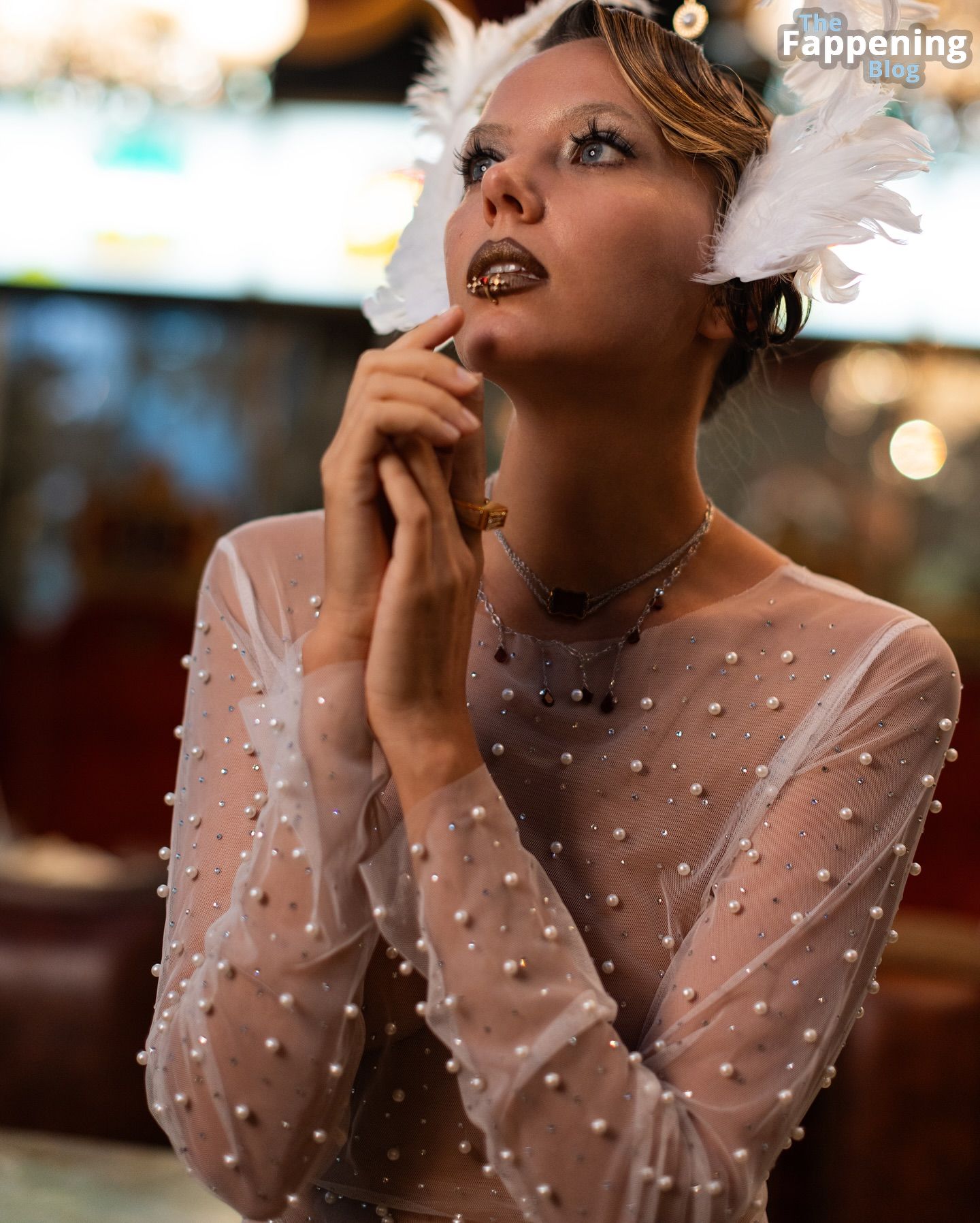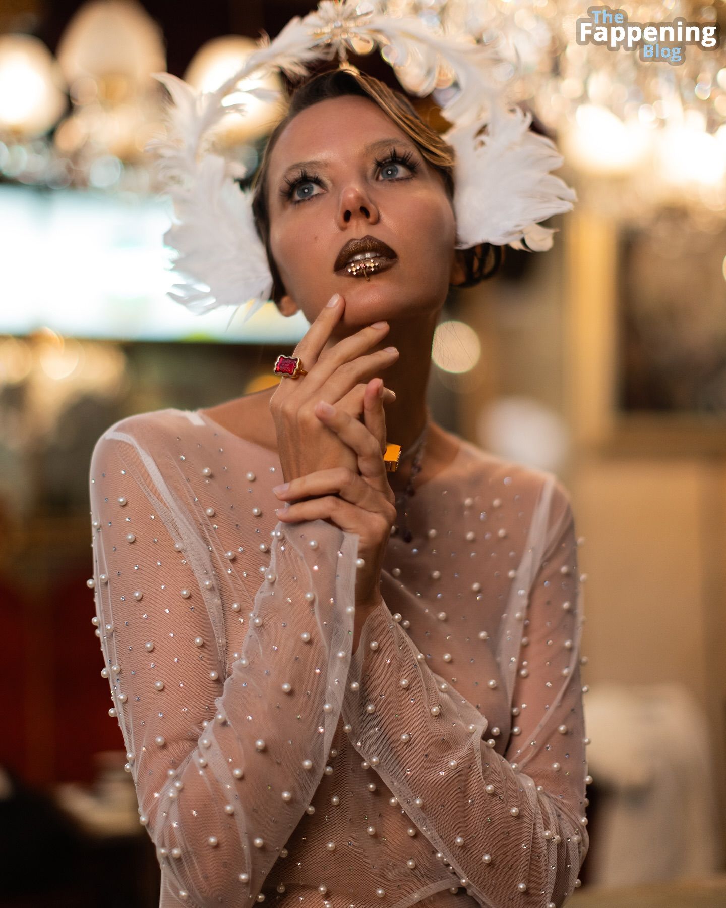 Normalmente super sexy, mas ela não parece ótima aqui. E o que raios está acontecendo com esses piercings nos lábios? Espero que sejam só para a sessão.