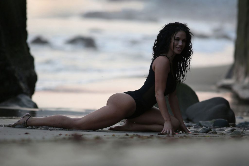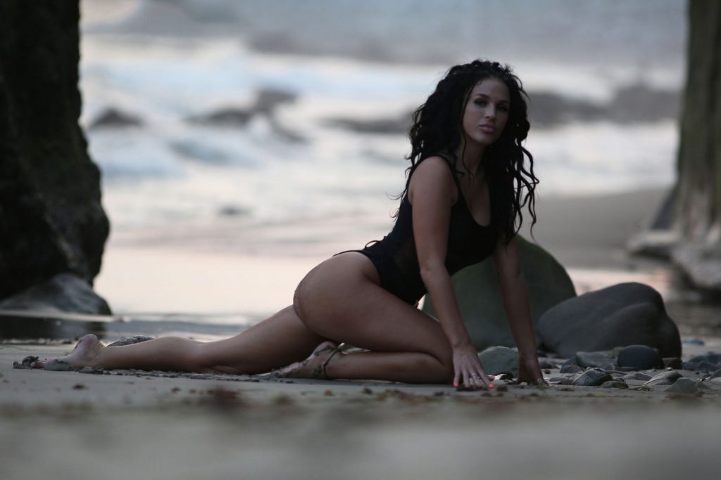 Kaymora Ferrare Usa um Sexy Maiô Preto na Praia em Malibu (26 Fotos)