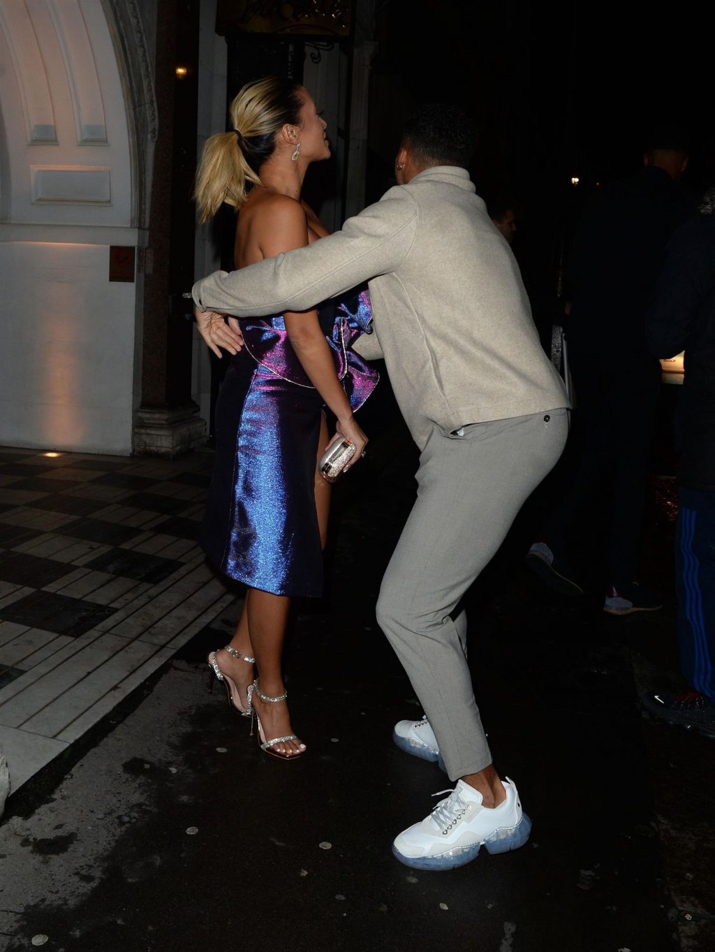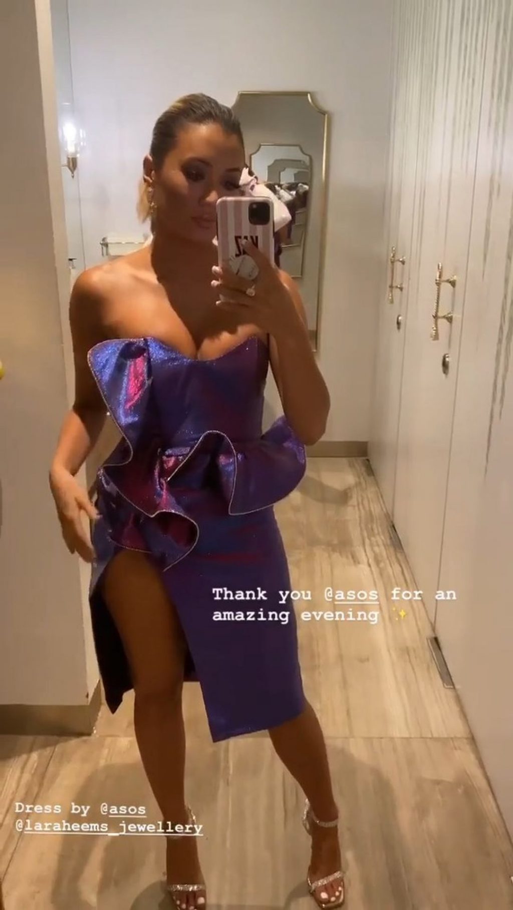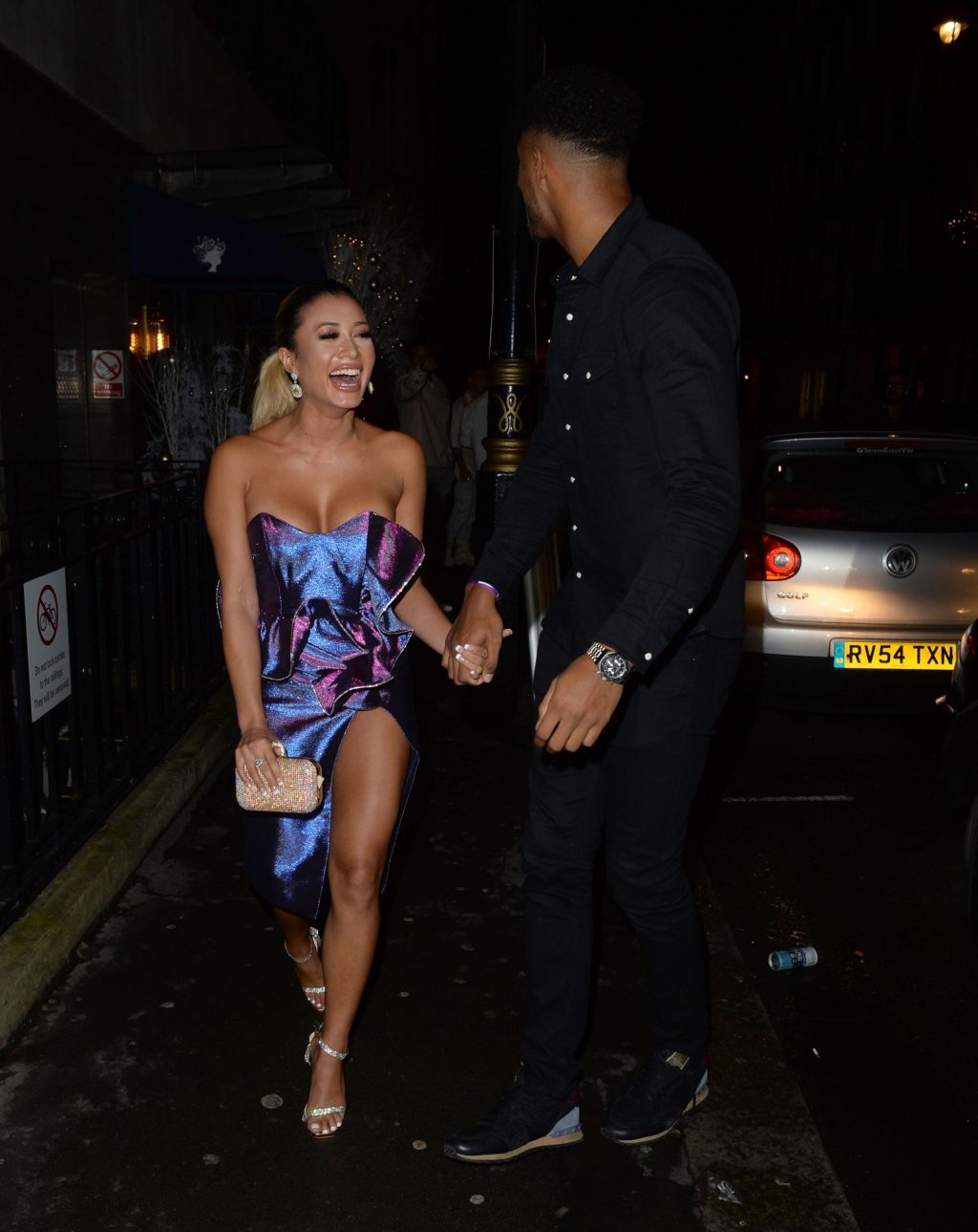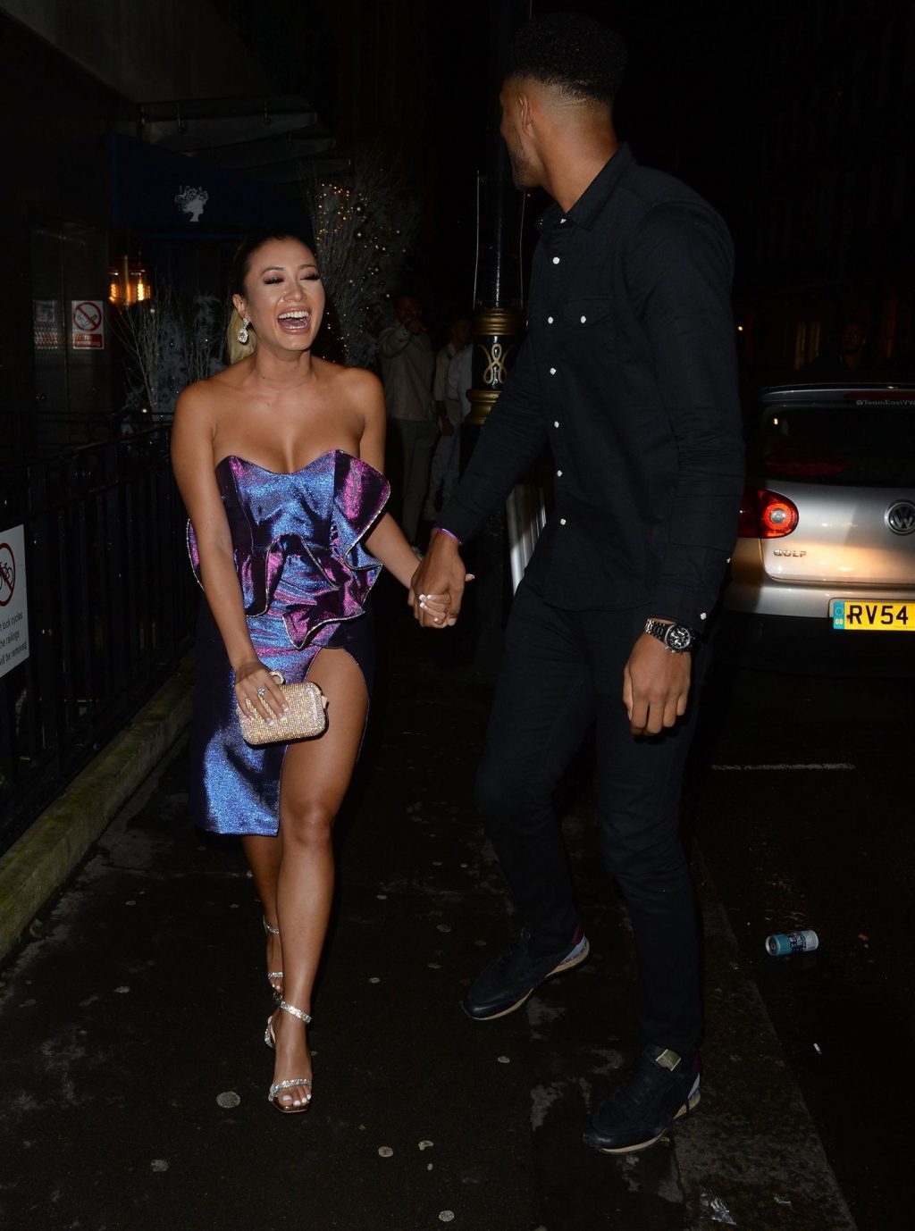 Leggy e voluptuosa estrela de “Love Island” Kazimir “Kaz” Crossley foi vista com um vestido roxo junto com Theo Campbell na festa no Bagatelle em Londres, 27/11/2019.