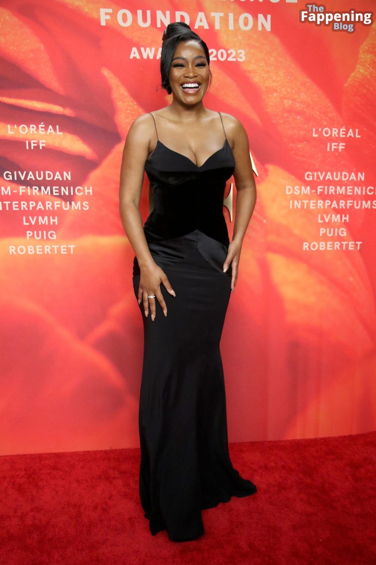 Keke Palmer está esquentando tudo com seu decote épico em um vestido preto decotado no Fragrance Foundation Awards em NYC, cerca de quatro meses depois de ela se tornar uma mãe incrível. Essa gata sabe como mostrar seus atributos e está arrasando com confiança.