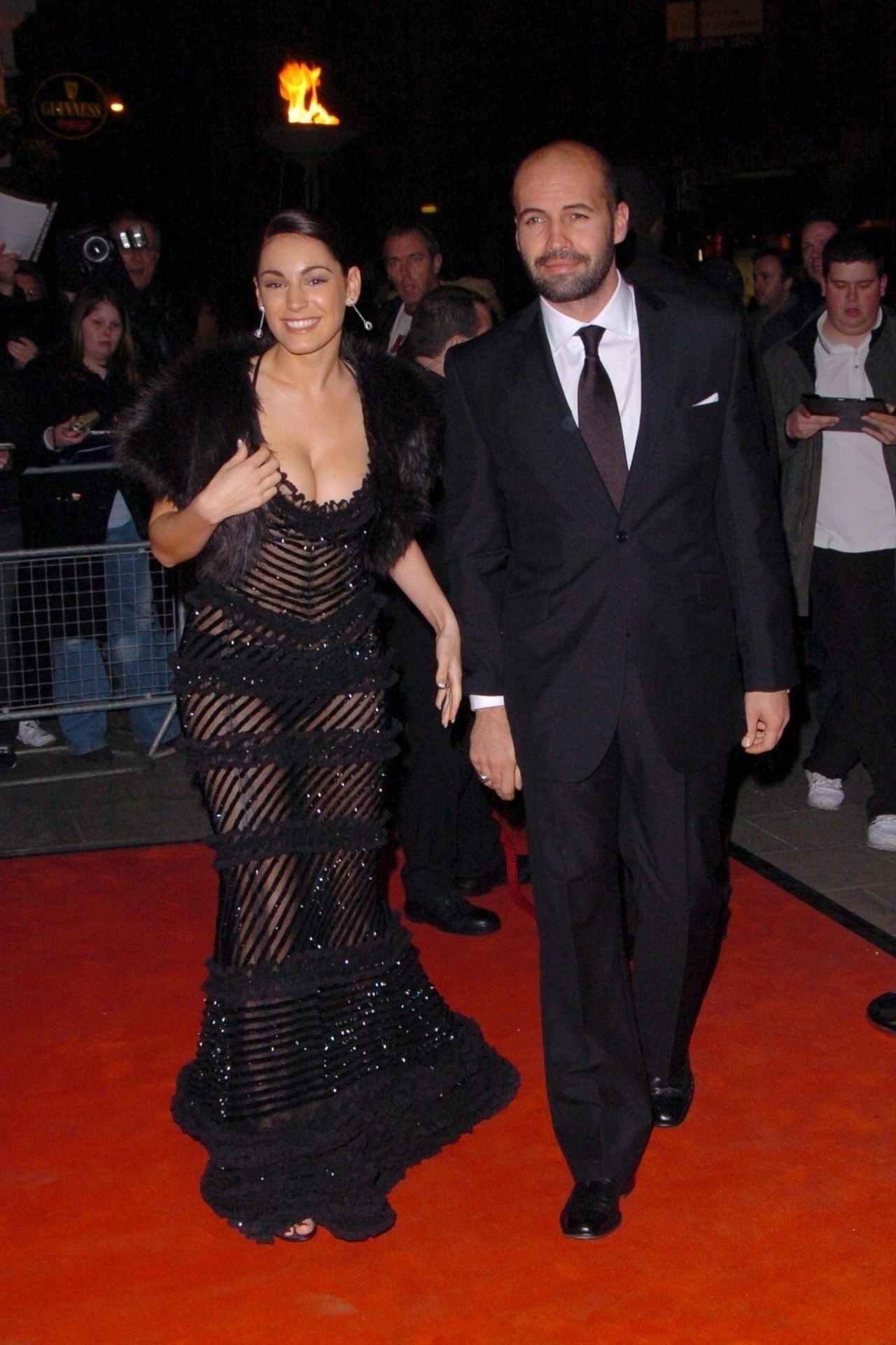 Atriz/modelo/estrela de The Fappening Kelly Brook e Billy Zane chegam ao Hammersmith Palais durante o The 2004 British Independent Film Awards em Londres. Kelly foi fotografada no tapete vermelho com um vestido preto transparente mostrando seus seios.