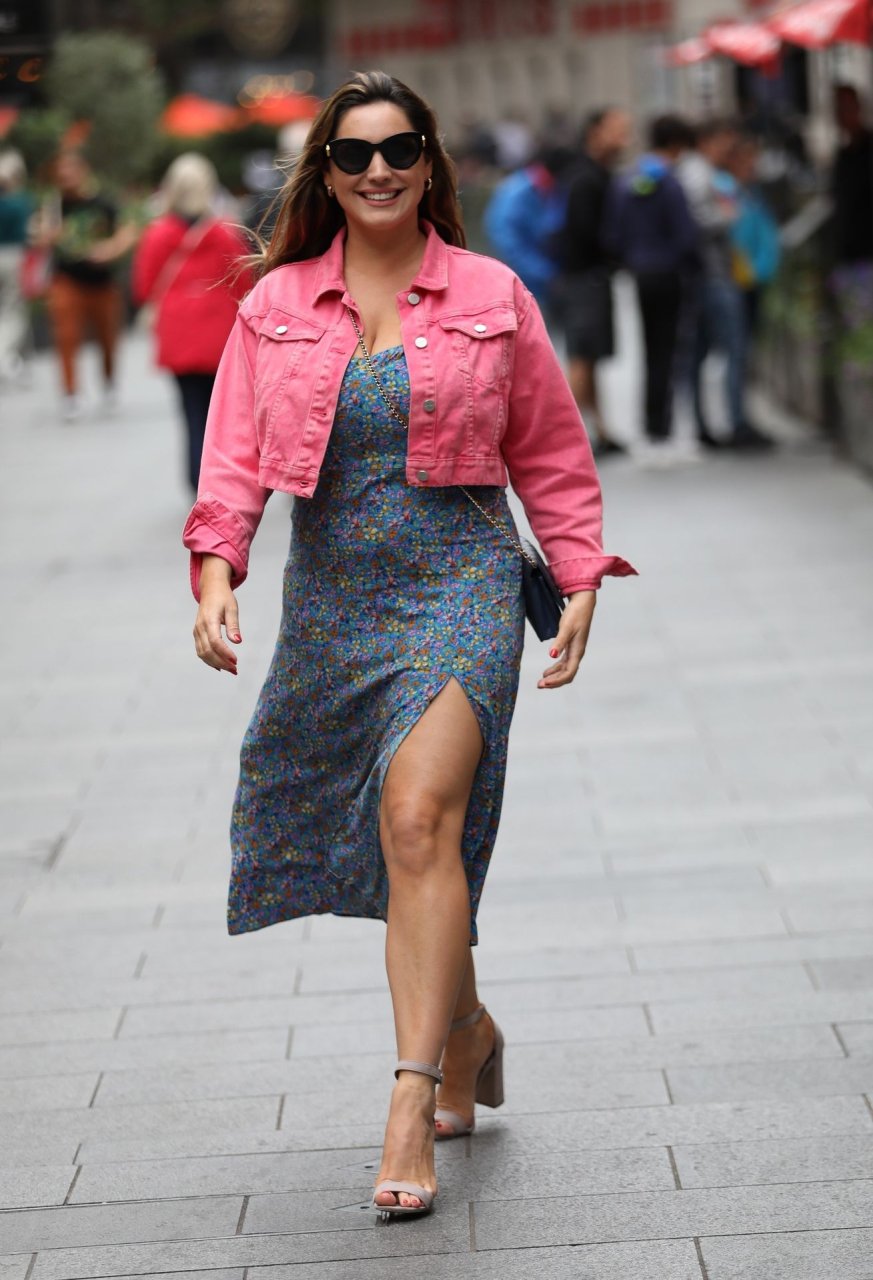 Apresentadora de televisão, atriz e estrela de The Fappening Kelly Brook quase sofre um “momento Marilyn Monroe” ao ser pega por uma rajada de vento enquanto sai após seu programa na Heart Radio nos Global Studios em Londres, 19/07/2019.