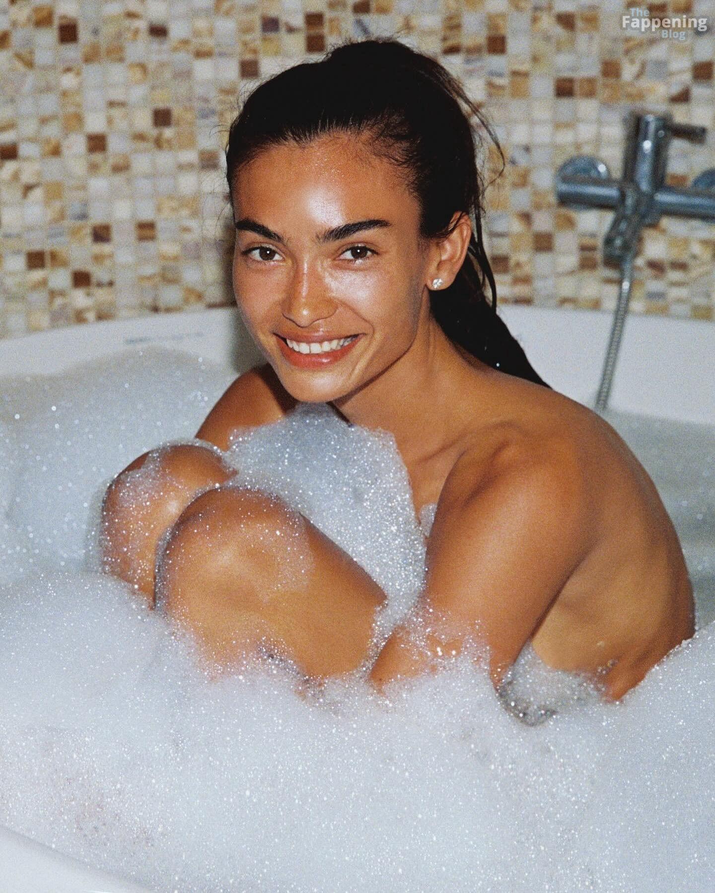 Kelly Gale está completamente nua na banheira de espuma, exibindo seu corpo bronzeado neste ensaio de Cameron Hammond.