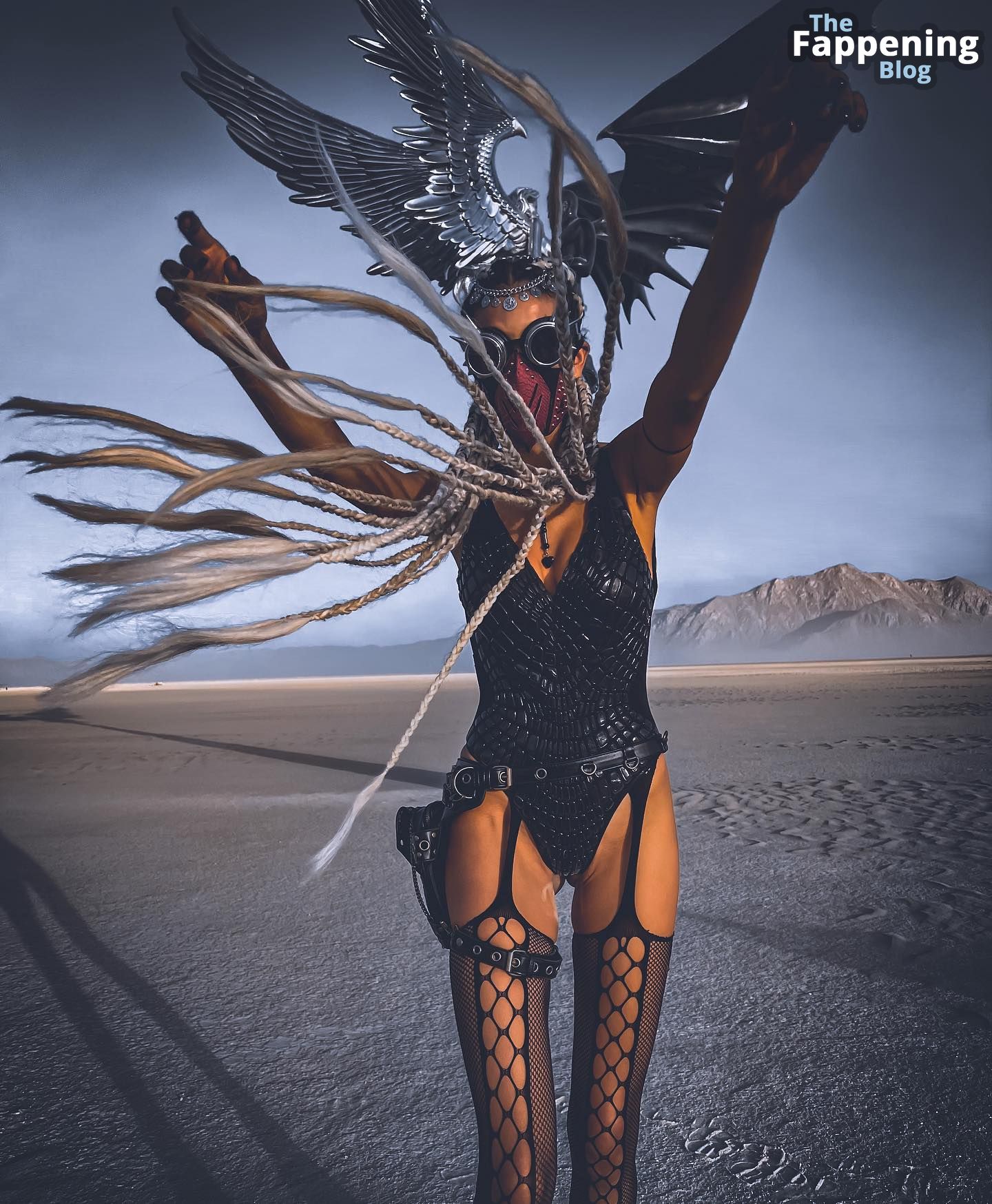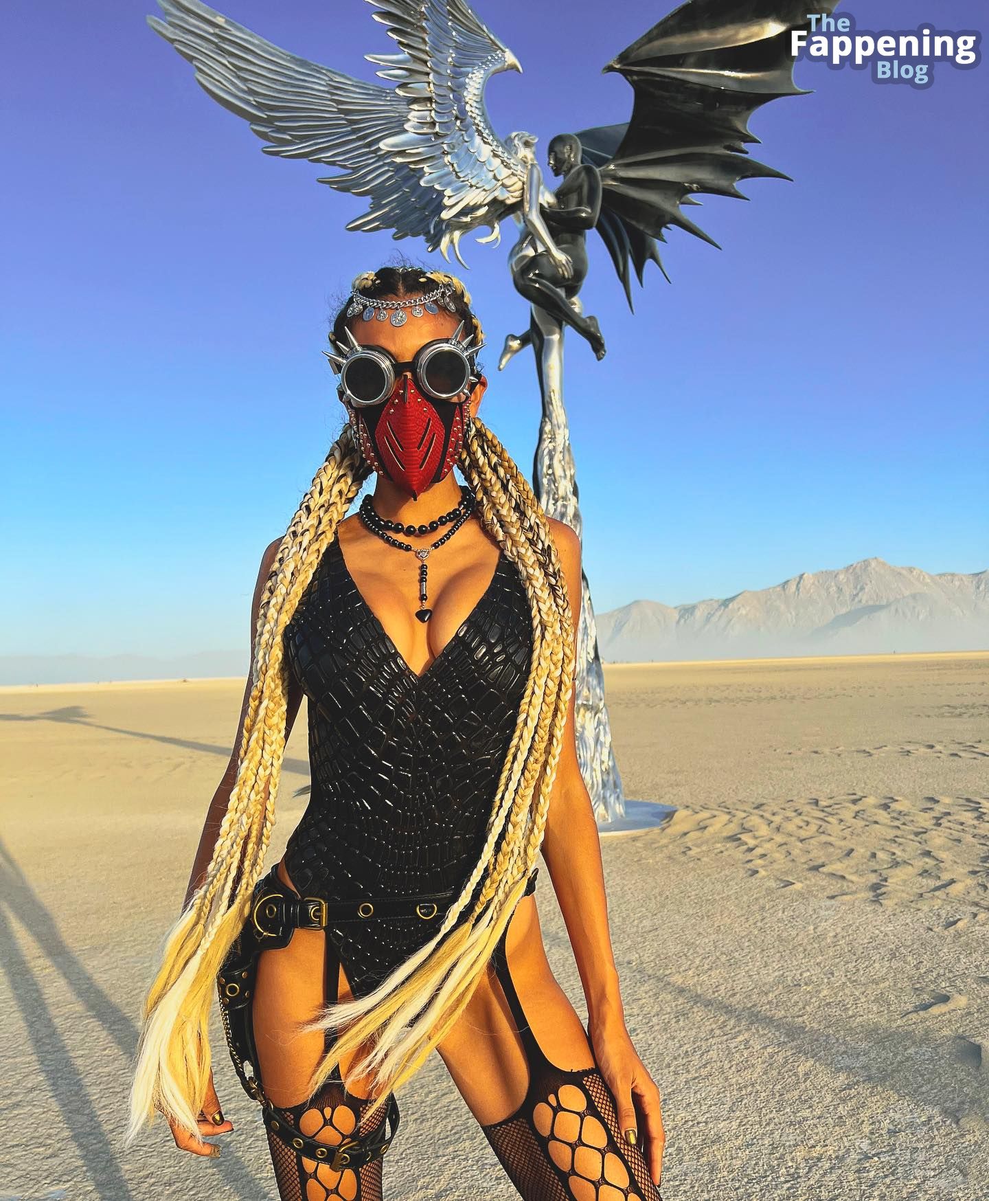 Confira as novas fotos incríveis do festival Burning Man com a rainha da moda Kelly Gale. Ela está aproveitando ao máximo essa famosa extravagância de arte e autoexpressão, e caramba, ela está arrasando com um estilo ousado e divertido. Kelly Gale não tem medo de mostrar um pouco de pele, posando topless com adesivos brilhantes em forma de estrela mal cobrindo seus seios.