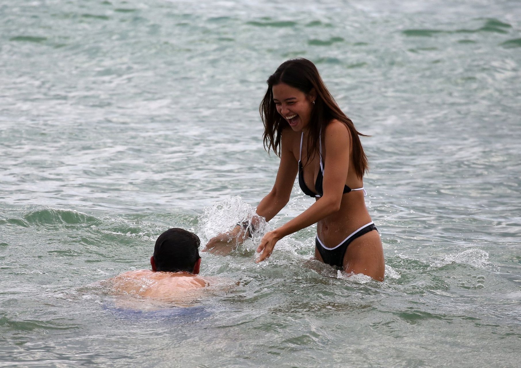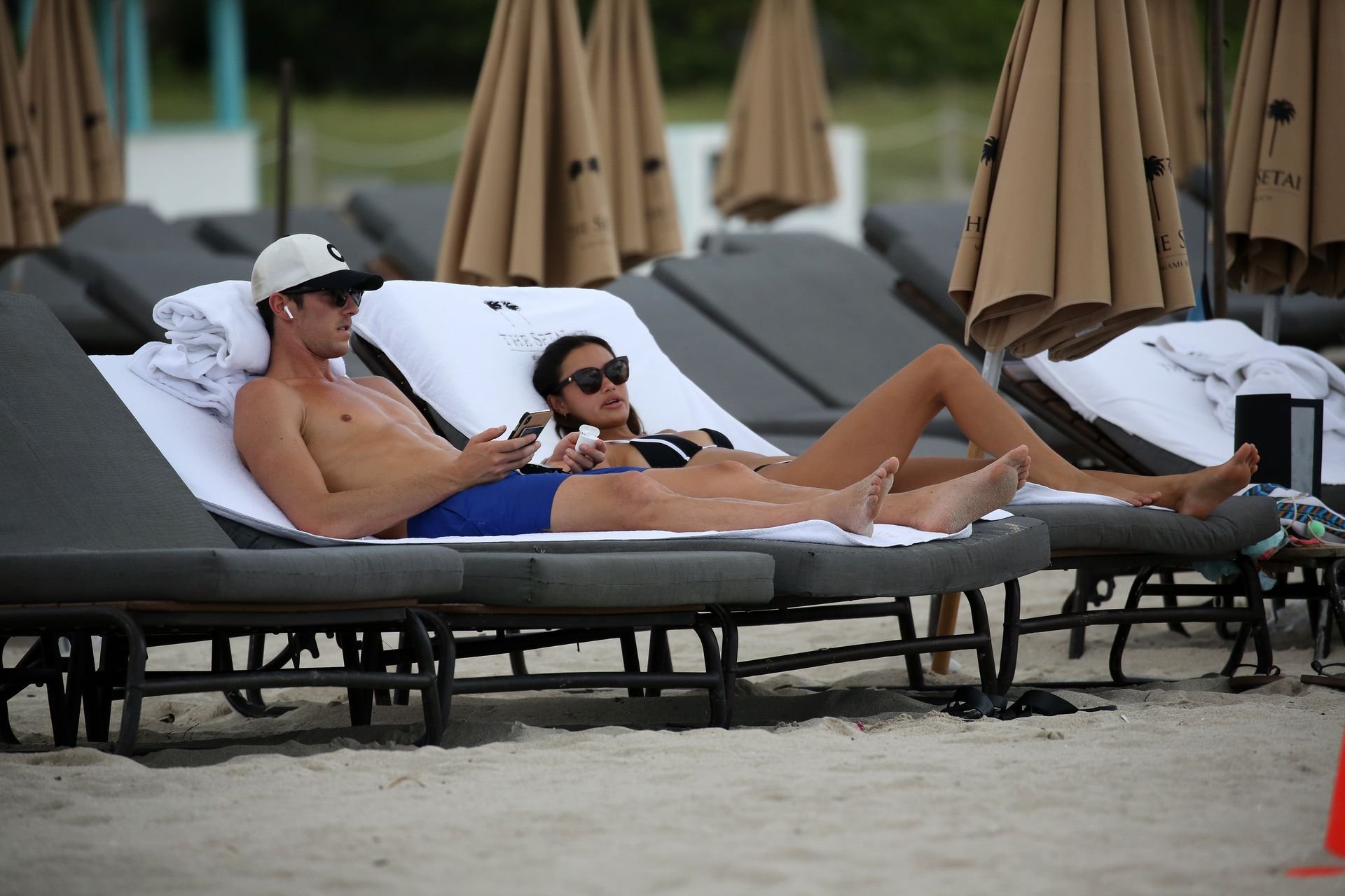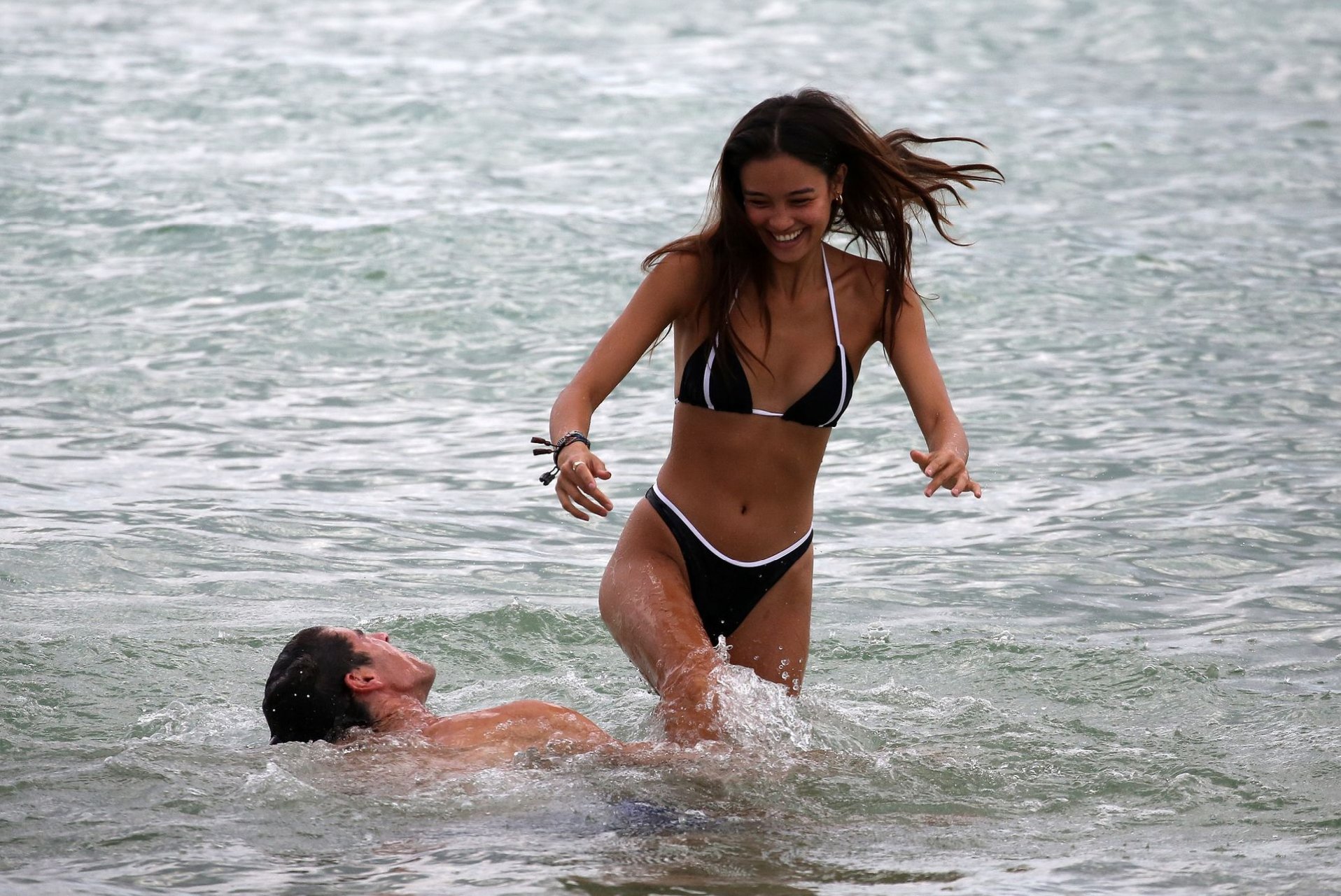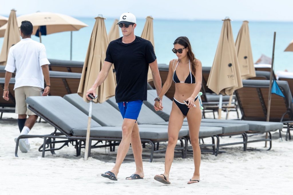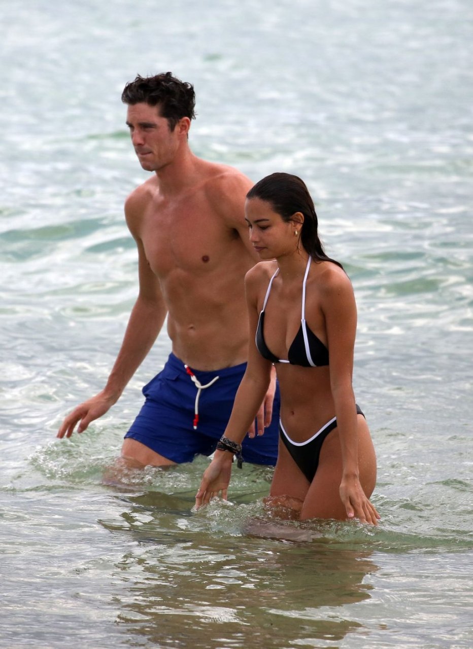 A modelo da Sports Illustrated Kelsey Merritt e seu namorado olímpico Conor Dwyer foram vistos juntos na praia em Miami, 14/05/2019. Kelsey Merritt exibiu seu corpo lindo enquanto bebia de um coco, quando foram vistos saindo da praia.