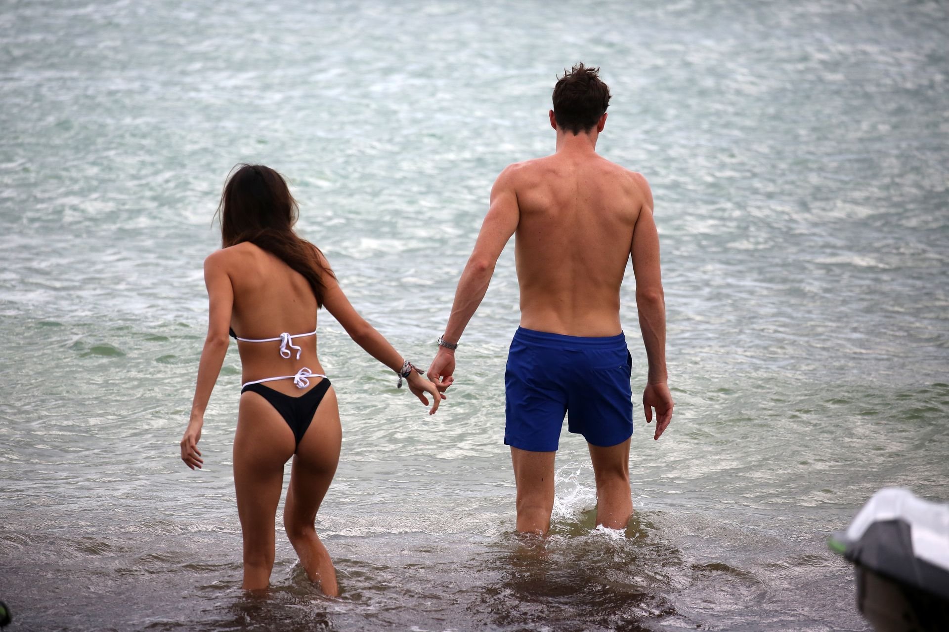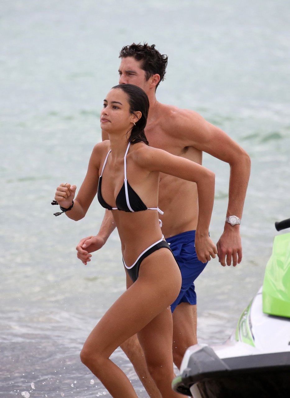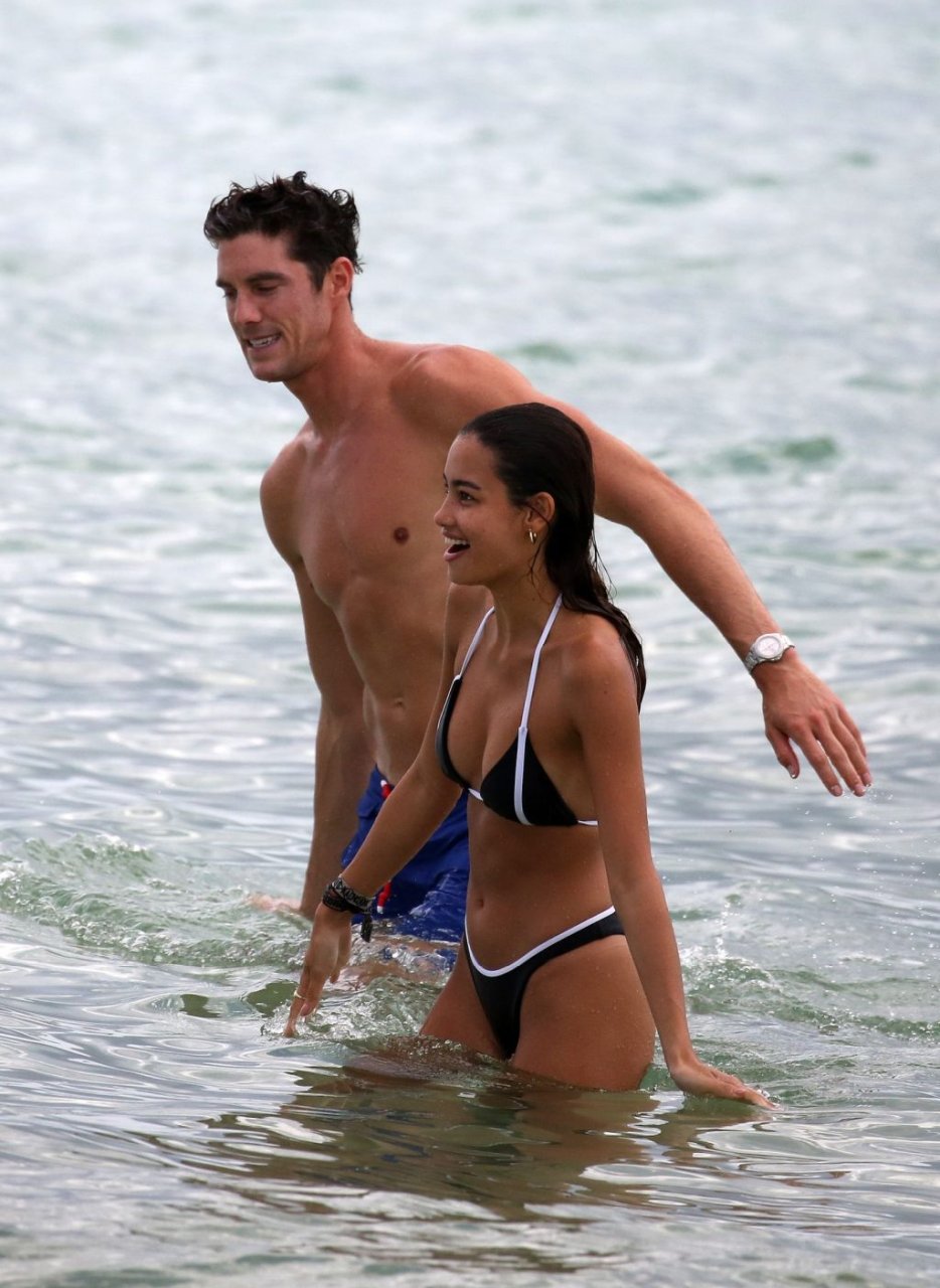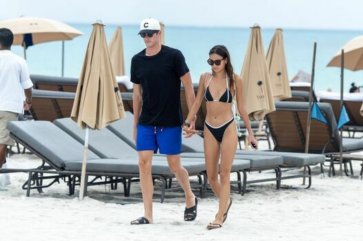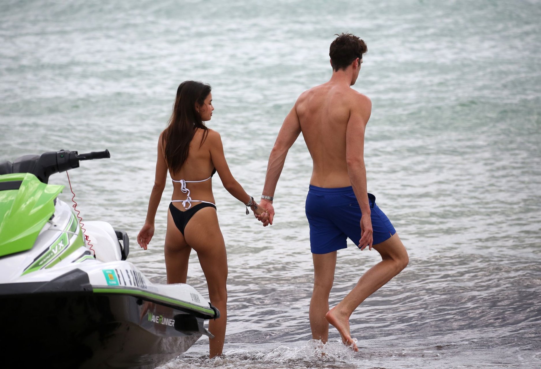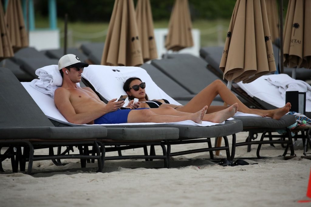 A modelo da Sports Illustrated Kelsey Merritt e seu namorado olímpico Conor Dwyer foram vistos juntos na praia em Miami, 14/05/2019. Kelsey Merritt exibiu seu corpo lindo enquanto bebia de um coco, quando foram vistos saindo da praia.