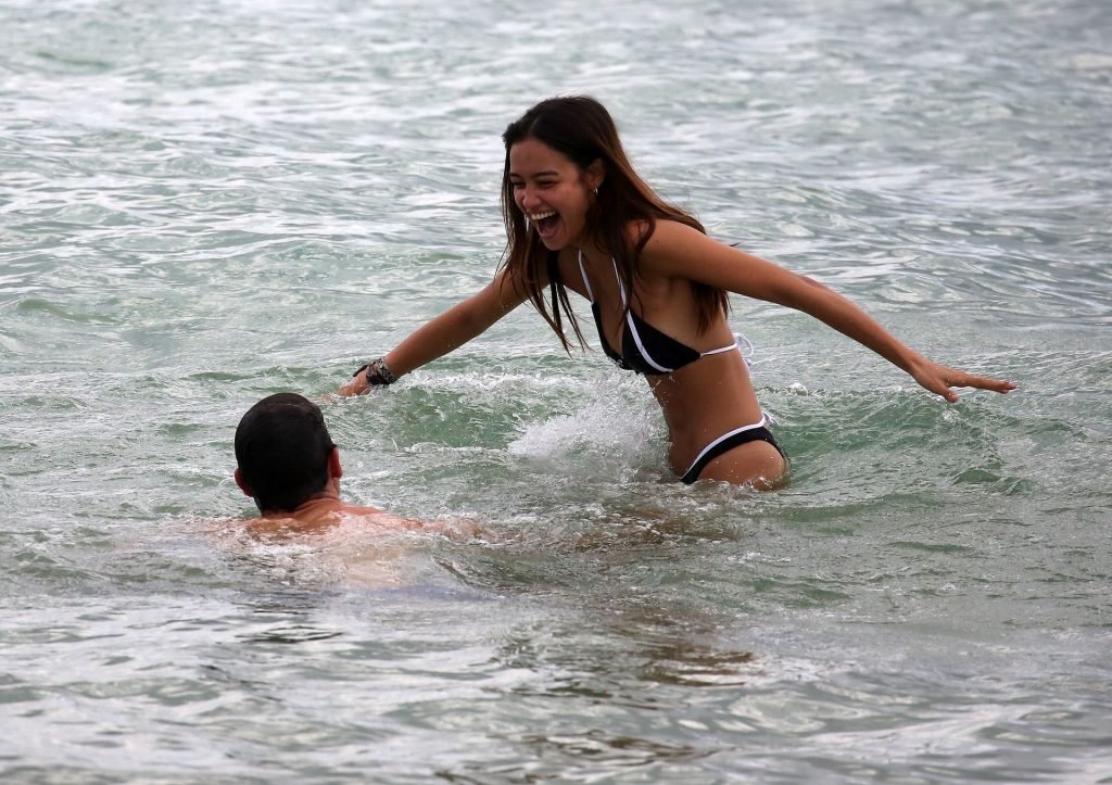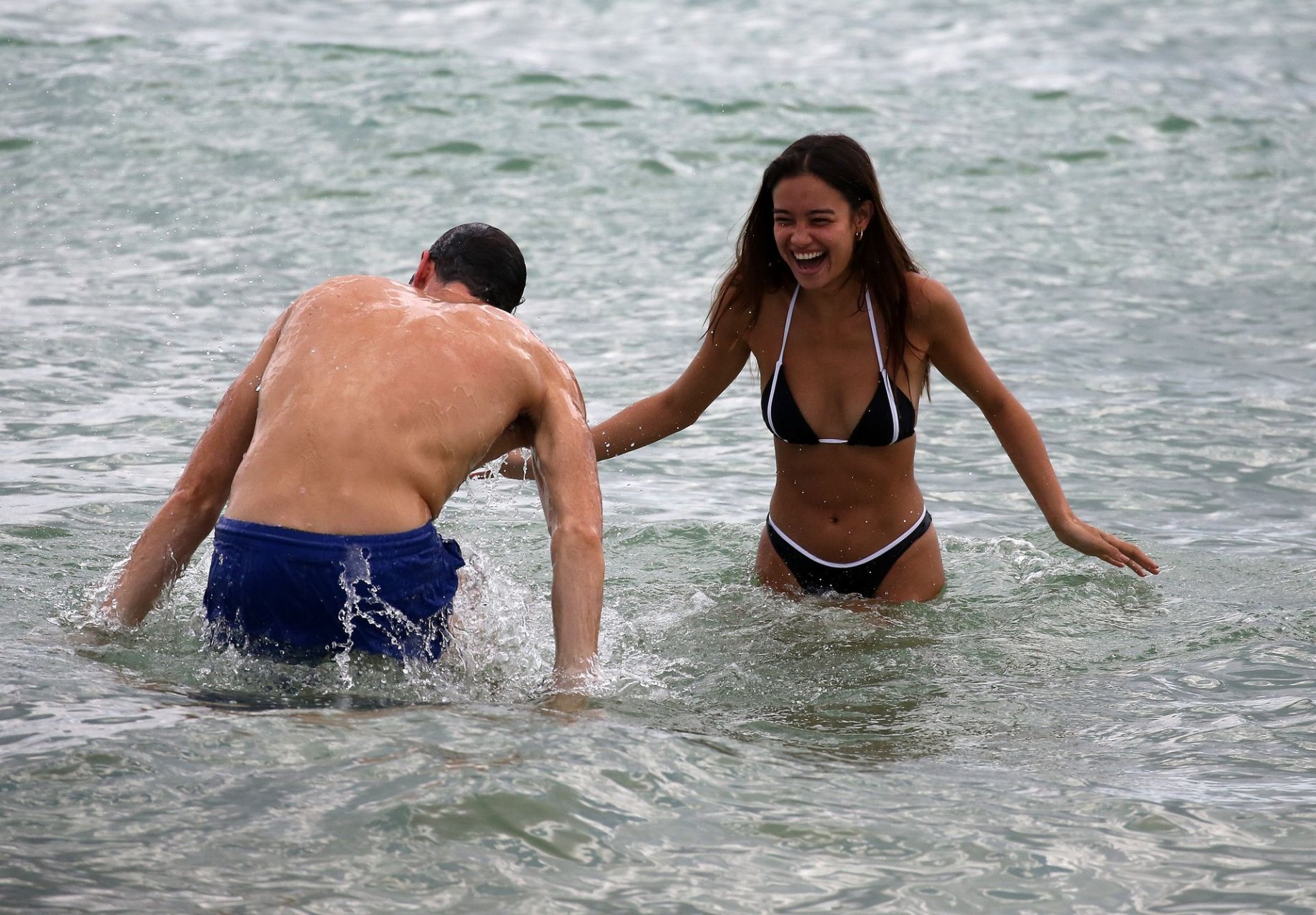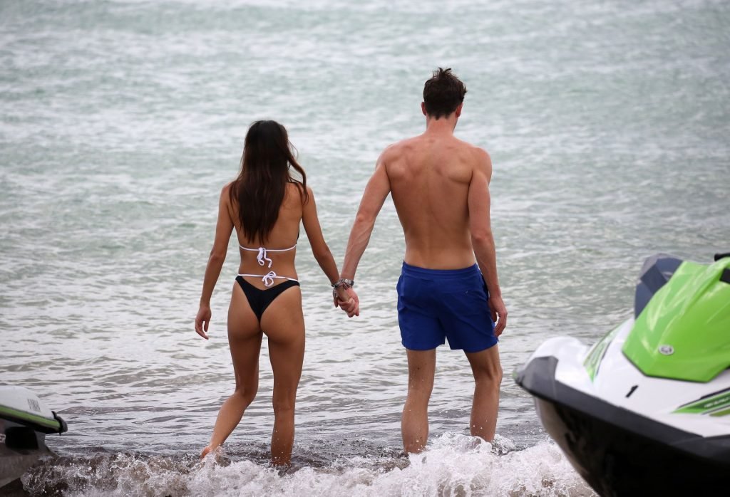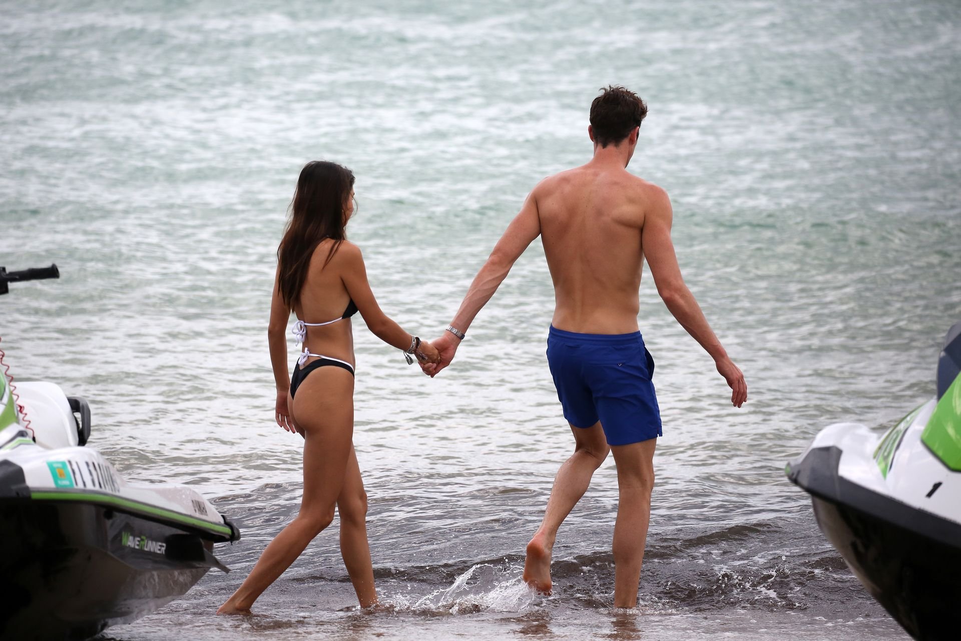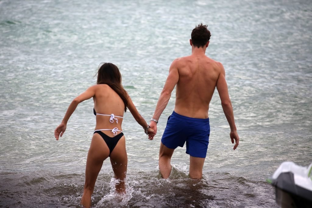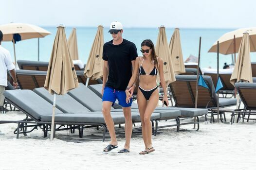 A modelo da Sports Illustrated Kelsey Merritt e seu namorado olímpico Conor Dwyer foram vistos juntos na praia em Miami, 14/05/2019. Kelsey Merritt exibiu seu corpo lindo enquanto bebia de um coco, quando foram vistos saindo da praia.