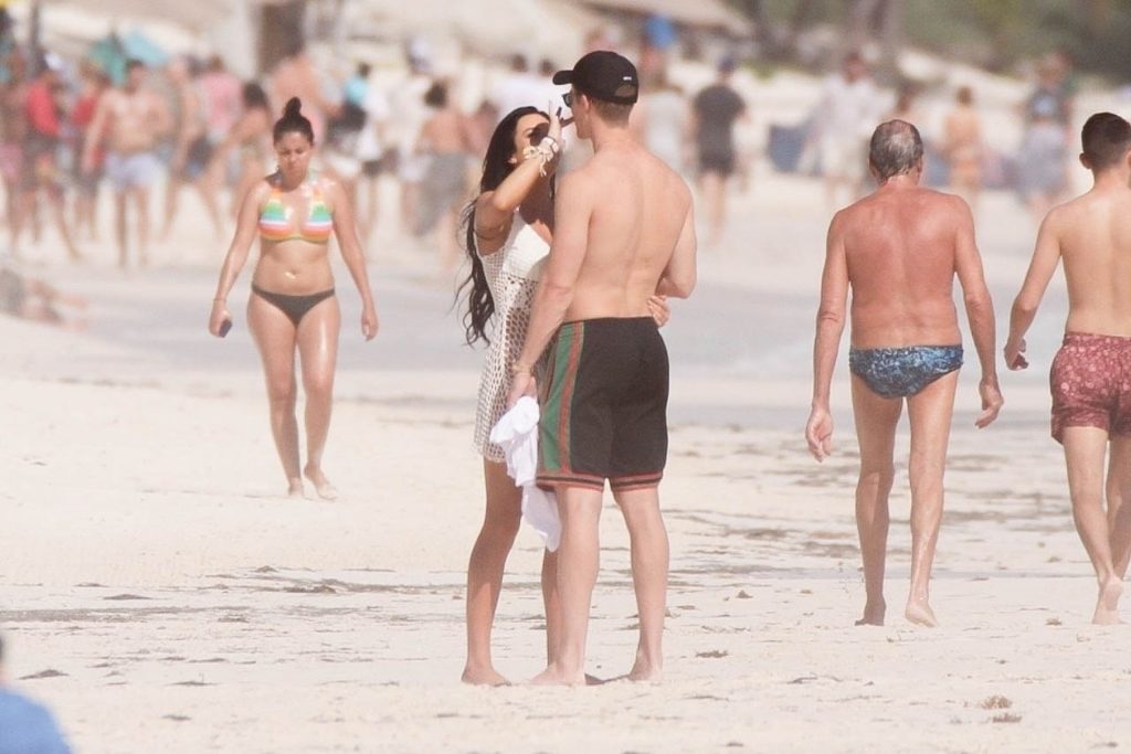 A modelo internacional não teve medo de se sujar na areia, sendo vista com coque de areia enquanto faz várias poses sensuais. Kelsie mantém o clima sexy fora das câmeras, sendo vista demonstrando afeto público a um jovem bonito entre as sessões.