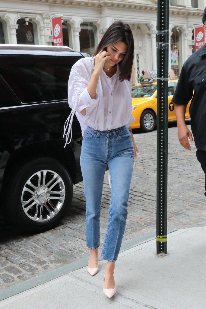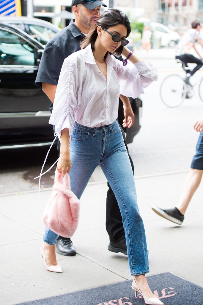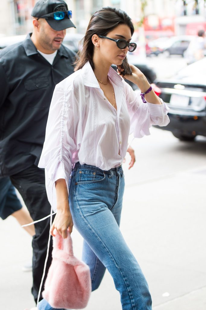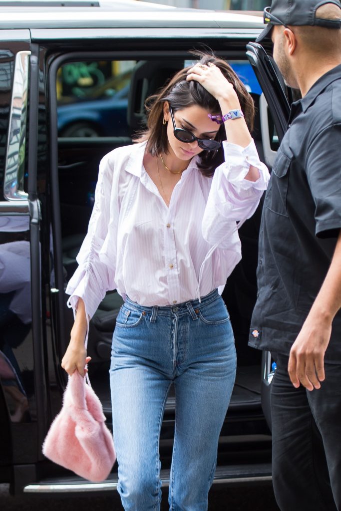Modelo Kendall Jenner sem sutiã com Hailey Baldwin vista em Nova York, 29/07/2017.