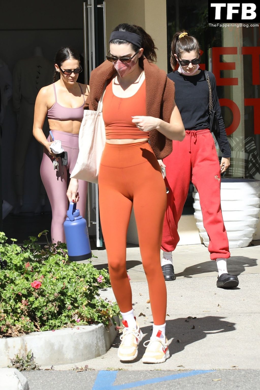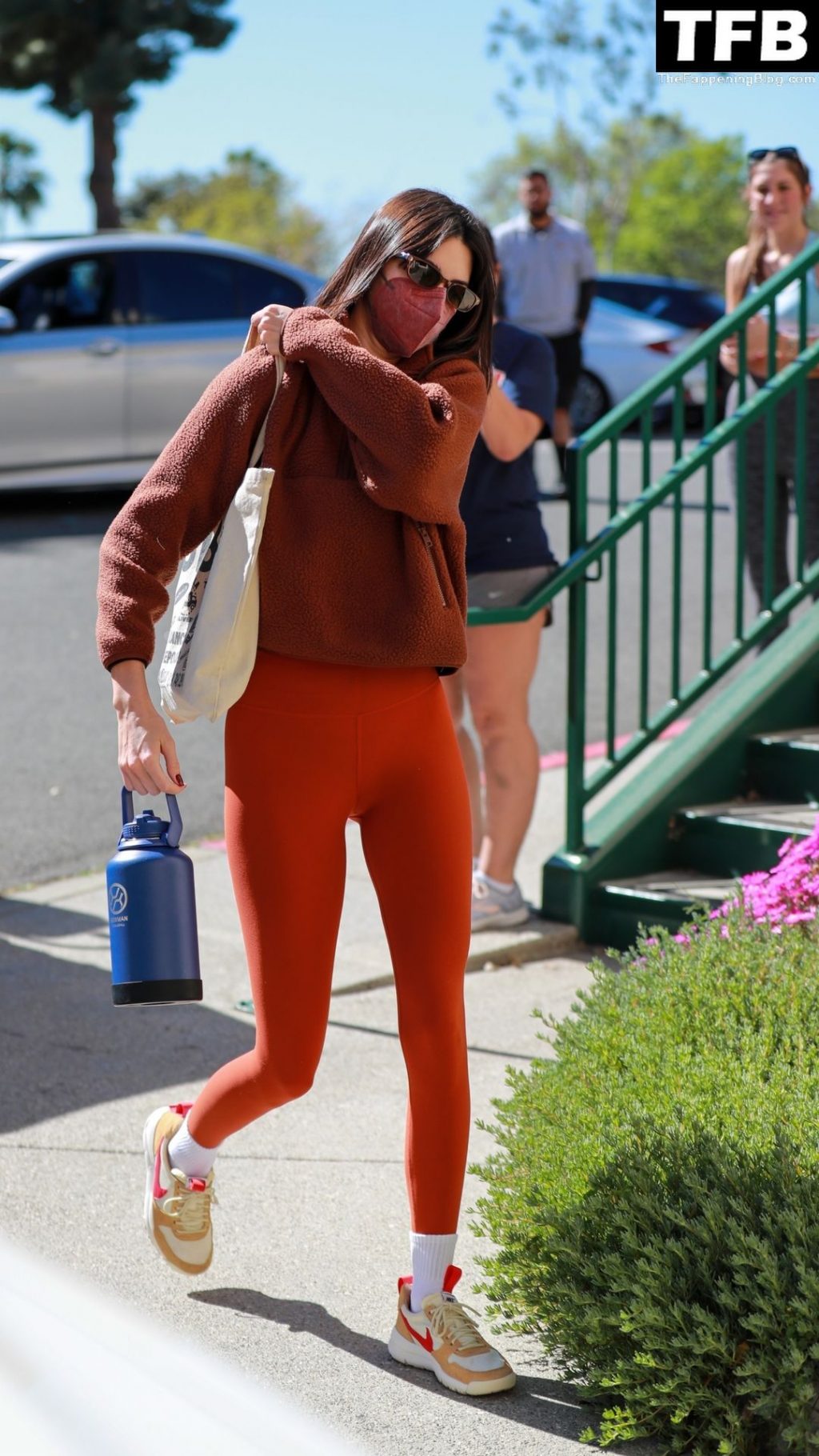 Supermodelo Kendall Jenner está cuidando de sua forma física ao chegar em sua aula diária de Pilates em West Hollywood, 17/02/2022.