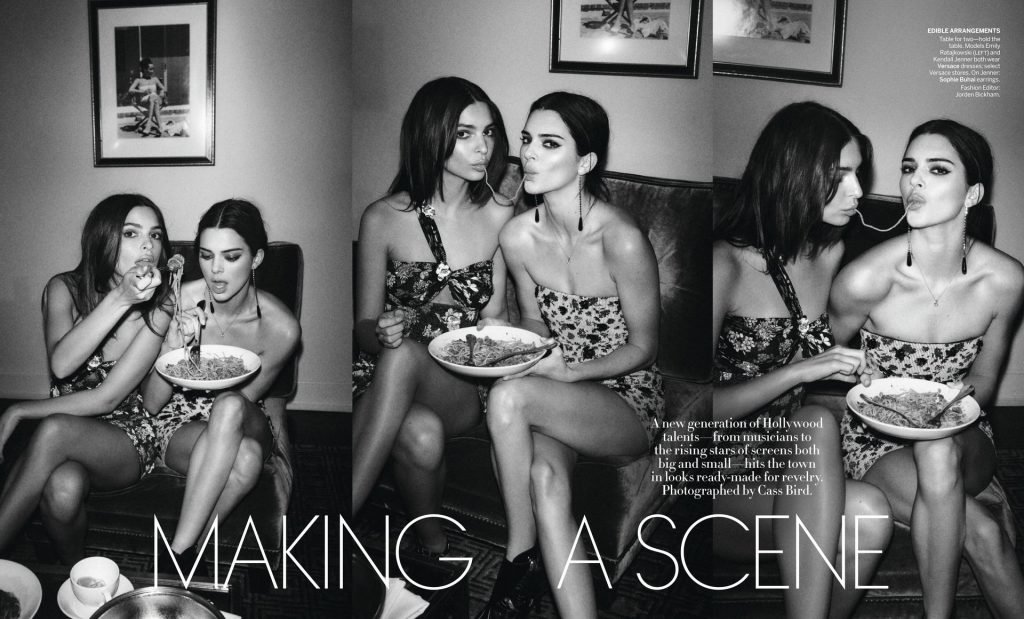 Famosas modelos Kendall Jenner, Emily Ratajkowski, e uma nova geração de estrelas de Hollywood (The Fappening), Imaan Hammam e Grace Hartzel estão em um ensaio fotográfico por Cass Bird para a Vogue (março de 2019).