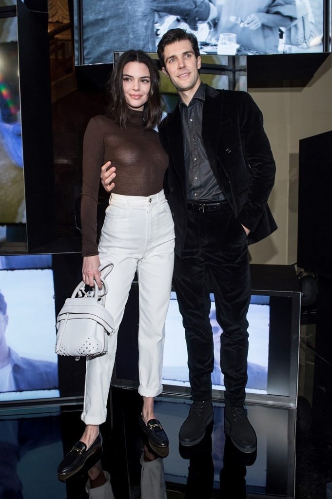 Kendall Jenner sem sutiã participa da festa de lançamento da campanha Primavera 2018 da Tod’s em Milão, 14/01/2018. Kendall Nicole Jenner é uma modelo de moda americana e personalidade de televisão. Idade – 22.