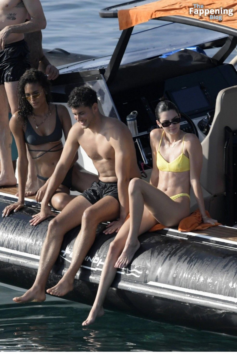 Shanina Shaik, Cindy Bruno e Riley Montana relaxam com ela. Paparazzi fotografaram as garotas em um barco, com alguns rapazes junto para o passeio. Elas nadaram, pularam do convés e trocaram fotos em seus celulares, todas sorrindo.