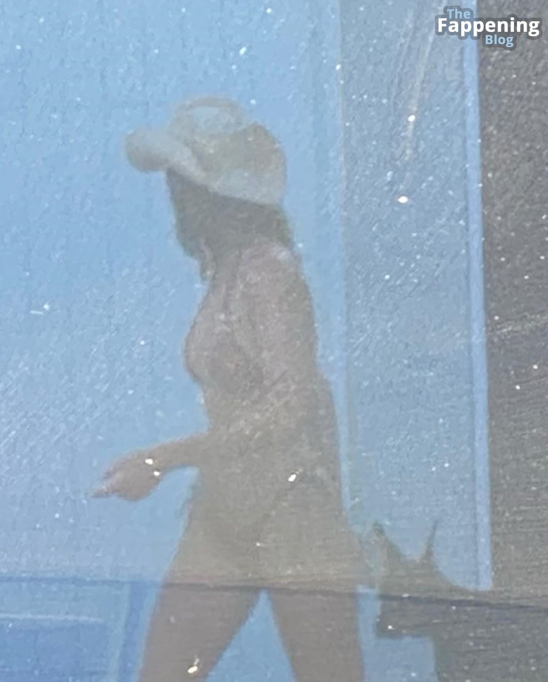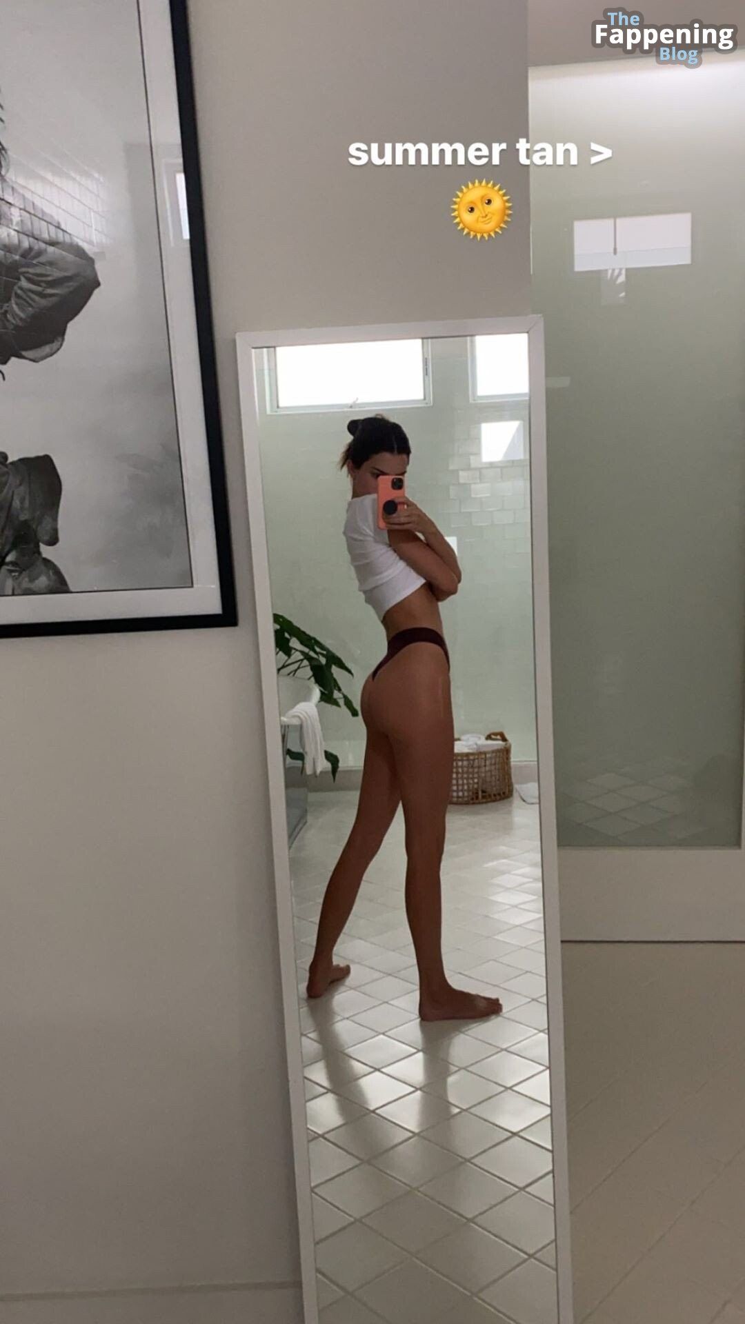 Além disso, o público dos micro-biquínis teve um vislumbre do seu estilo – cintura fina, pernas longas, um decote sexy – Kendall está pronta para o verão. Ela completa o visual de praia com um chapéu de palha com bordas enroladas.