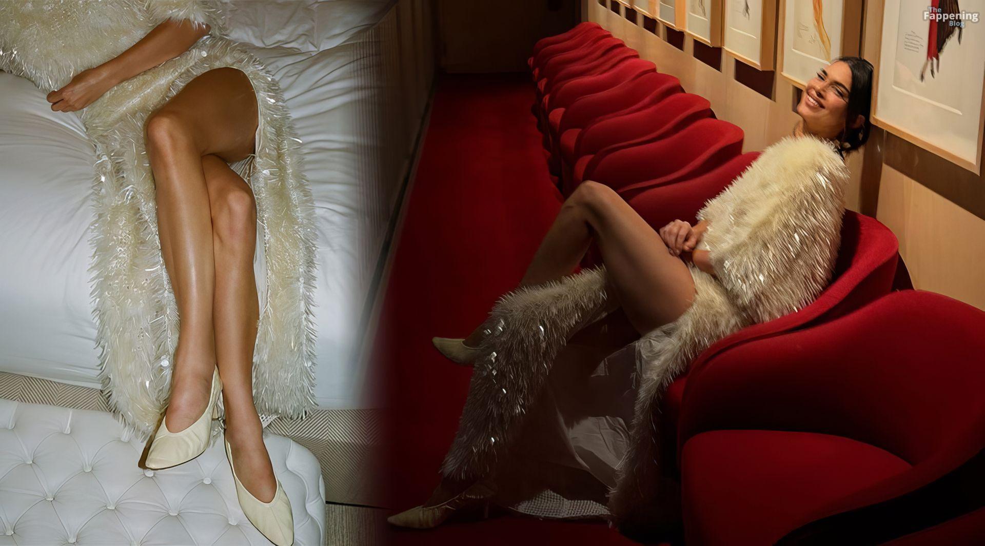 Kendall Jenner posa com um vestido luxuoso de fenda alta, mostrando suas pernas elegantes. A lente de Adrian Martin captura seu novo ensaio sexy.