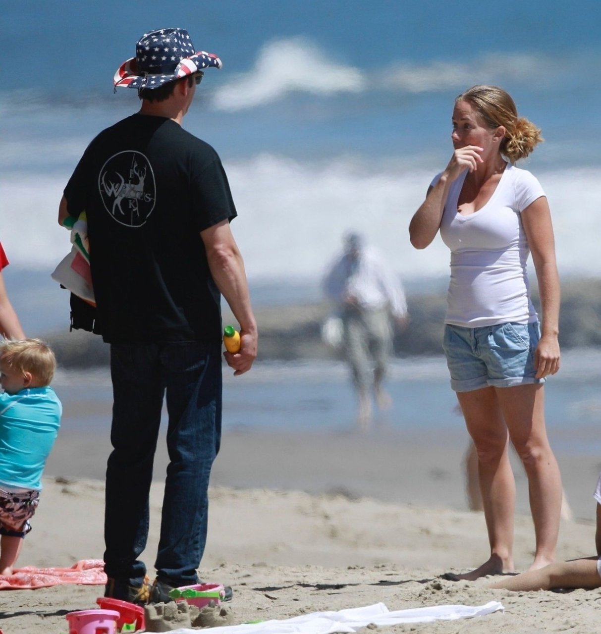 Kendra Wilkinson leva seus filhos, Alijah Mary Baskett e Hank Baskett IV, para a Praia de Santa Monica enquanto o clima começa a esquentar no Sul da Califórnia, 18/04/2019. A ex-modelo voluptuosa e personalidade da TV se diverte na areia ao lado de seus filhos.