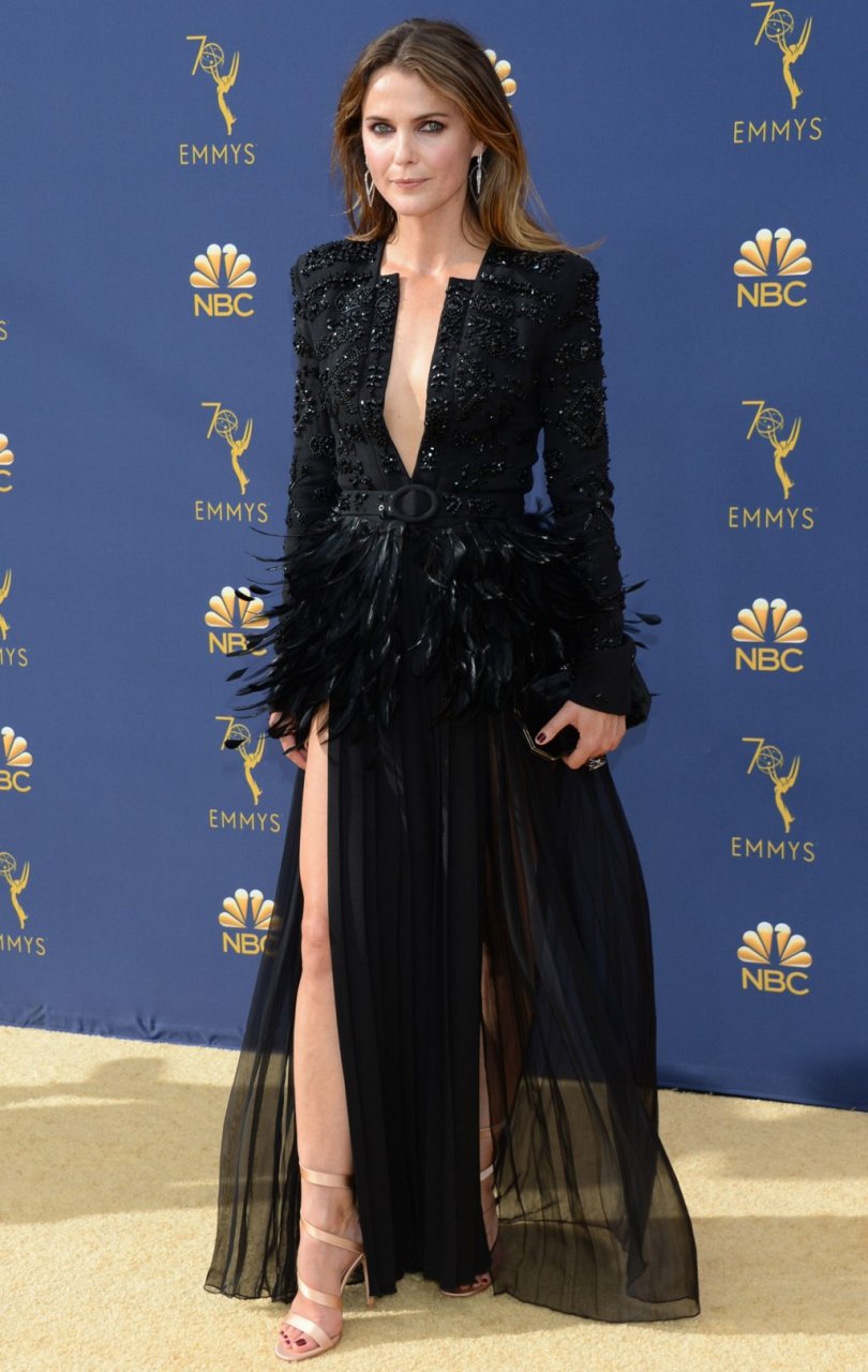 Keri Russell sem sutiã comparece ao 70º Prêmio Emmy de Prime Time no Microsoft Theater em Los Angeles, 17/09/2018. A atriz americana de 42 anos exibiu suas pernas deslumbrantes e teve um deslize de seio.
