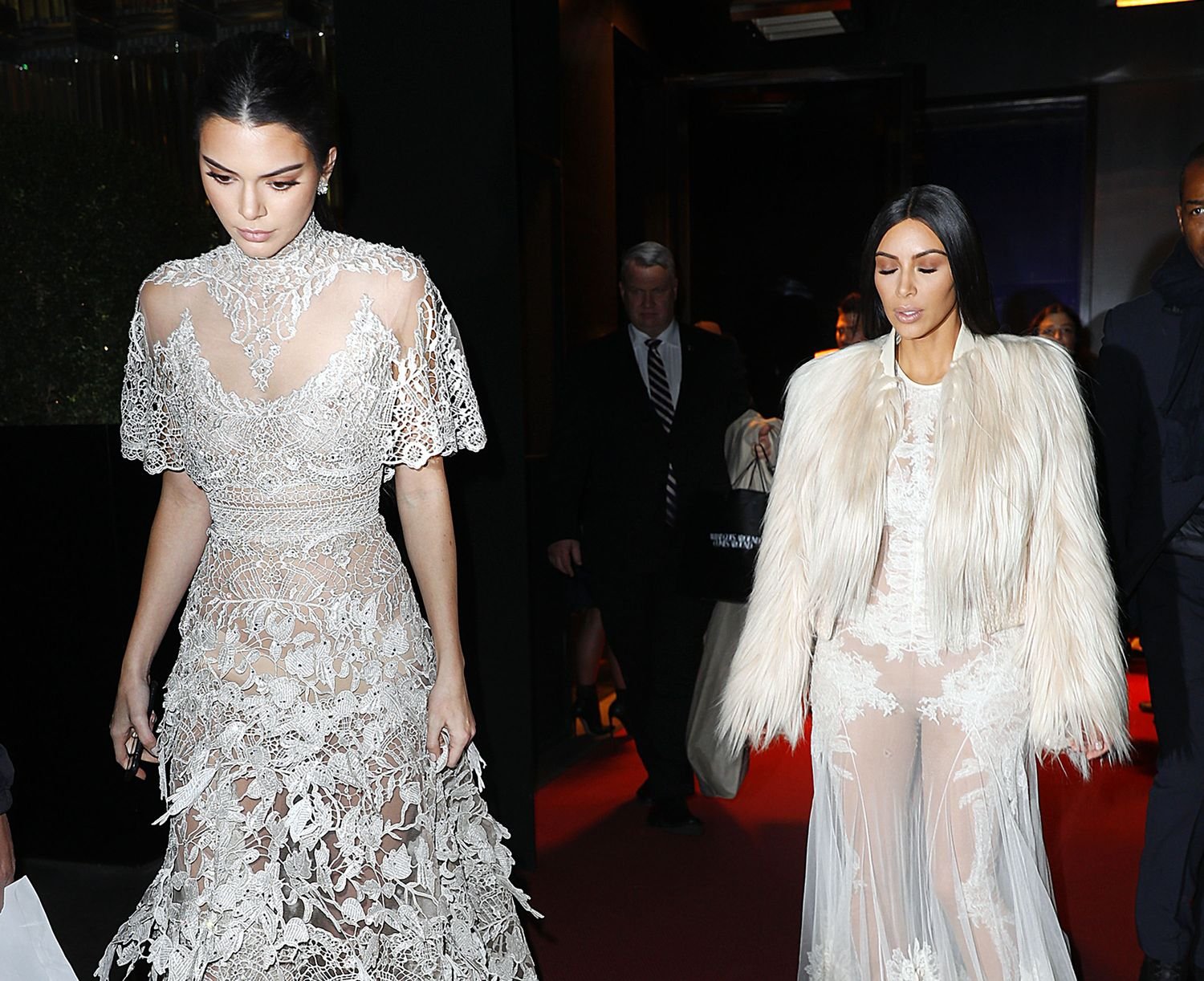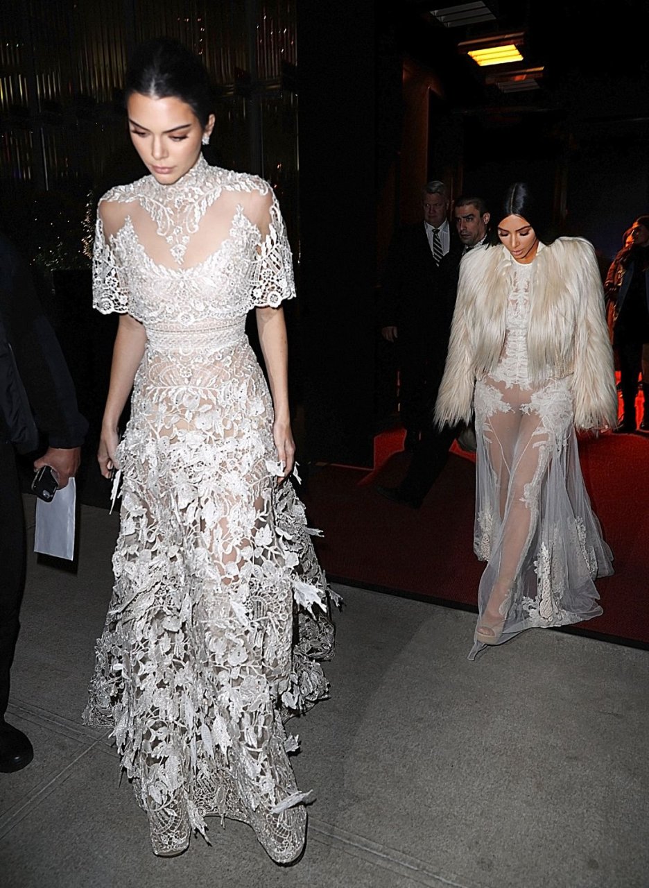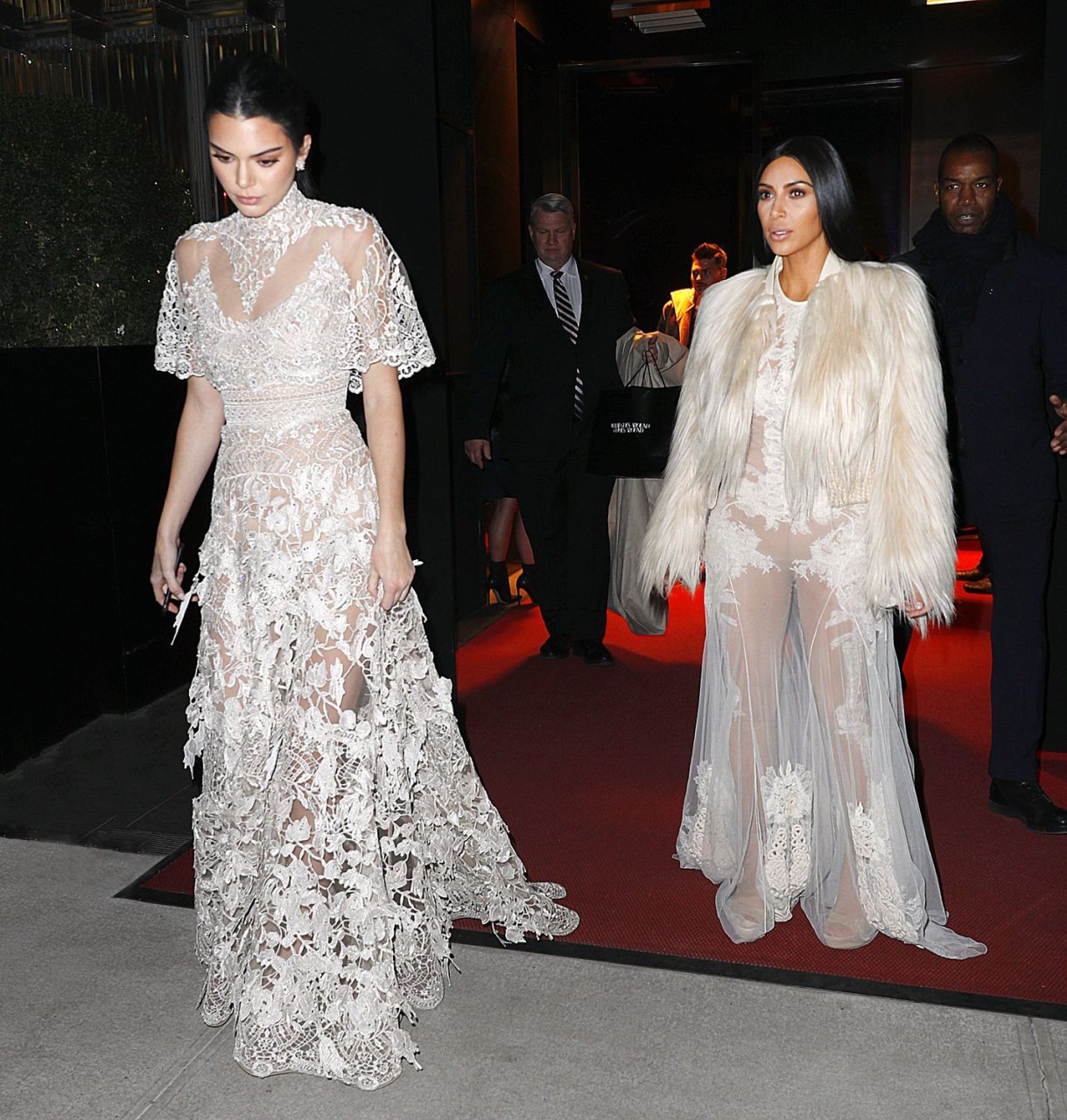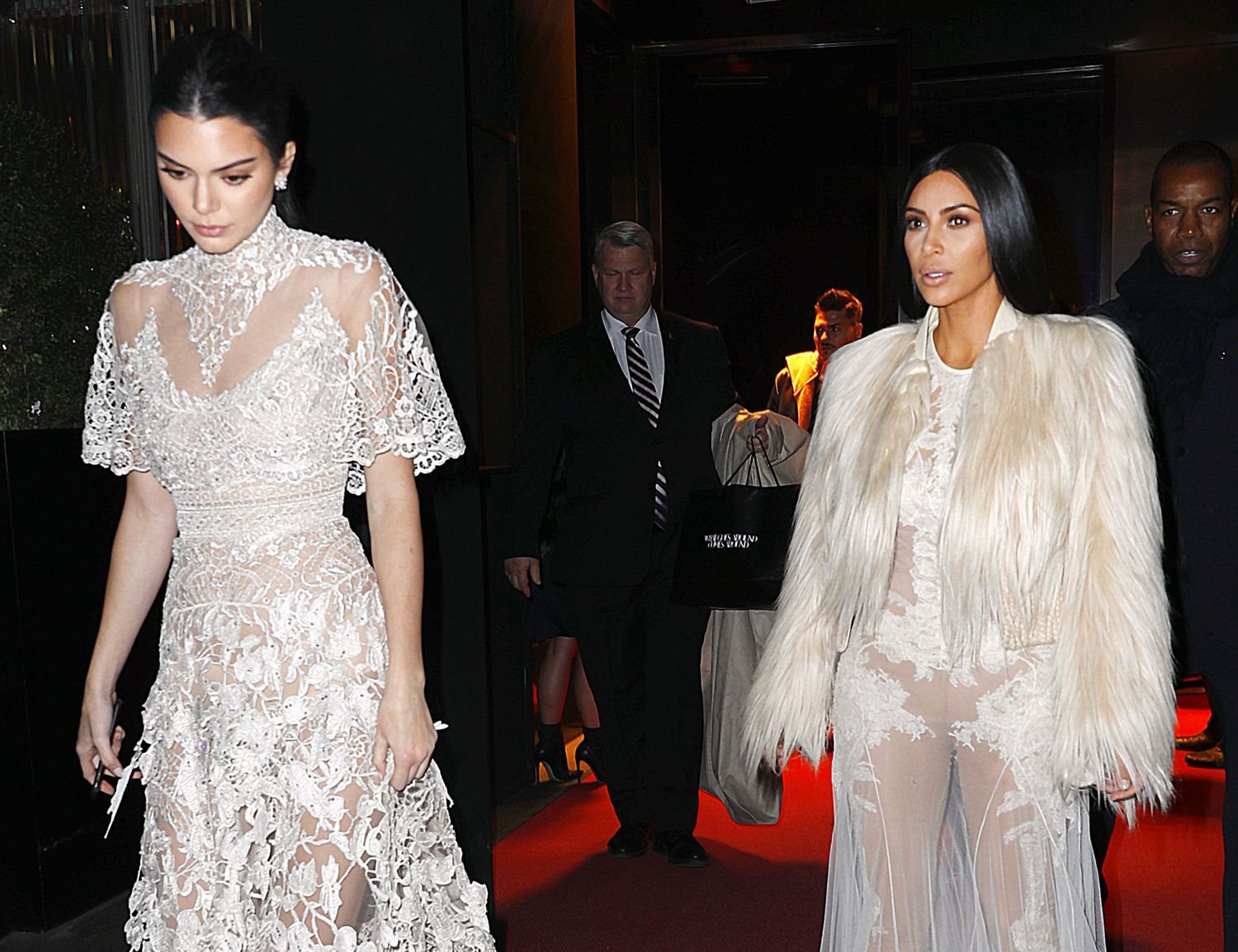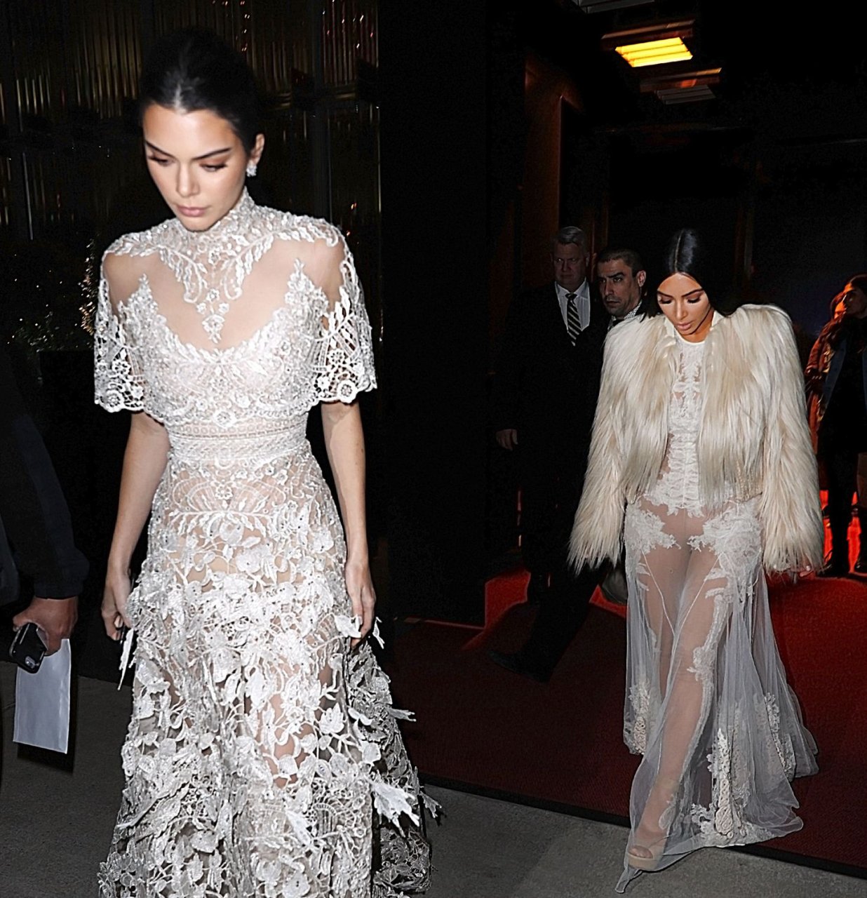 Kim Kardashian e Kendall Jenner estão lindas em vestidos brancos transparentes enquanto saem em NYC após as filmagens de ‘Ocean’s Eight’, 16/01/2017.