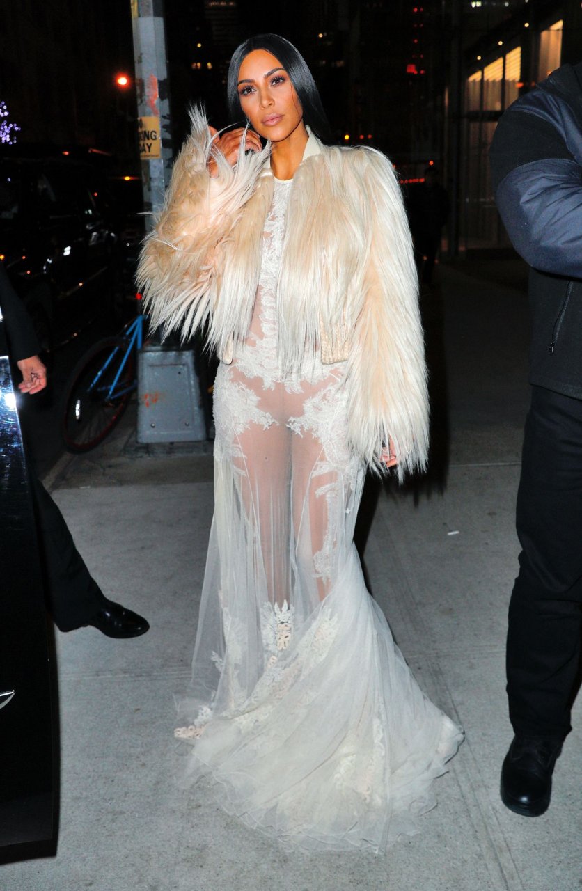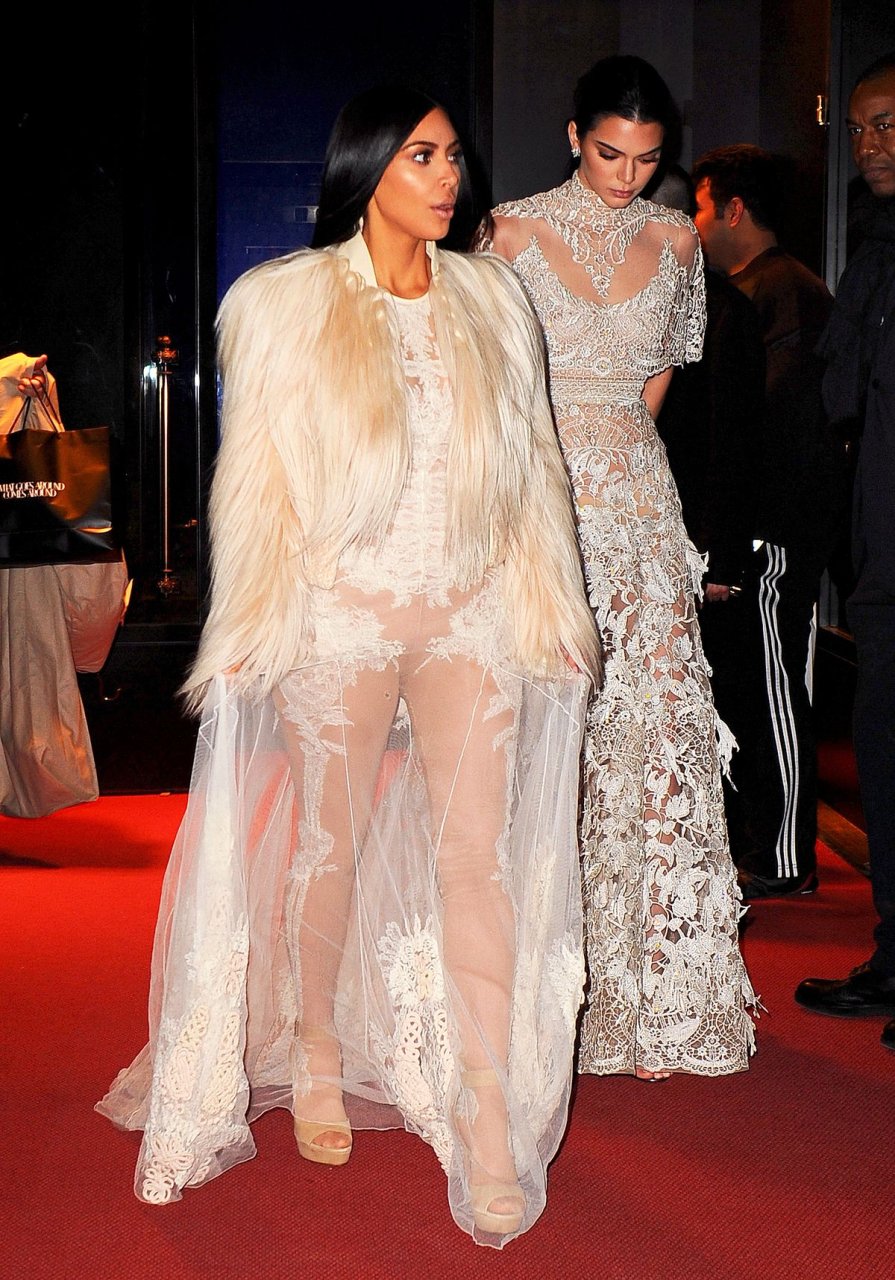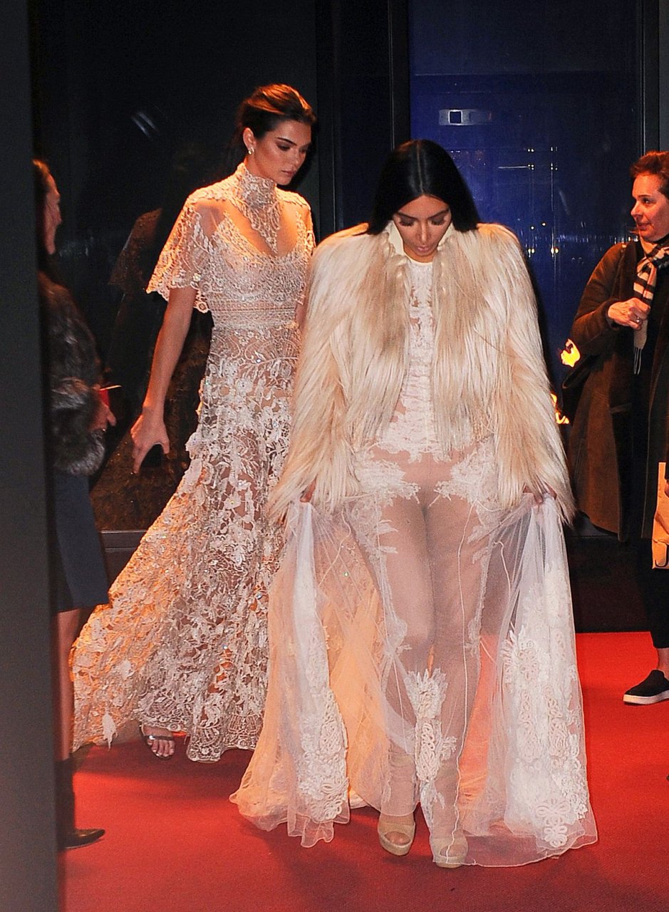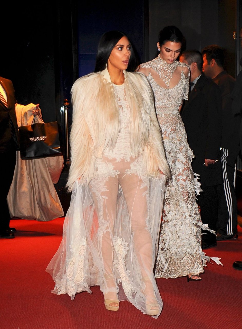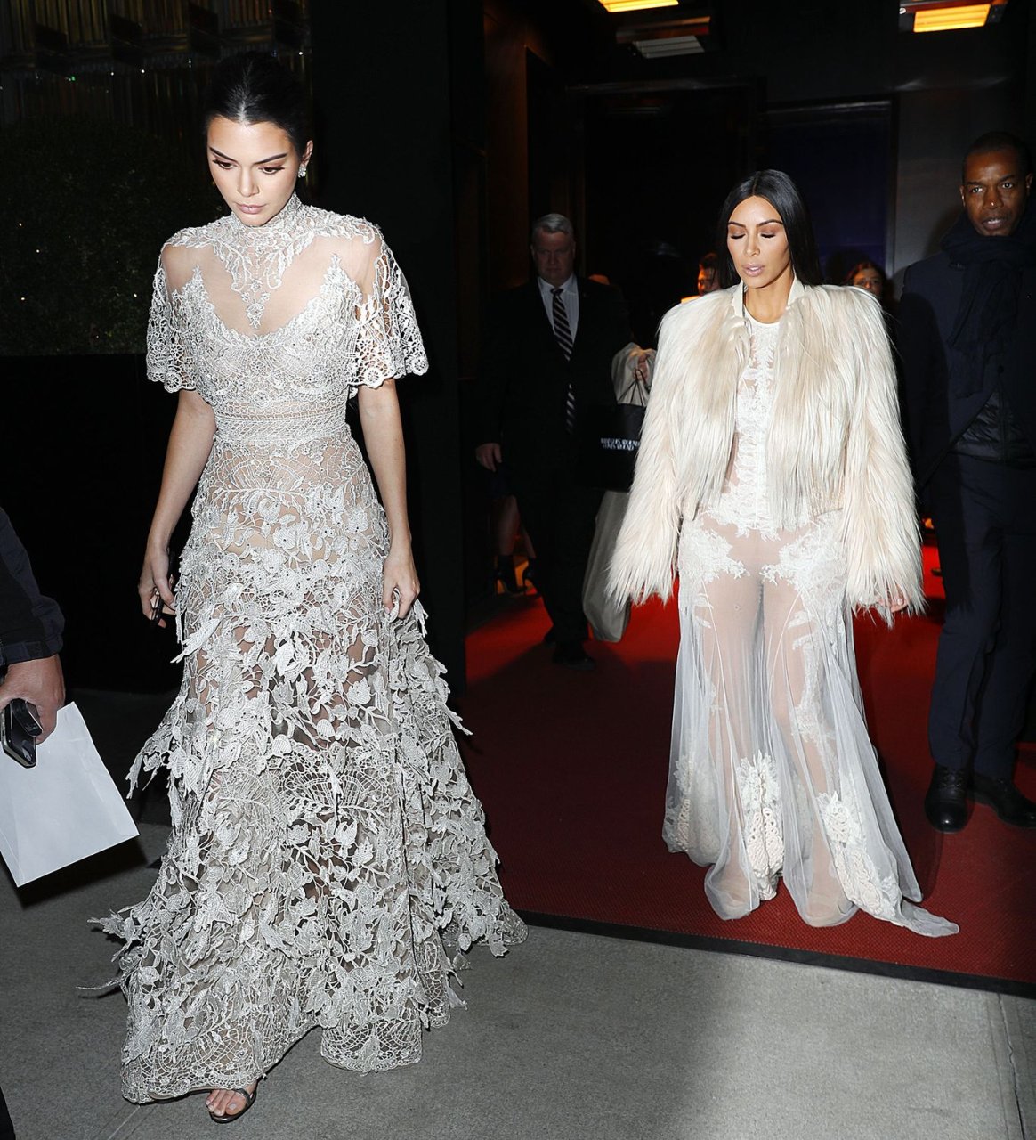 Kim Kardashian e Kendall Jenner estão lindas em vestidos brancos transparentes enquanto saem em NYC após as filmagens de ‘Ocean’s Eight’, 16/01/2017.