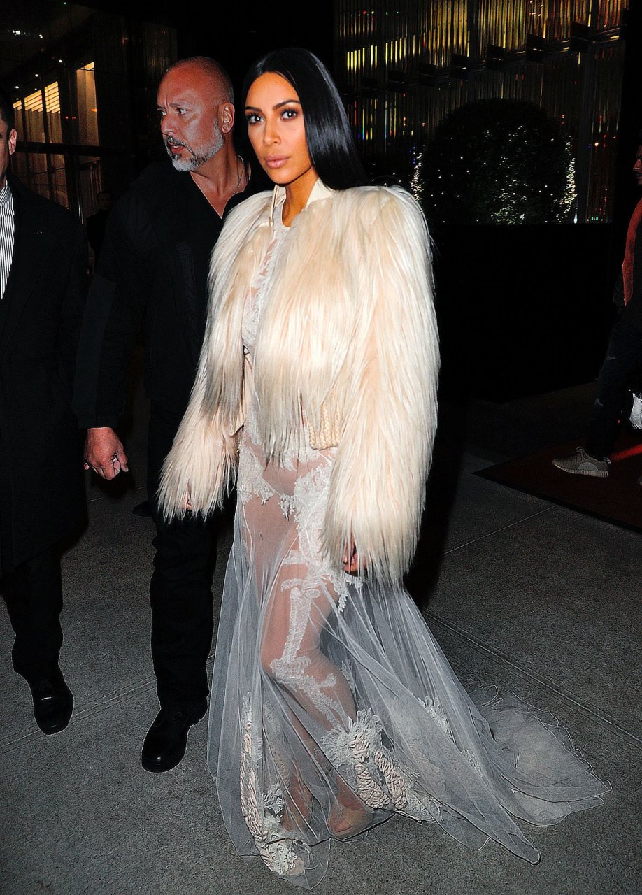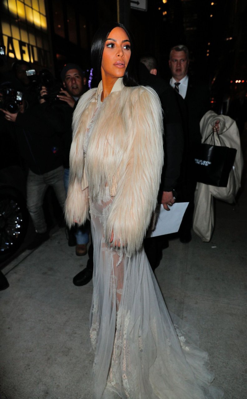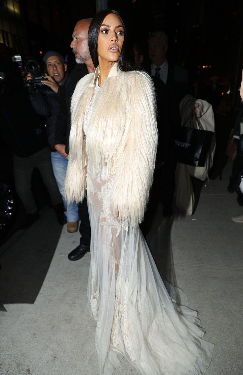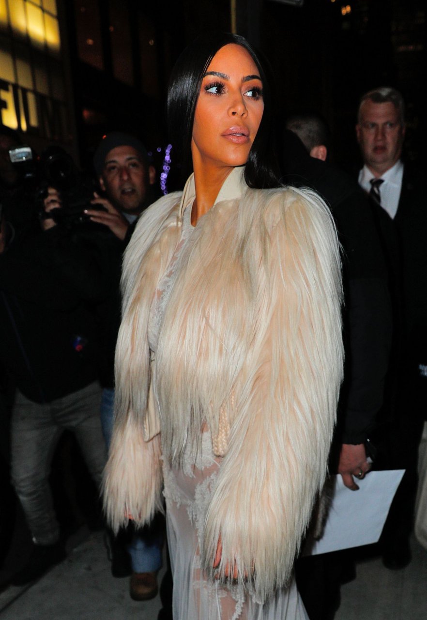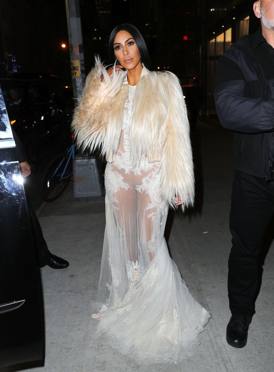 Kim Kardashian e Kendall Jenner estão lindas em vestidos brancos transparentes enquanto saem em NYC após as filmagens de ‘Ocean’s Eight’, 16/01/2017.