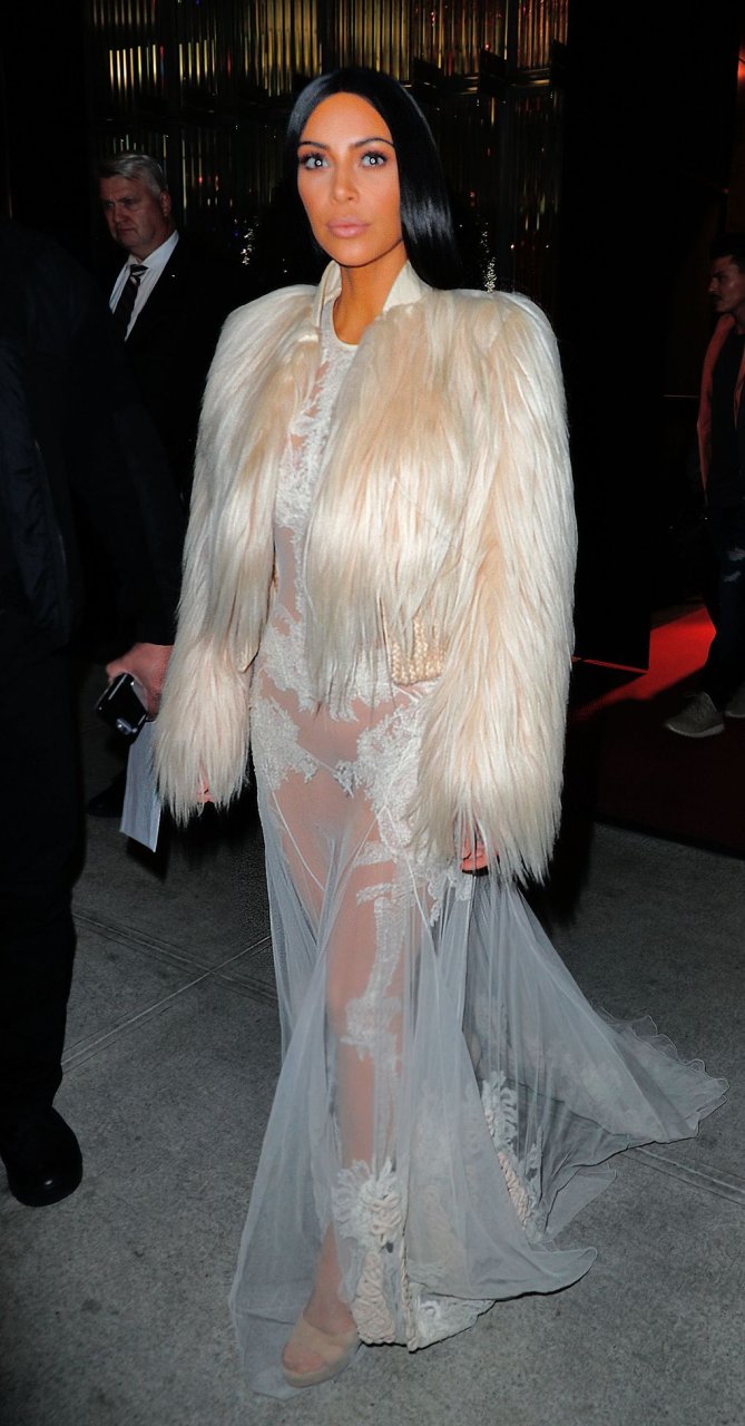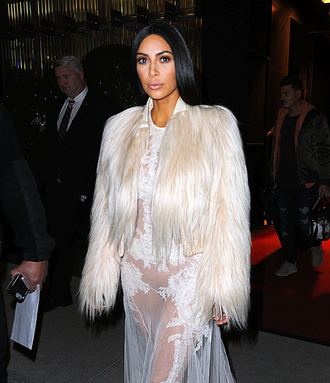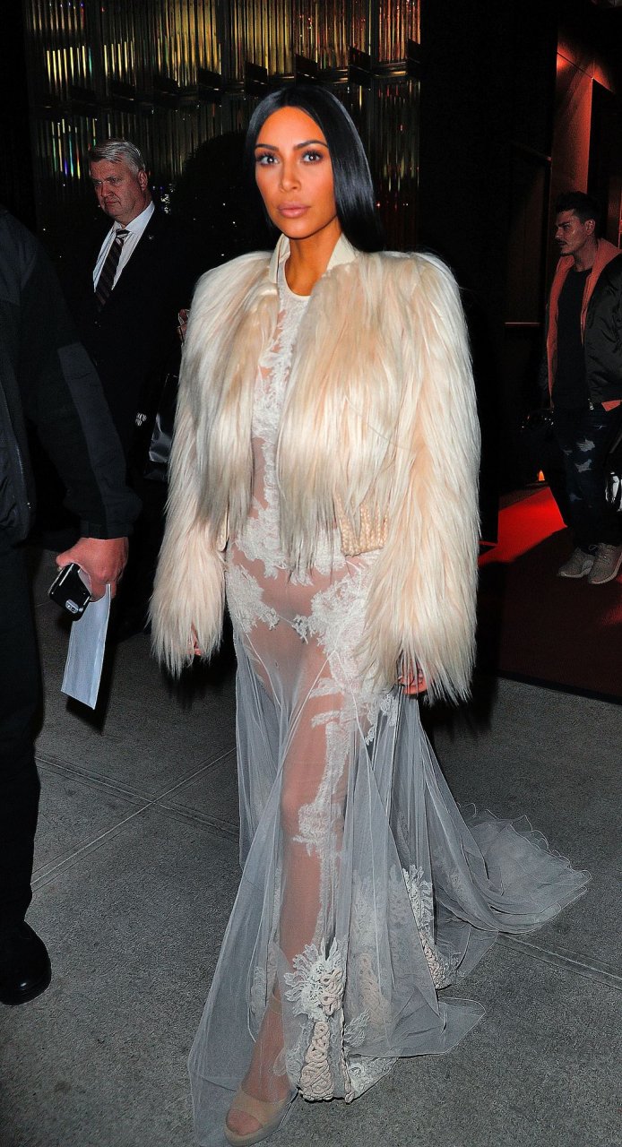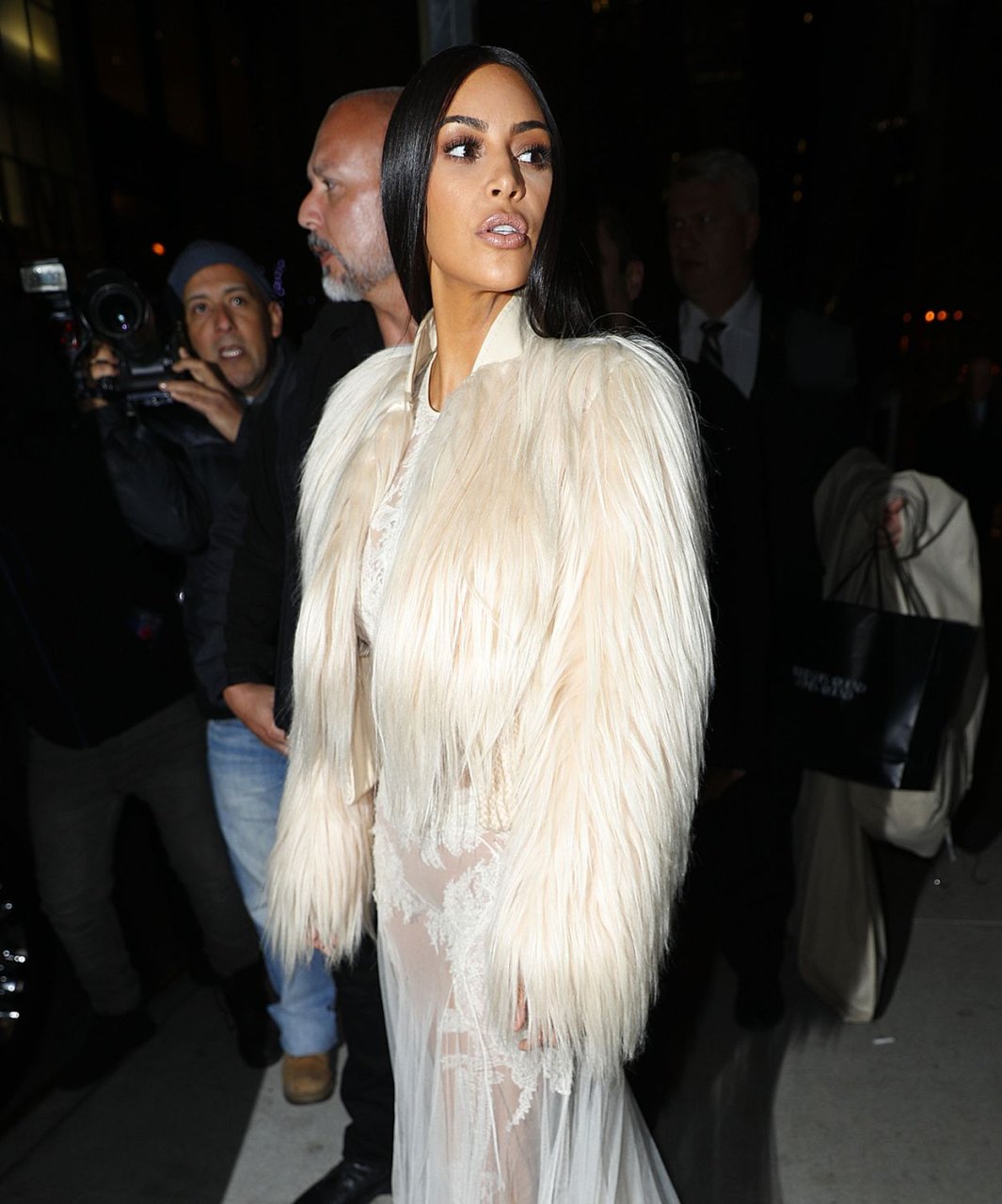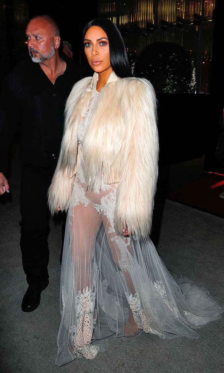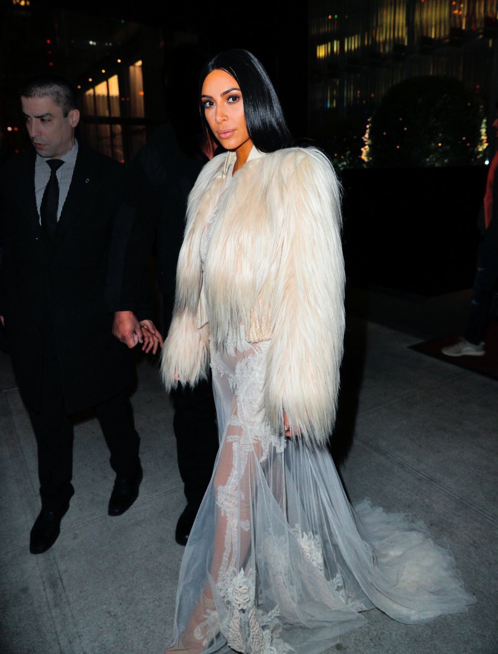 Kim Kardashian e Kendall Jenner estão lindas em vestidos brancos transparentes enquanto saem em NYC após as filmagens de ‘Ocean’s Eight’, 16/01/2017.