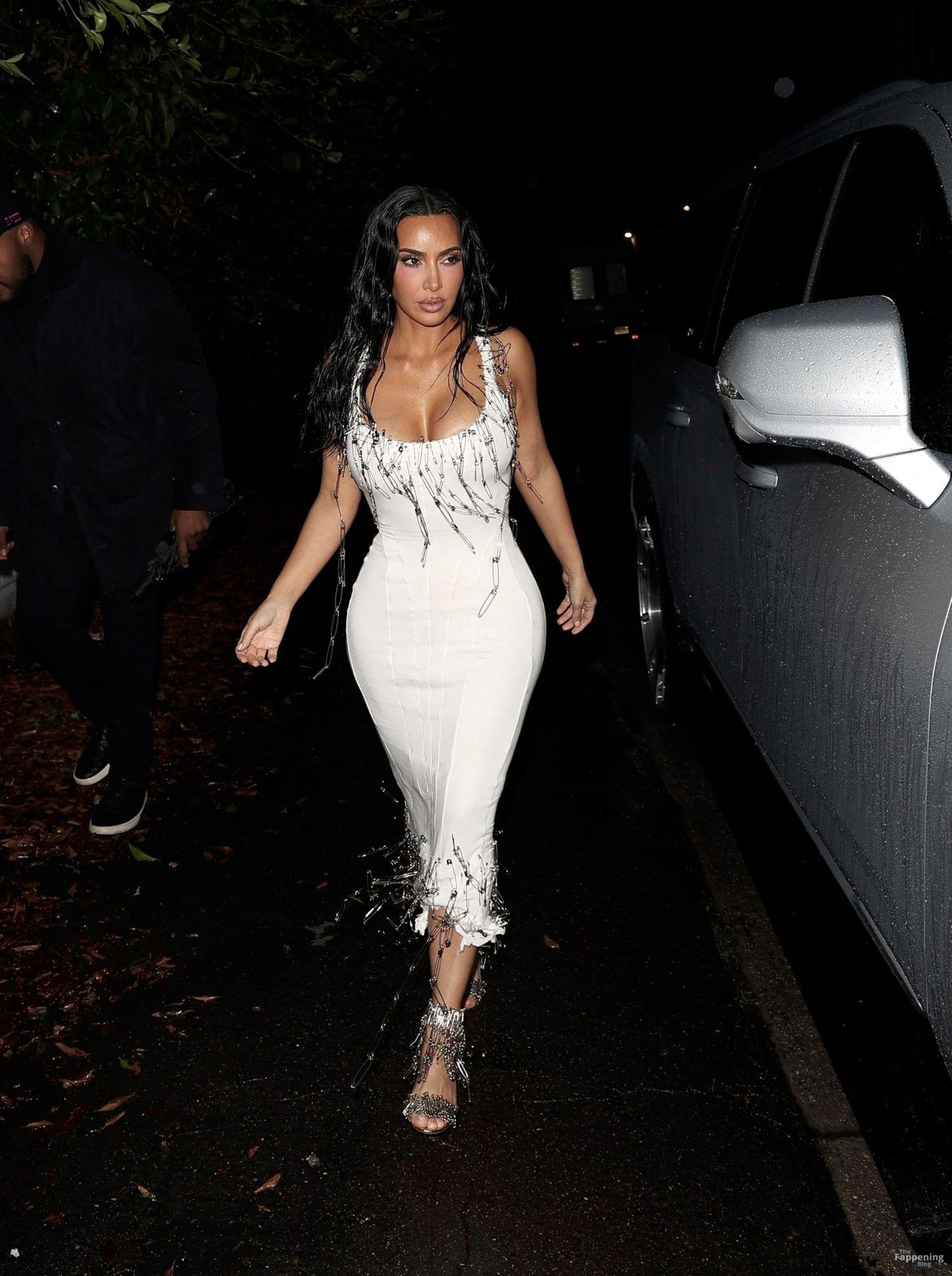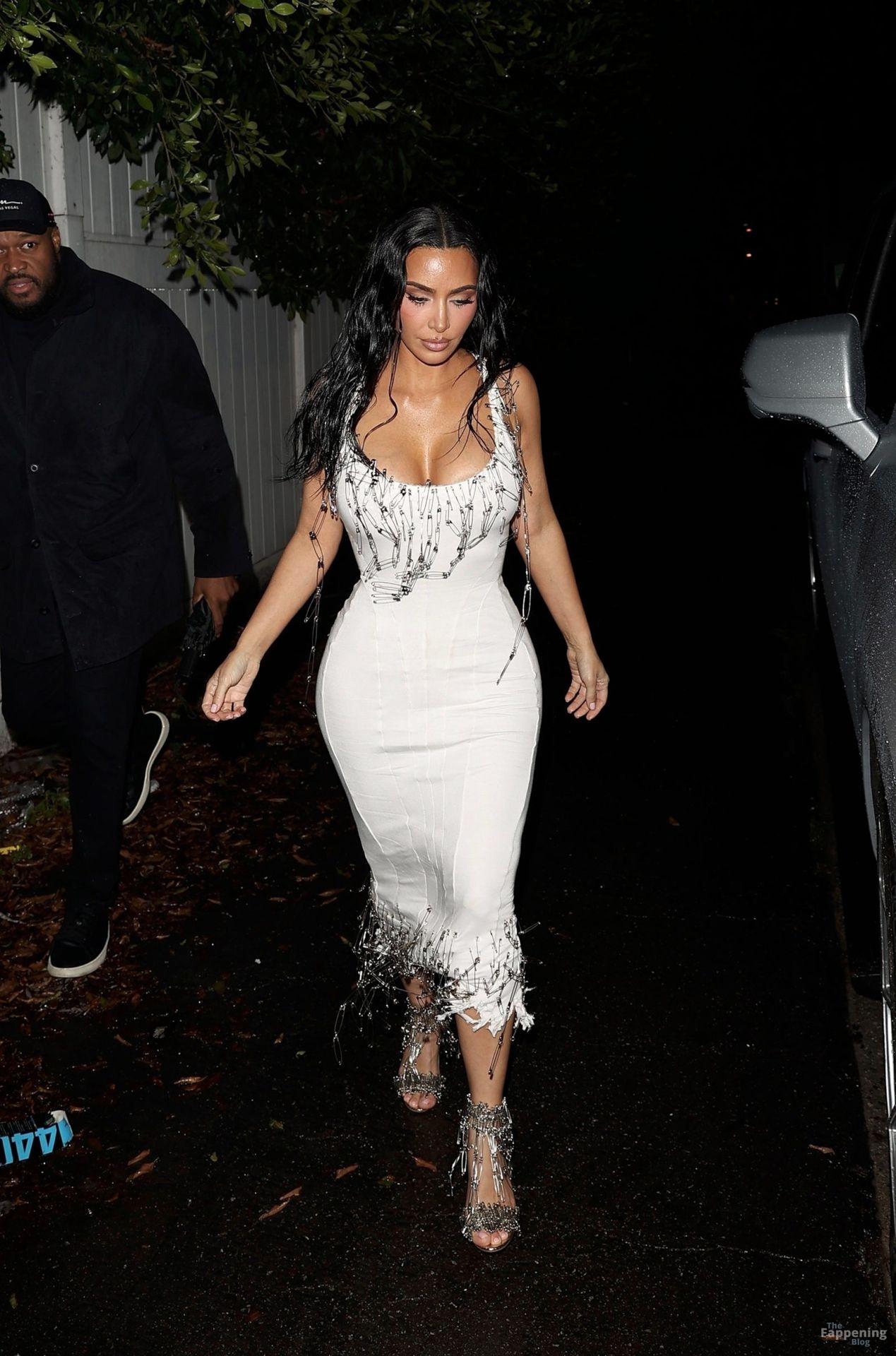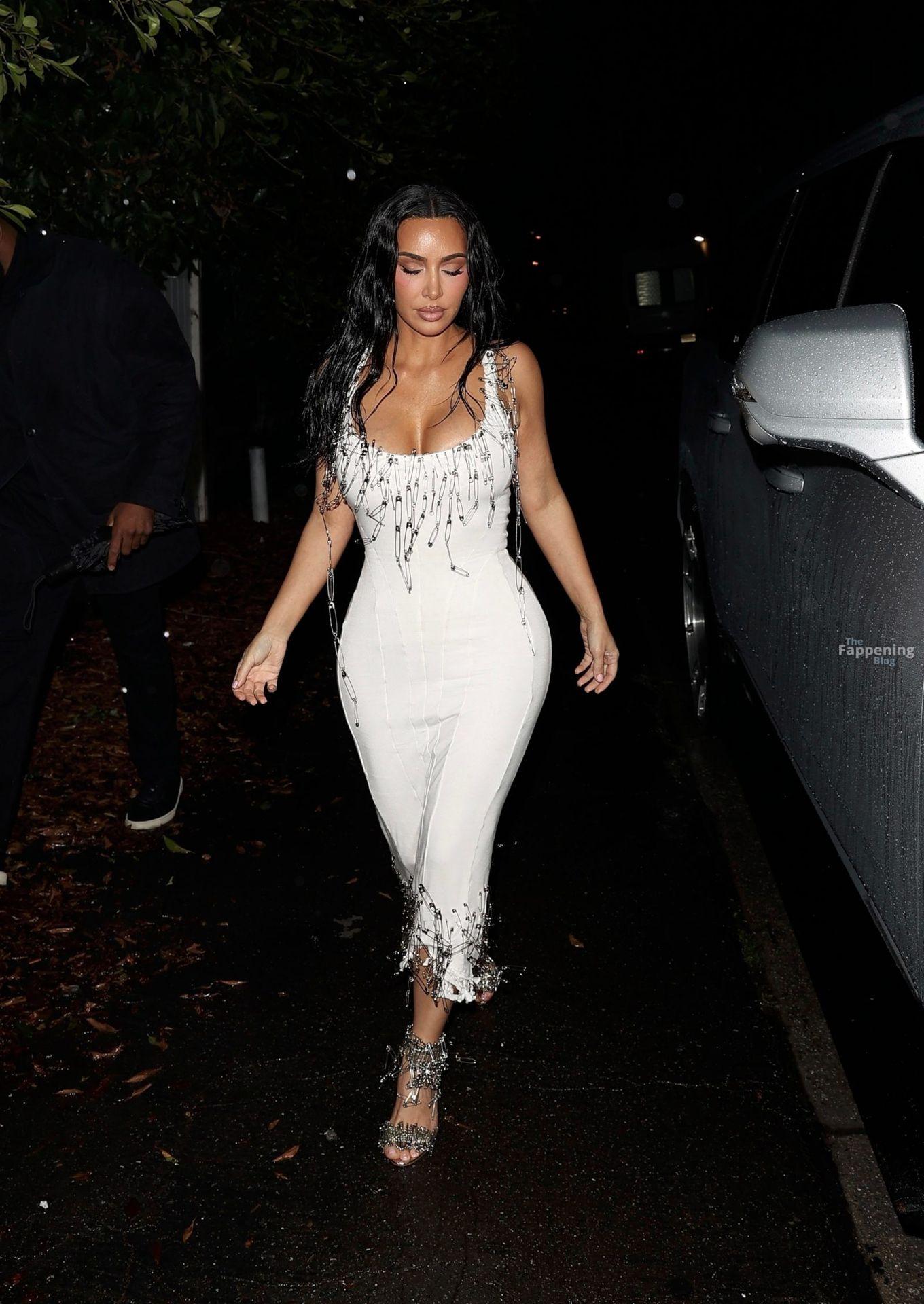 Reality TV star Kim Kardashian foi vista com um vestido branco na festa de Petra Collins em LA.