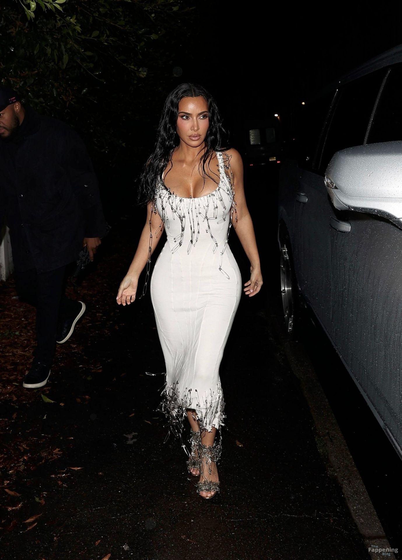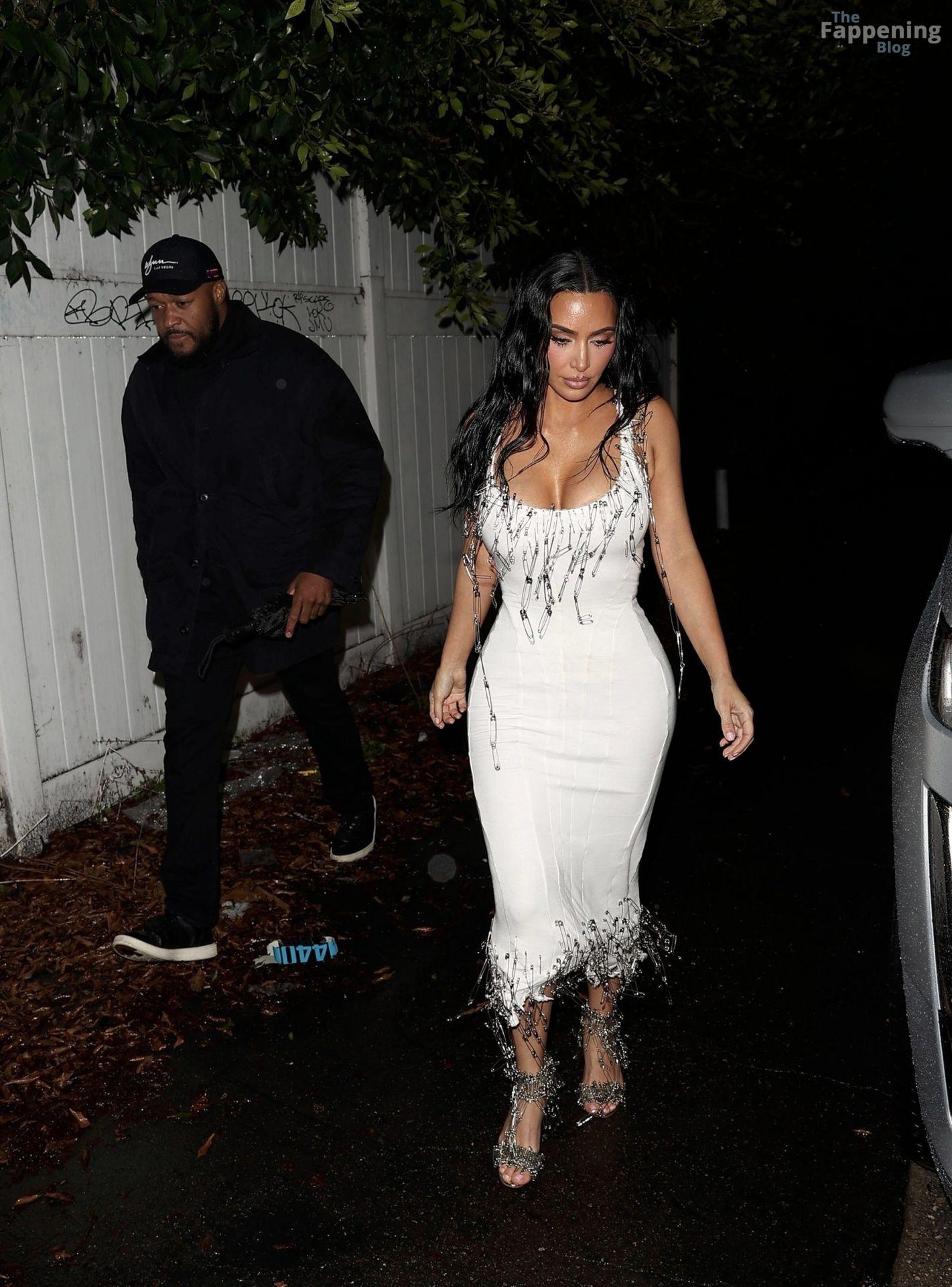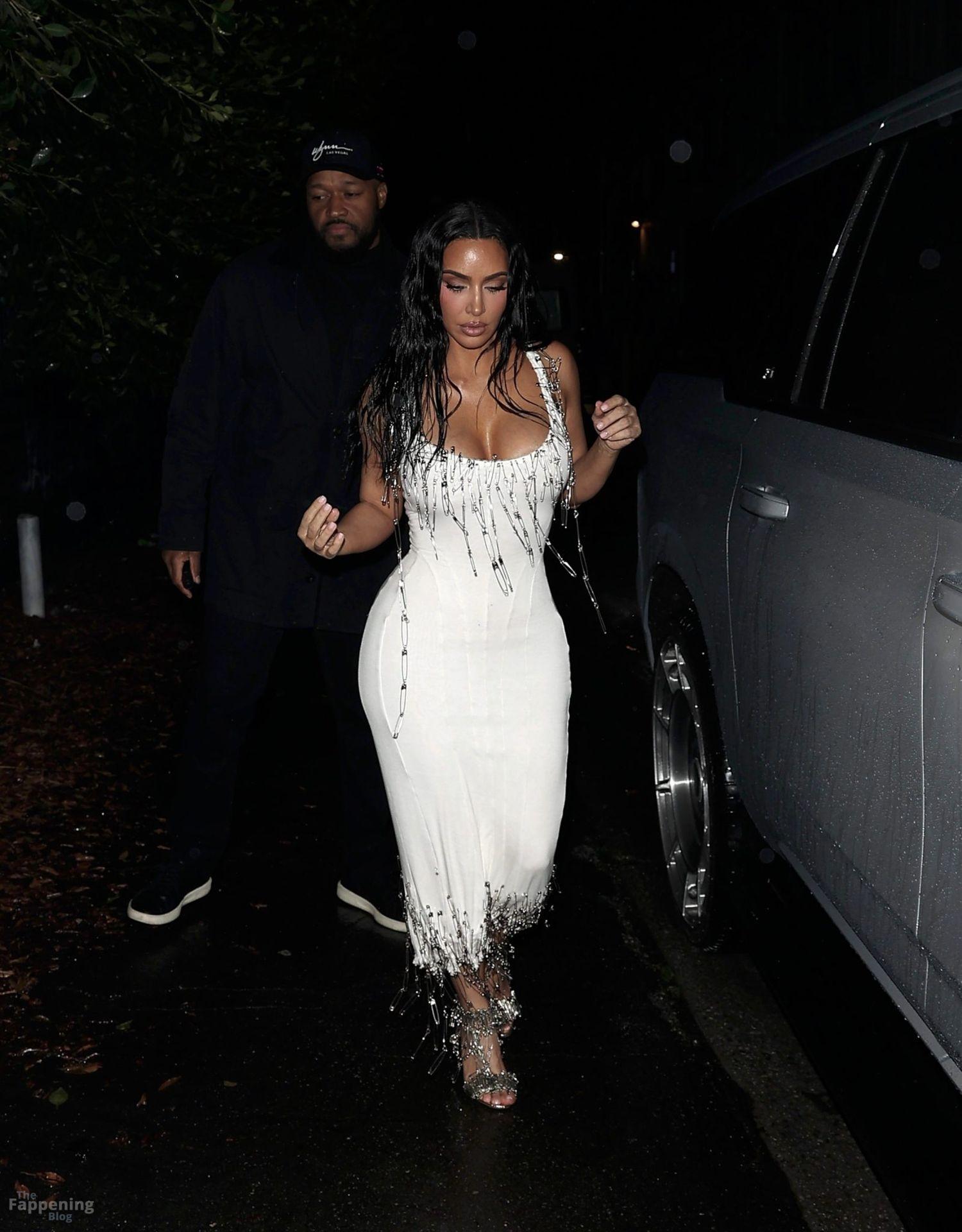 Reality TV star Kim Kardashian foi vista com um vestido branco na festa de Petra Collins em LA.