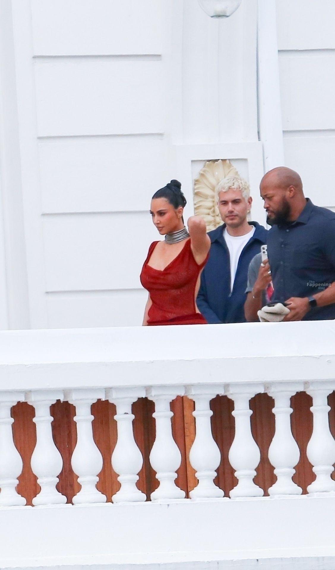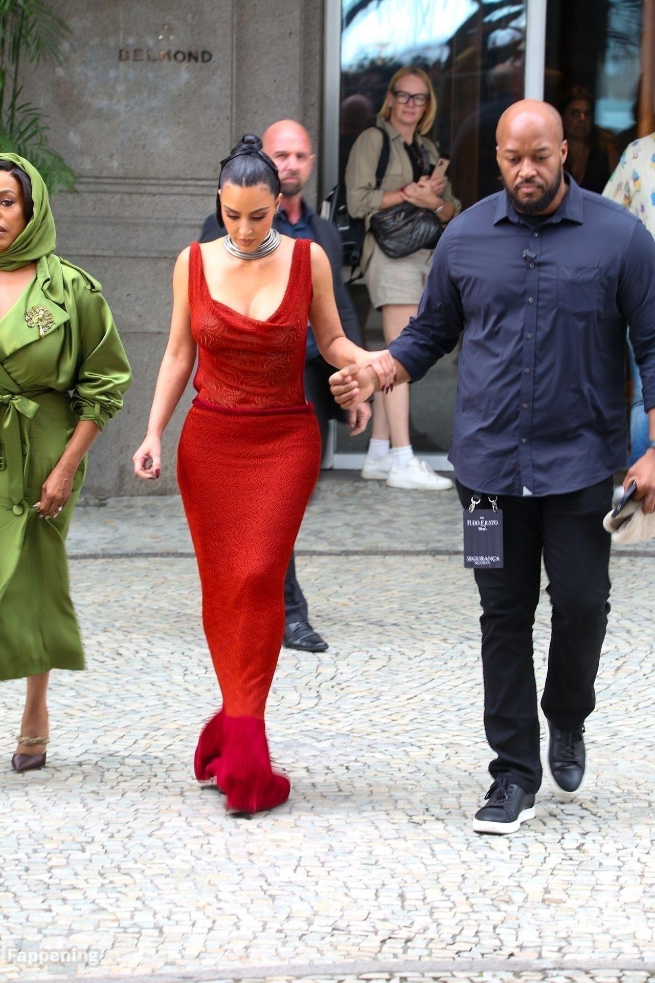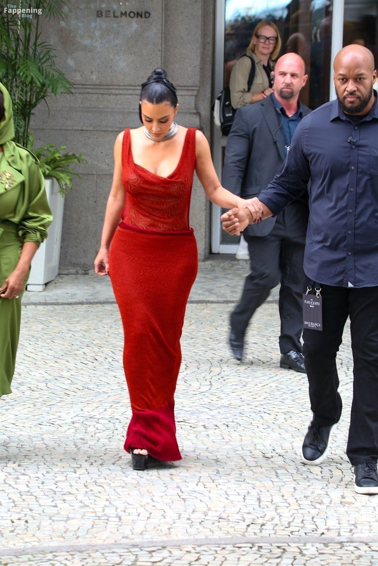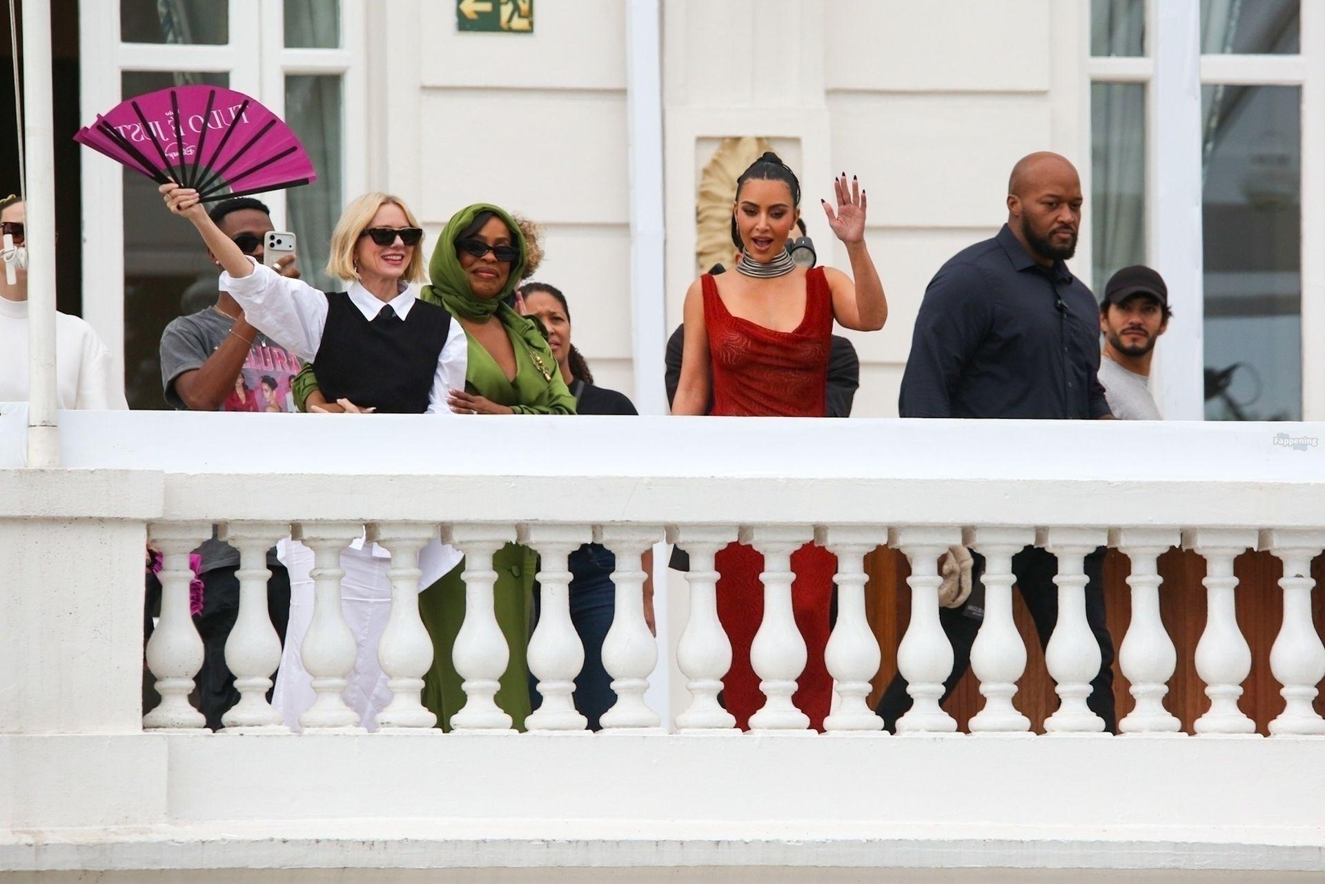 Kim Kardashian foi vista na varanda do Copacabana Palace, no Rio, com o elenco de All’s Fair, parecendo sexy em um vestido vermelho super longo e quente. Depois, ela enfrentou um passeio selvagem com seus saltos nas ruas de paralelepípedo abaixo – até sua segurança parecia precisar de ajuda. A estrela de reality show, geralmente sorridente para as câmeras, manteve a cabeça baixa, focando em cada passo. Entre o chão irregular e aquele vestido esvoaçante, Kim teve muito trabalho para se equilibrar no Rio com plataformas altíssimas.