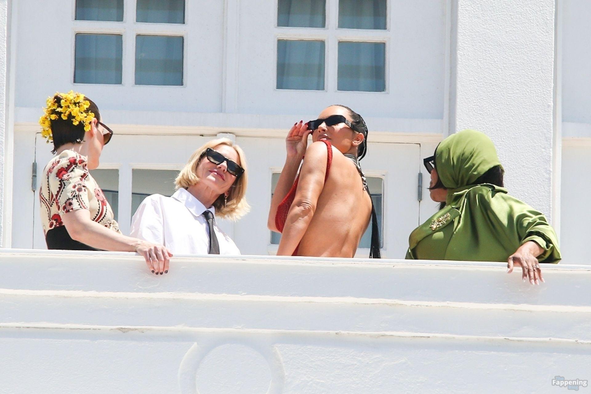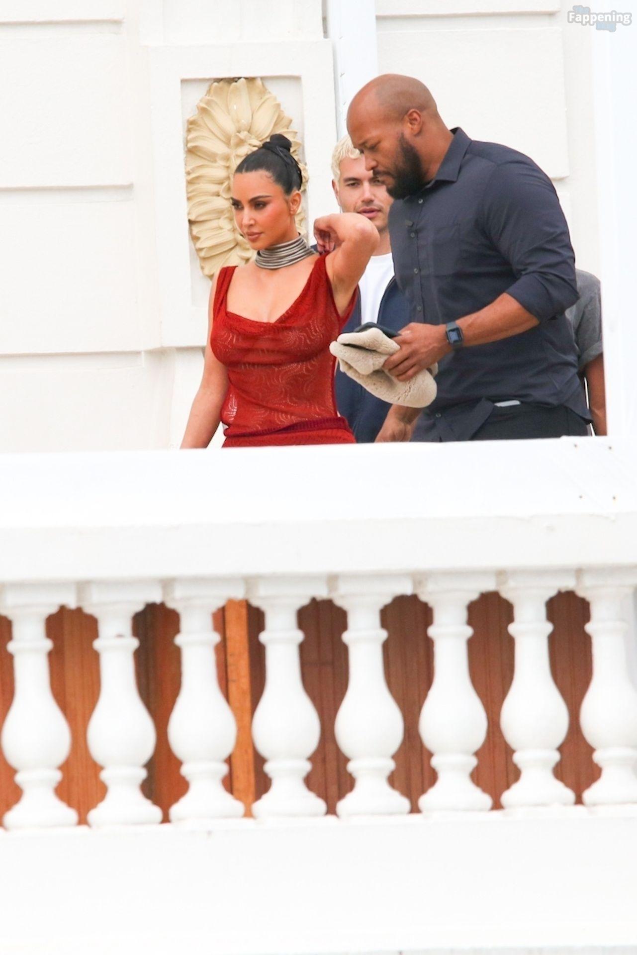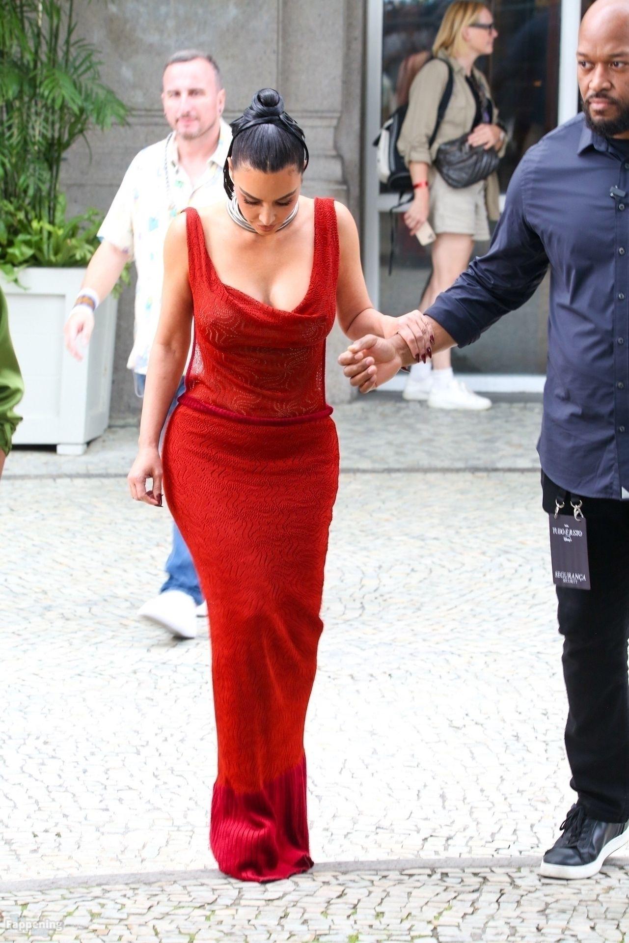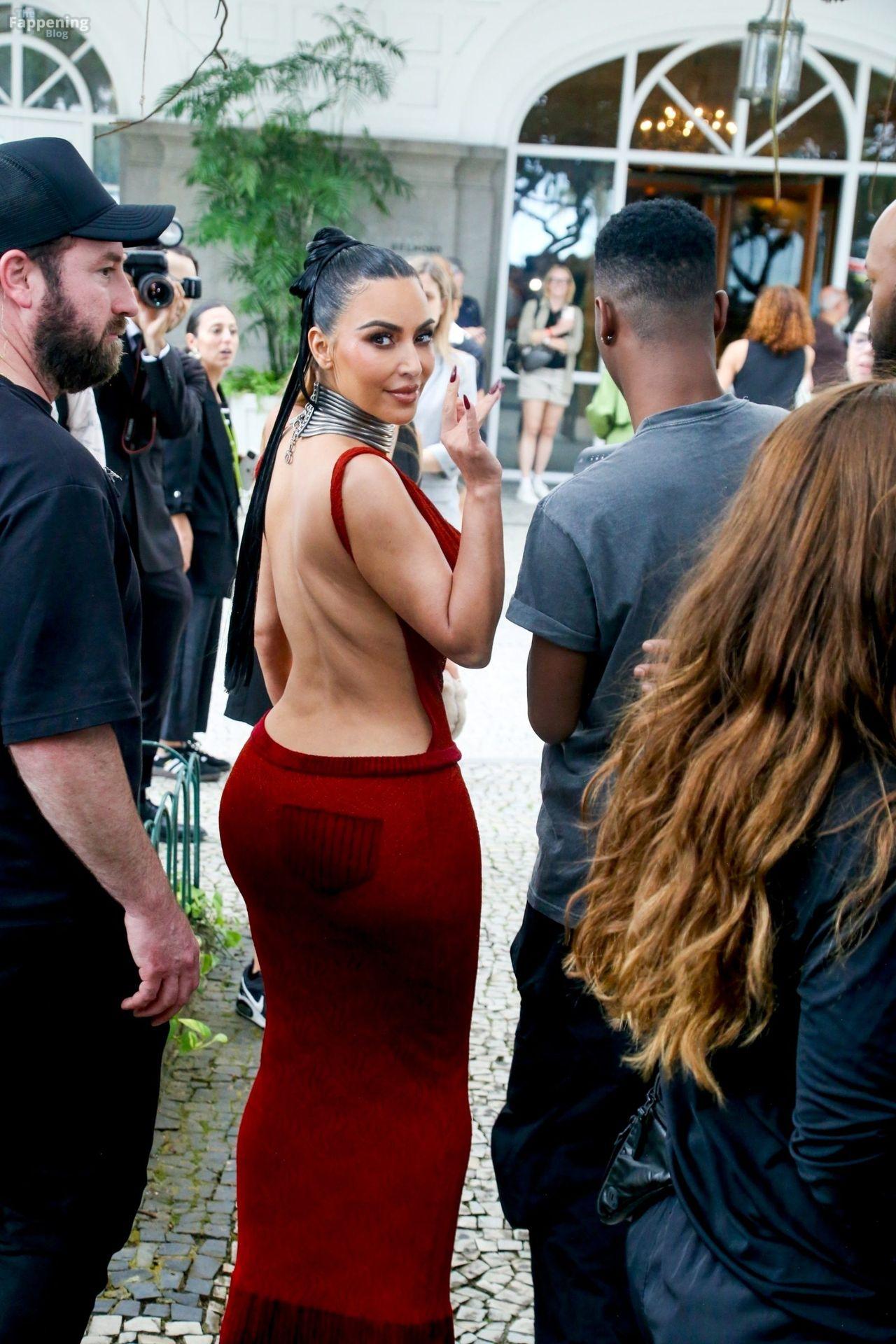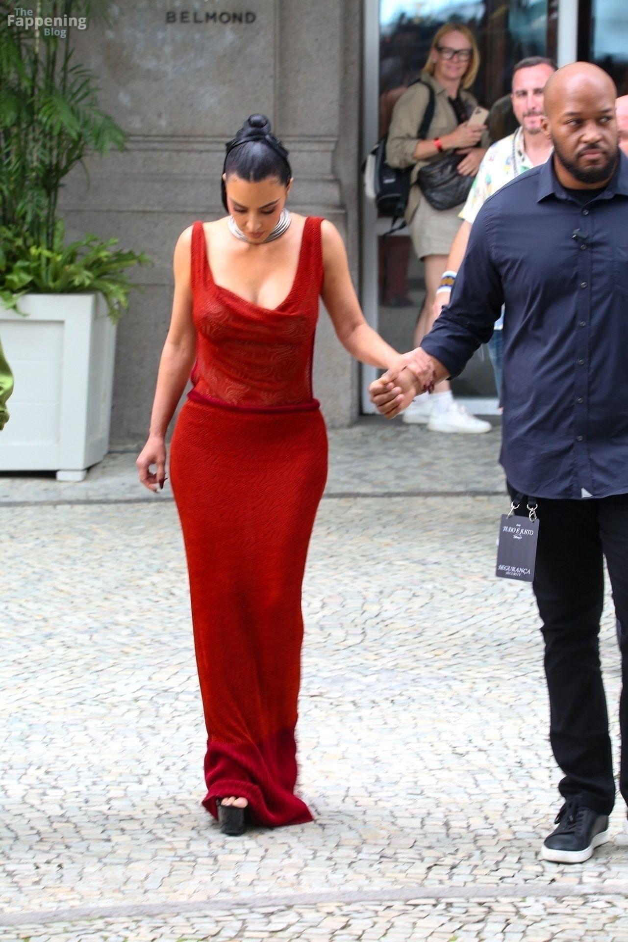 Kim Kardashian dispensa o sutiã em um vestido vermelho transparente no Rio, com os mamilos à mostra e o bumbum em destaque. Confira seu visual sexy!