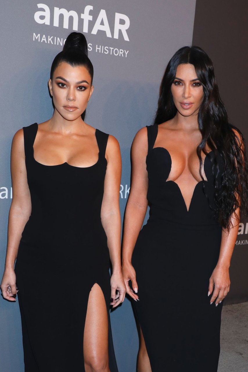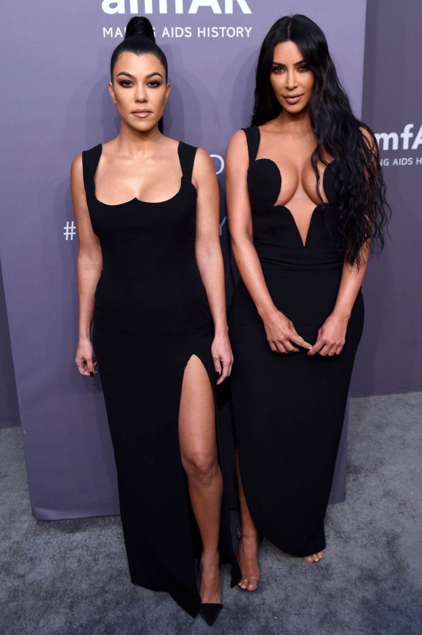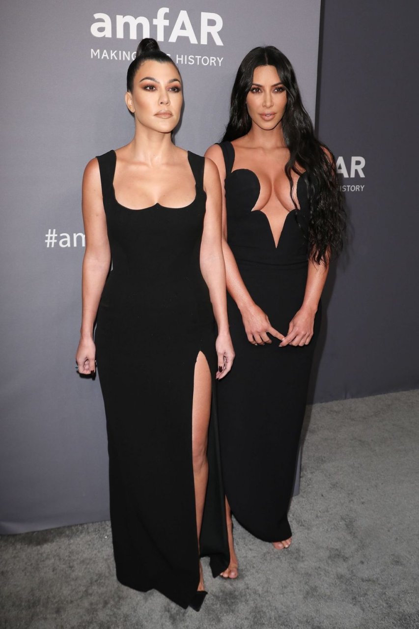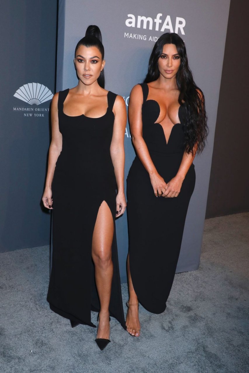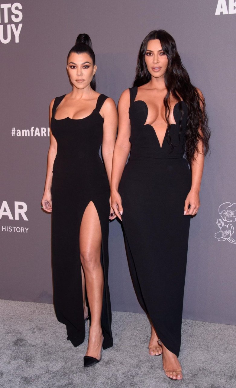 Kim Kardashian West e sua irmã mais velha Kourtney Kardashian compareceram juntas ao amFAR Gala Fall/Winter 2019 em Nova York, 02/06/2019. As irmãs usaram vestidos longos pretos, mas o estilo de Kim foi muito mais ousado.
