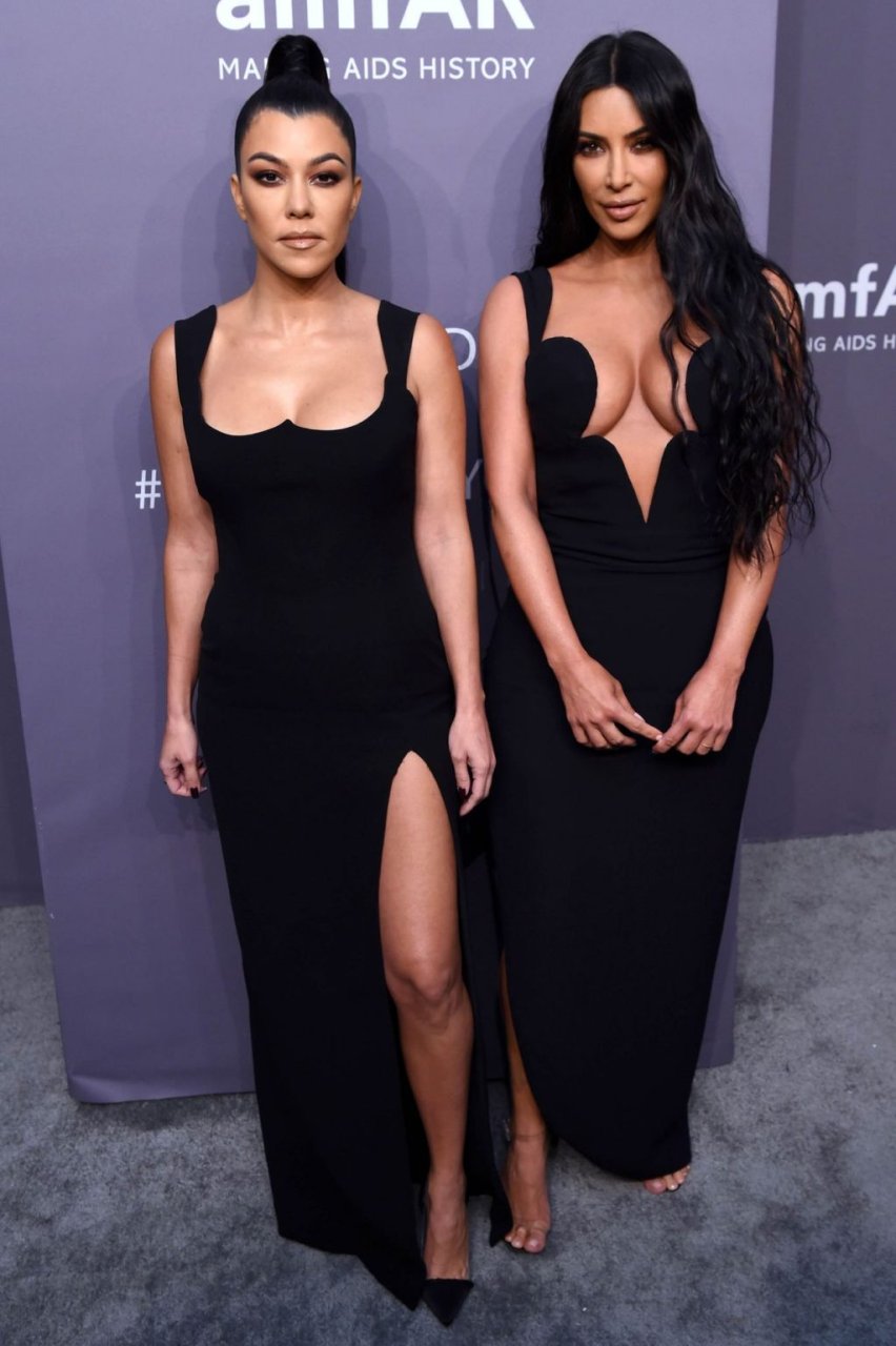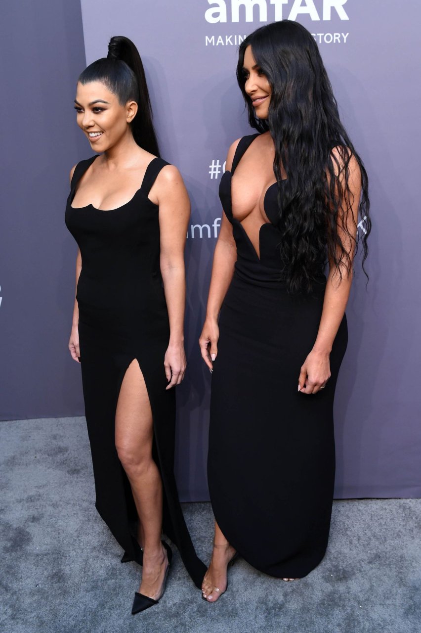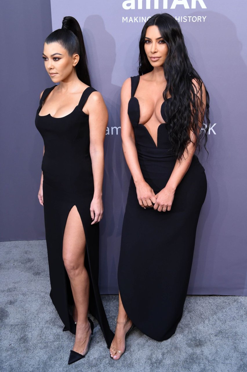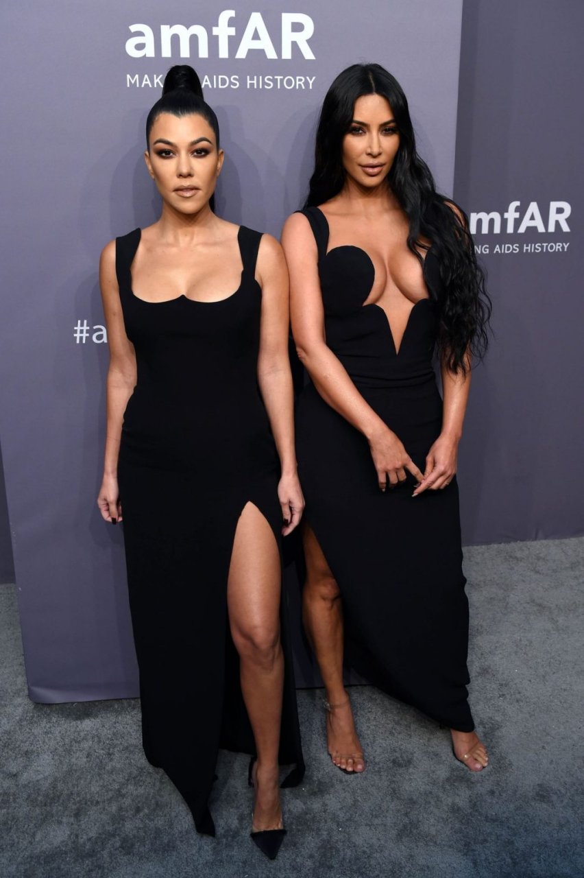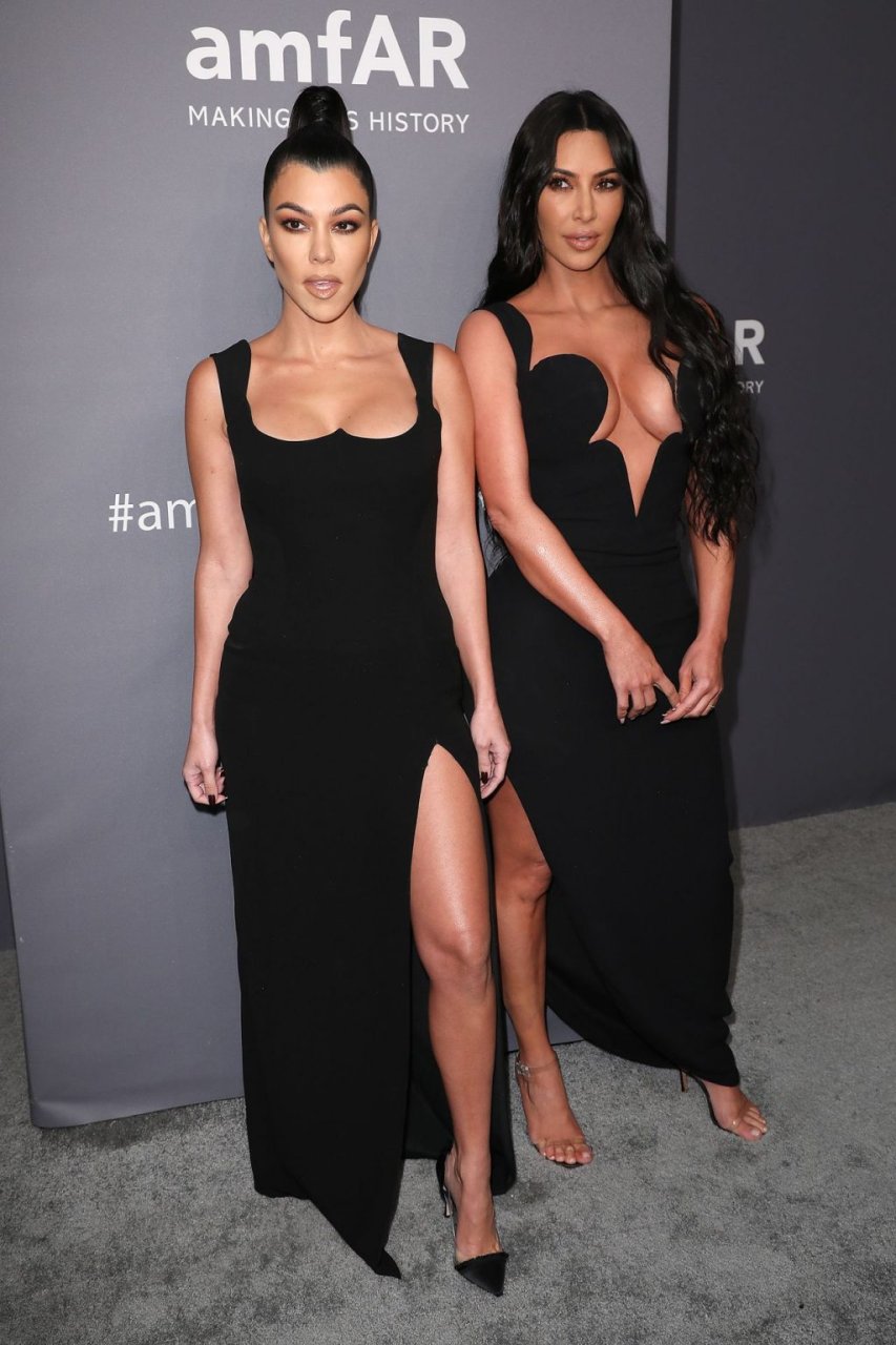 Kim Kardashian West e sua irmã mais velha Kourtney Kardashian compareceram juntas ao amFAR Gala Fall/Winter 2019 em Nova York, 02/06/2019. As irmãs usaram vestidos longos pretos, mas o estilo de Kim foi muito mais ousado.