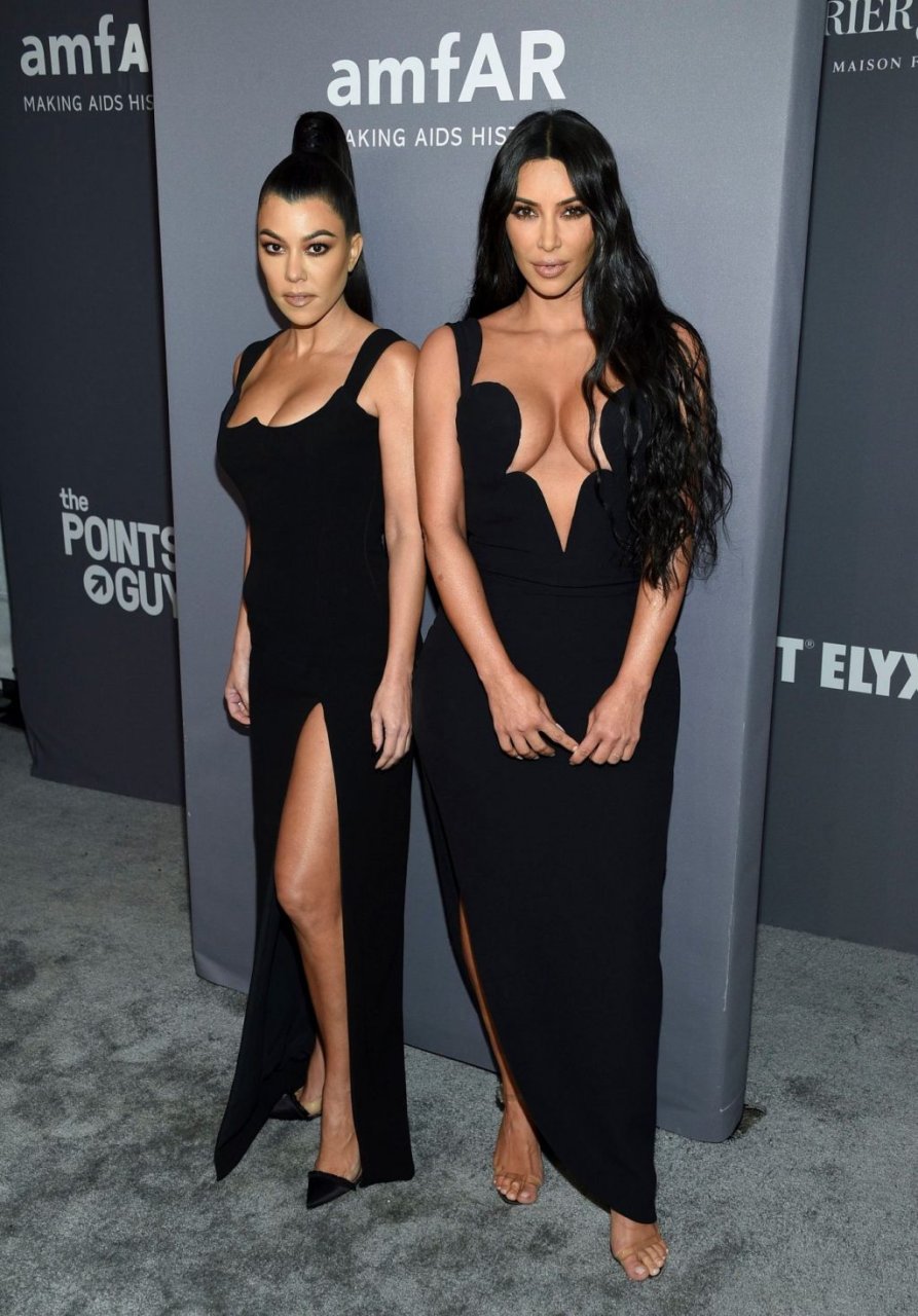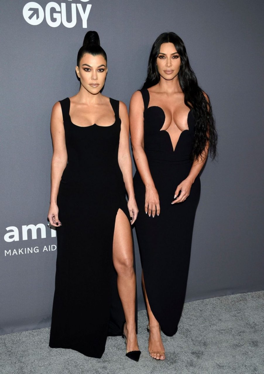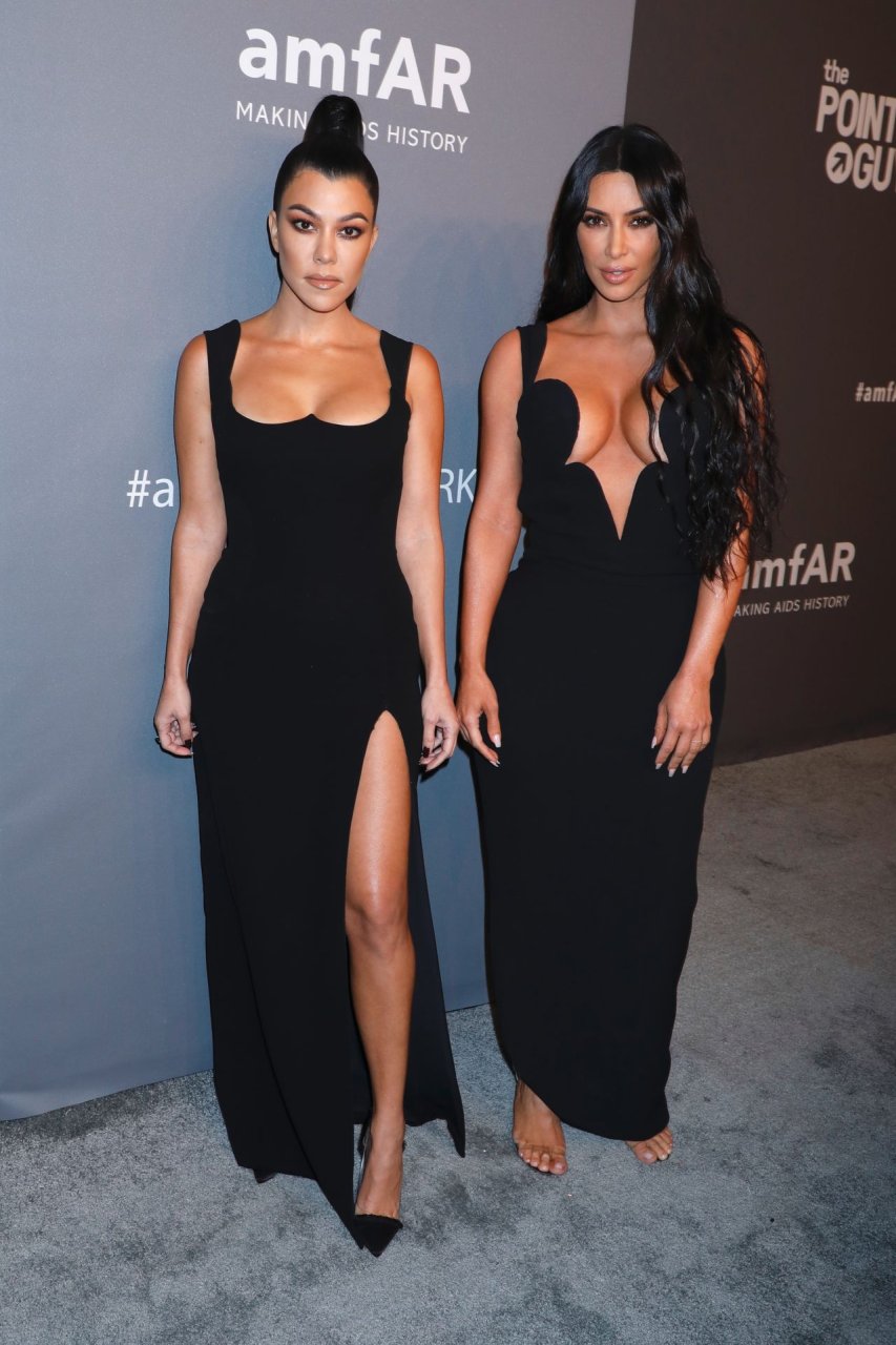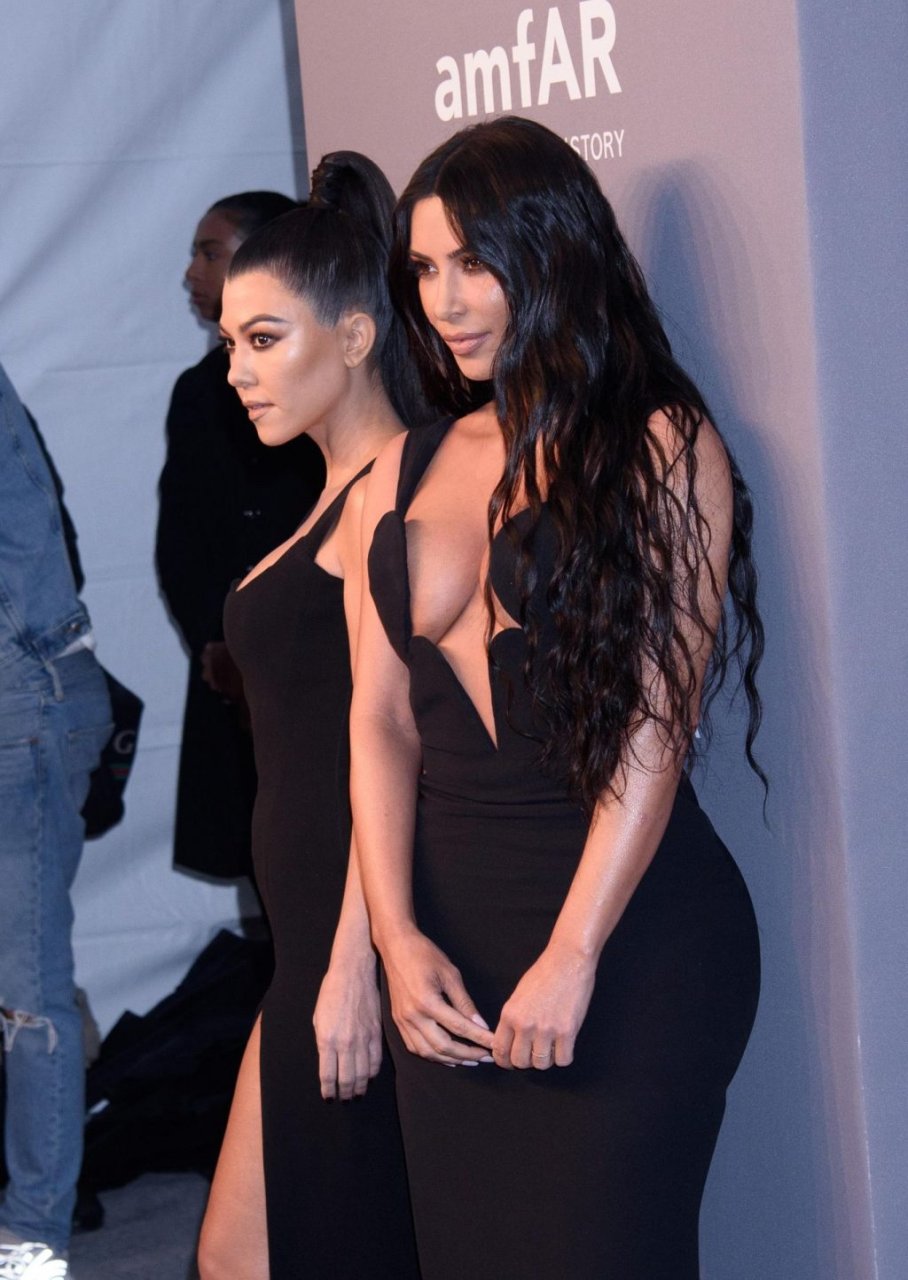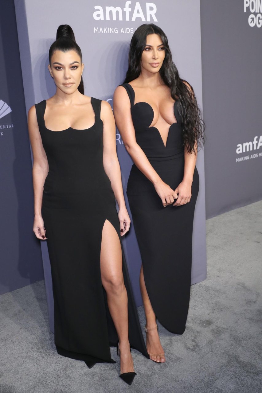 Kim Kardashian West e sua irmã mais velha Kourtney Kardashian compareceram juntas ao amFAR Gala Fall/Winter 2019 em Nova York, 02/06/2019. As irmãs usaram vestidos longos pretos, mas o estilo de Kim foi muito mais ousado.